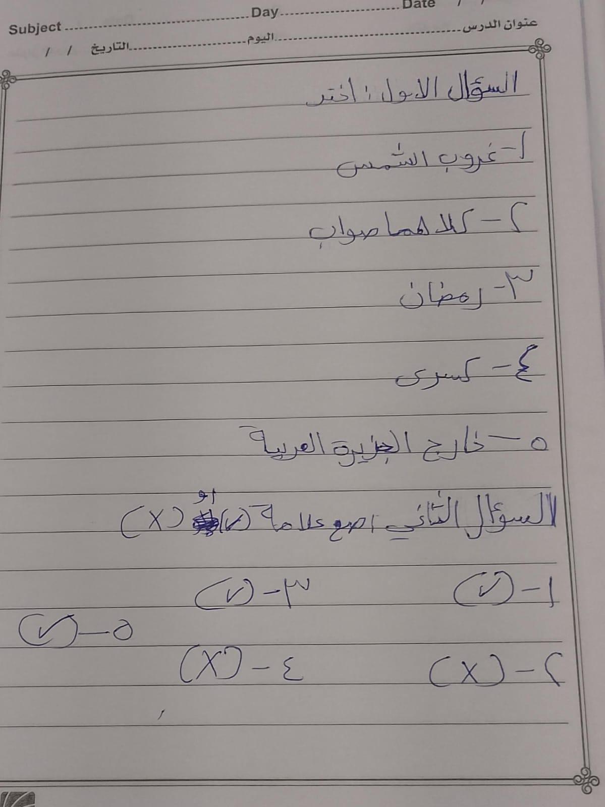 اختبار شمس الدين 🍉 🌸