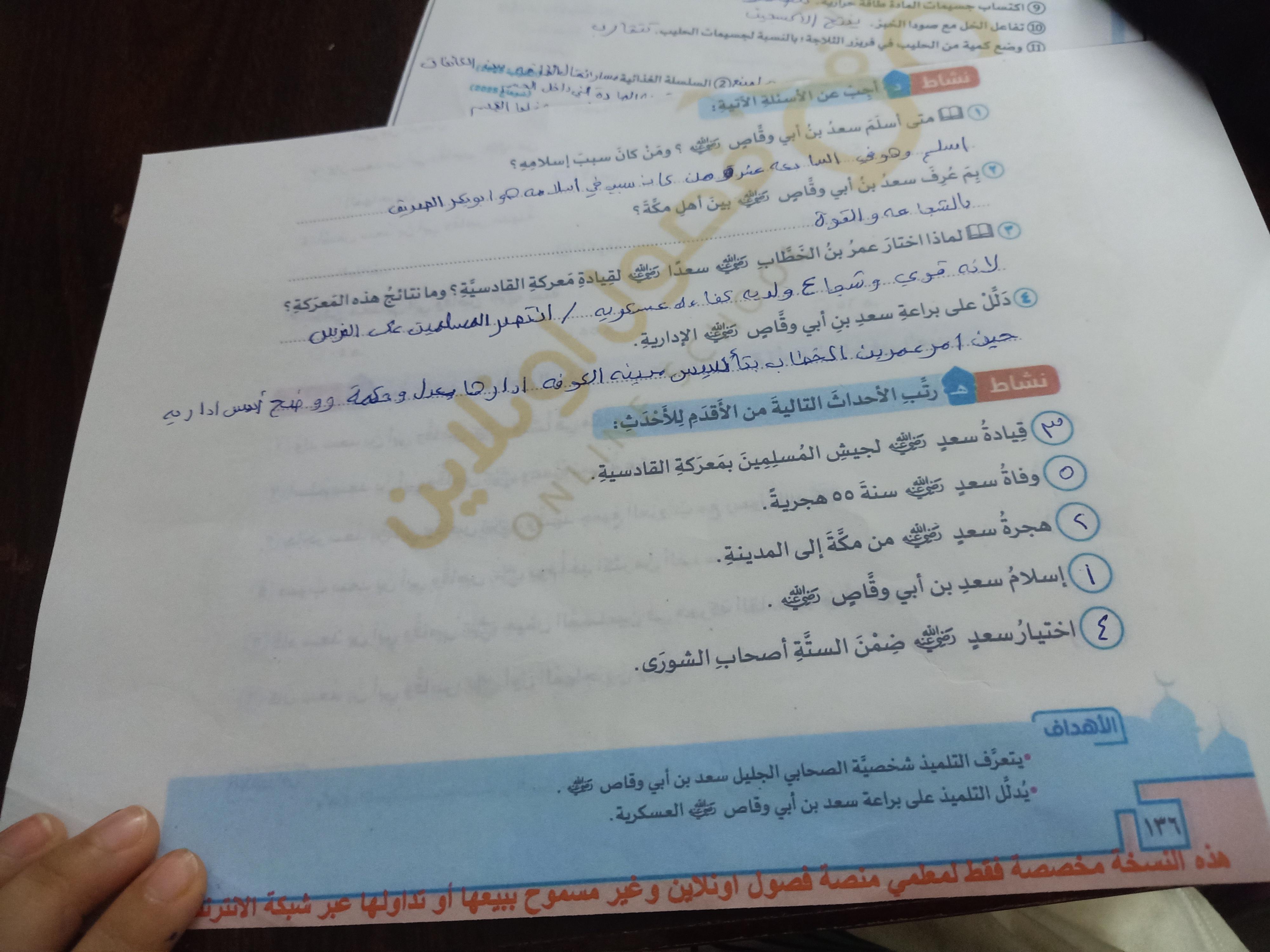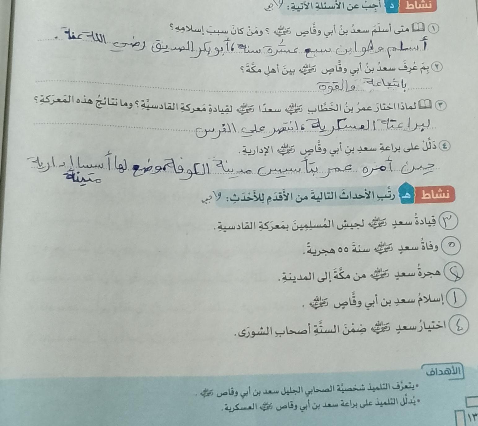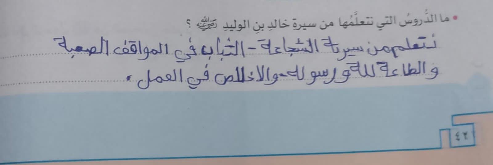 تم اليوم غزوة مؤته وخالد بن الوليد واجب ص 42 نشاط ج