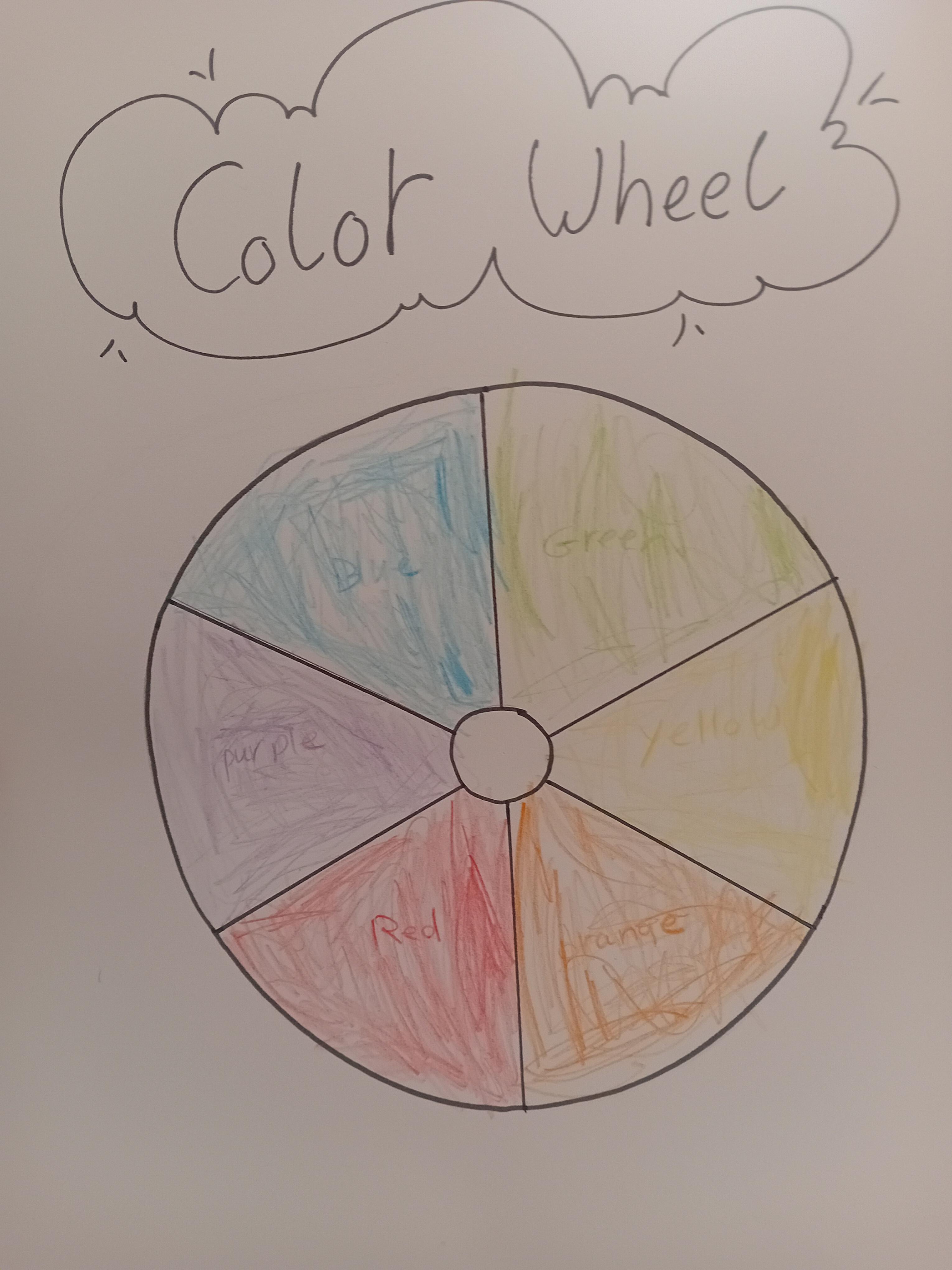 النهاردة لعبنا واتعرفنا على ألواننا المفضلة، عرفنا دائرة الألوان، ورسمنا دودة باستخدام الدوائر مع تلوينها