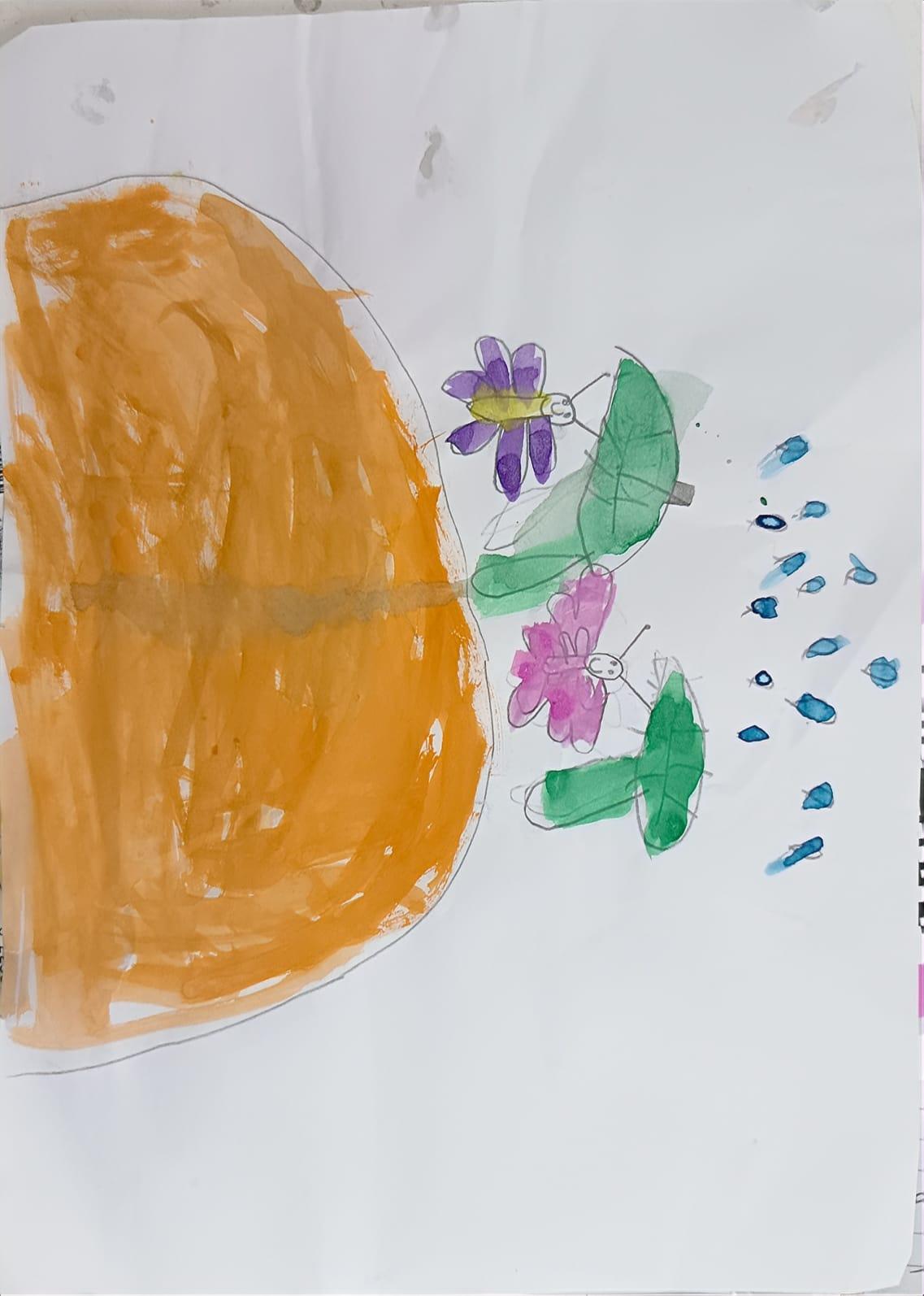 الواجب: رسم الفراشة زيزي وهي تلعب مع أصدقائها الفراشات بعد انتهاء المطر