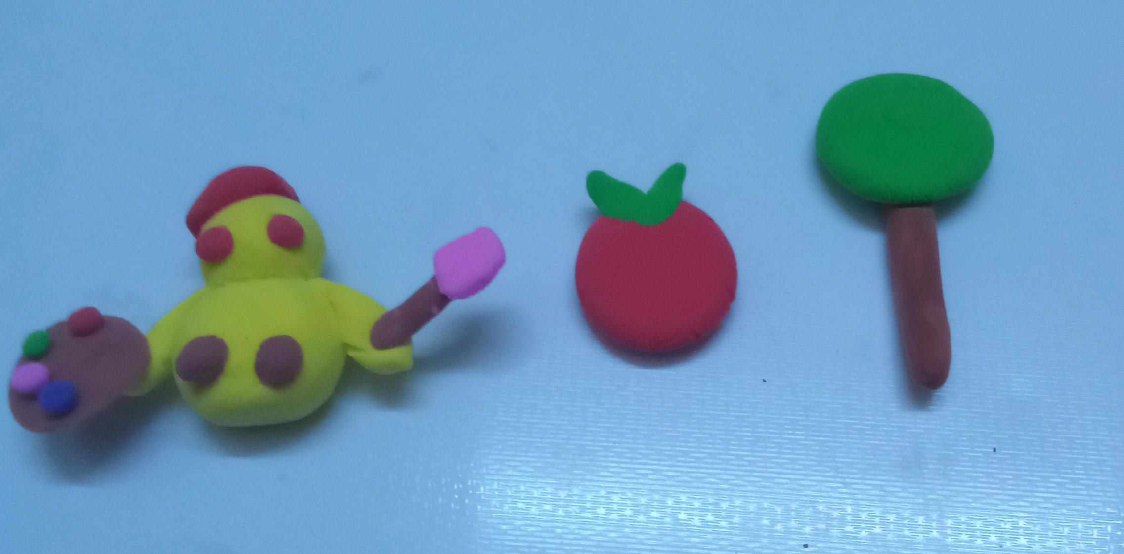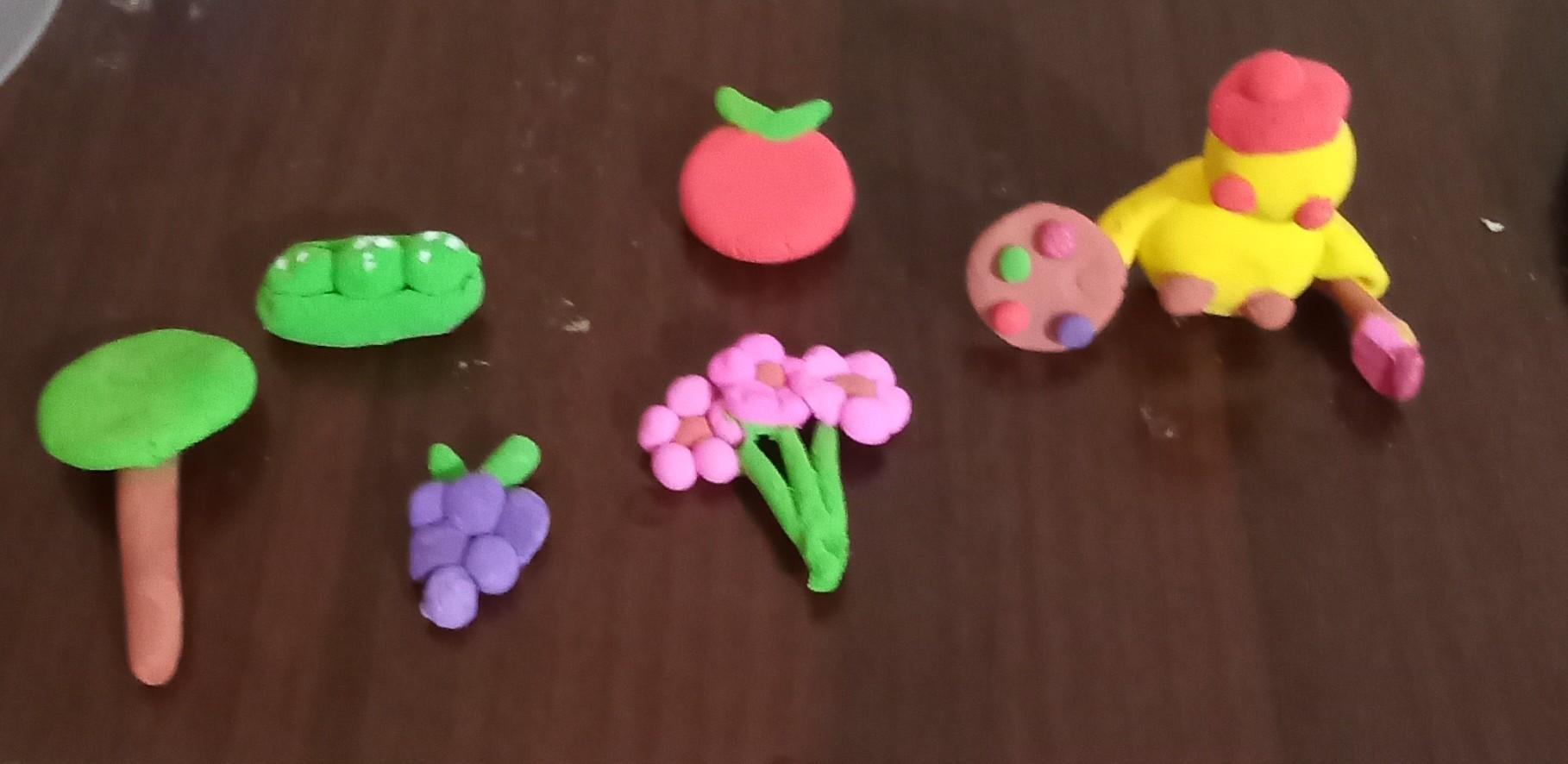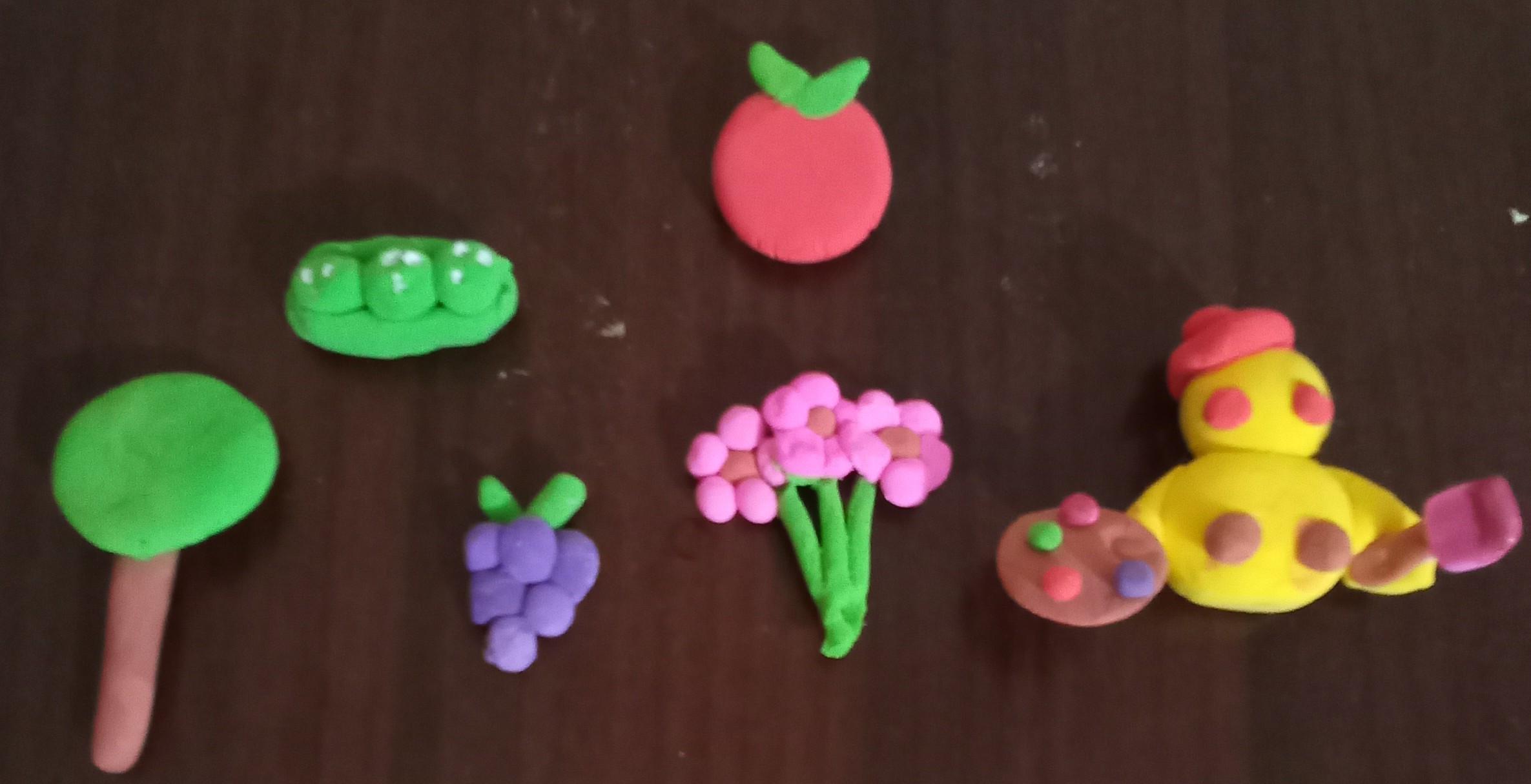 النهاردة اشتغلنا بالصلصال الفوم، عملنا أشكال الخضراوات وعائلة