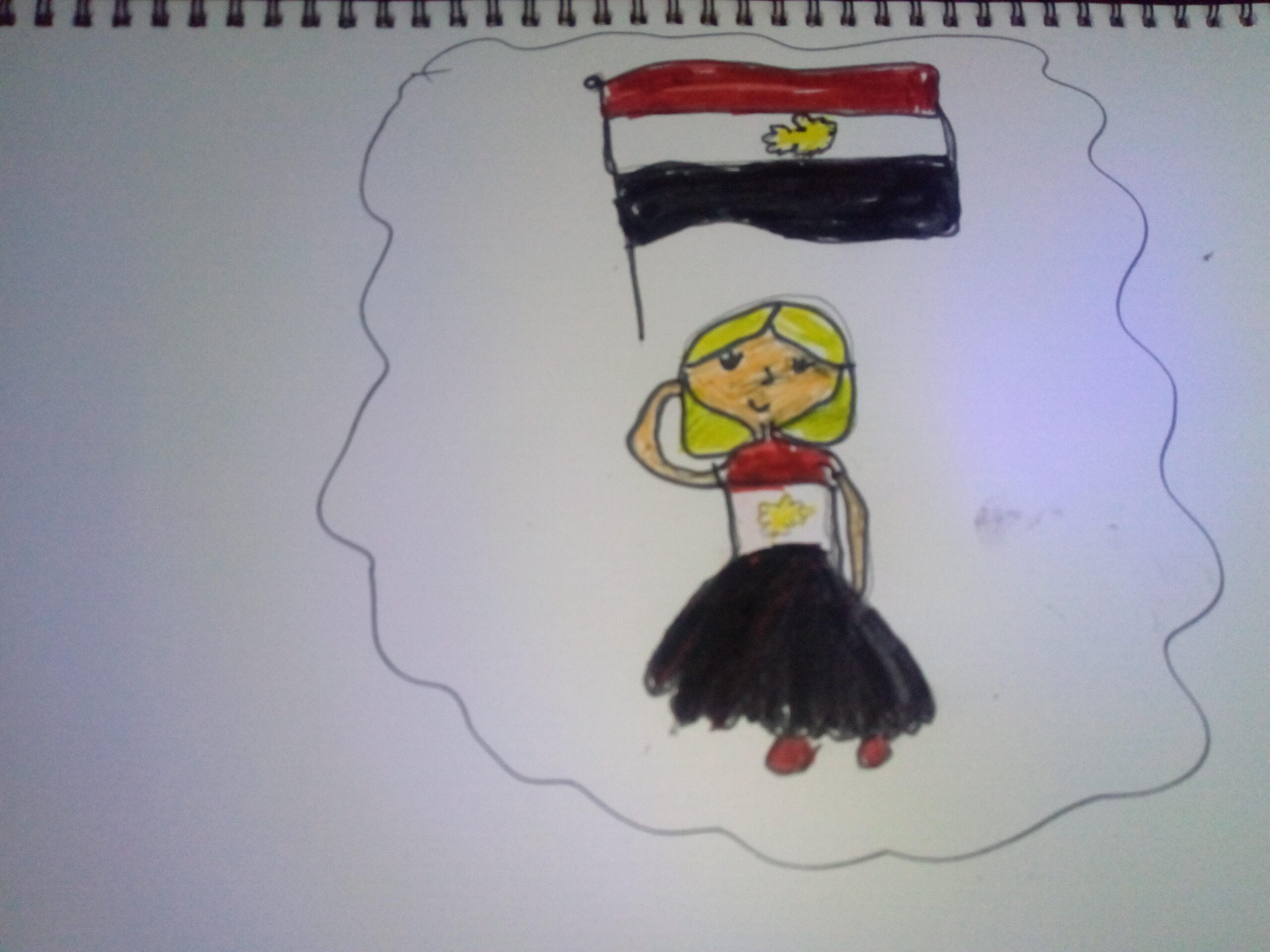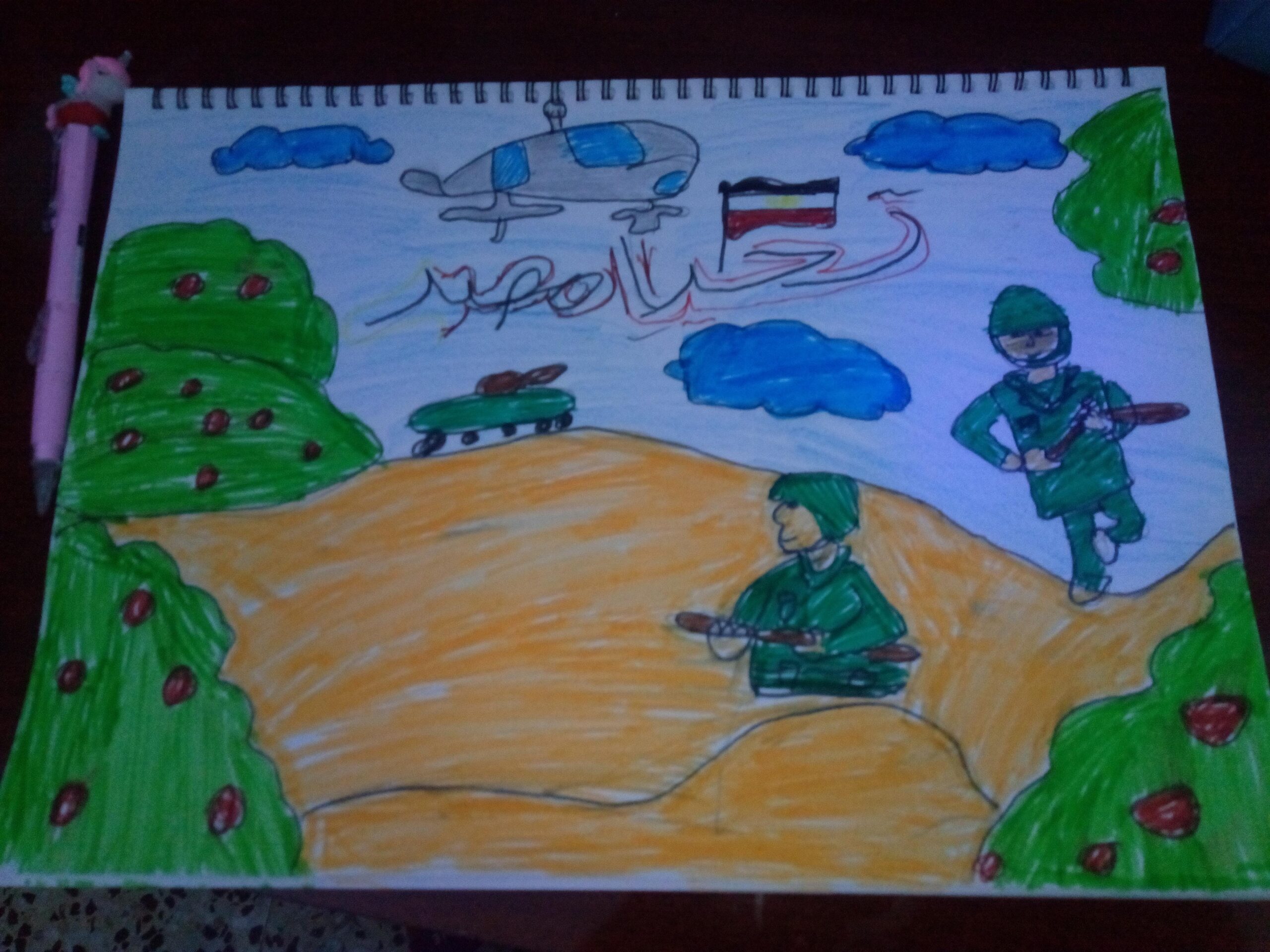 النهاردة رسمنا مشهد من حرب أكتوبر الواجب: رسم بنت تلبس علم مصر