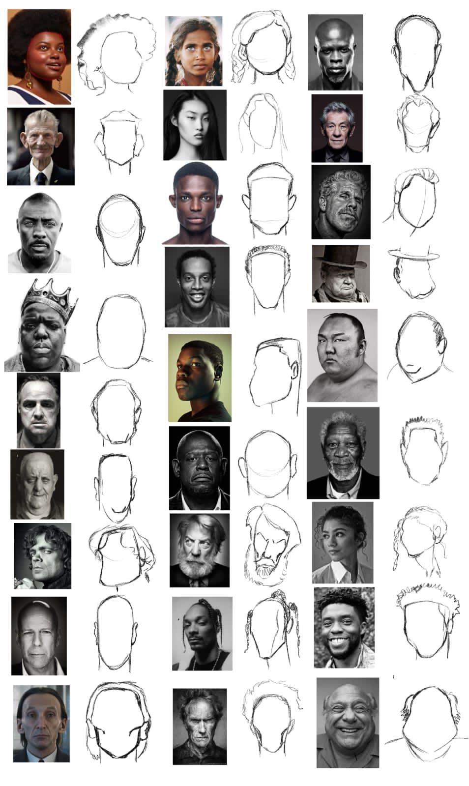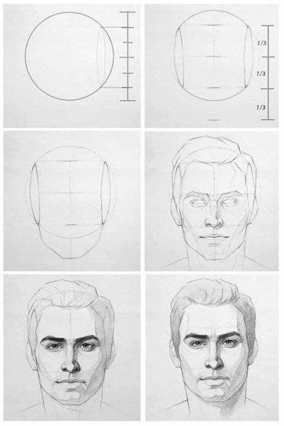 الواجب التدريب على طريقة لوميس لرسم الوجه من الأمام، 3 مرات على الأقل