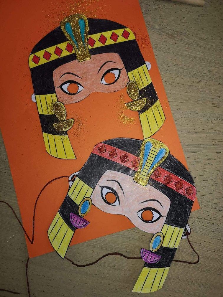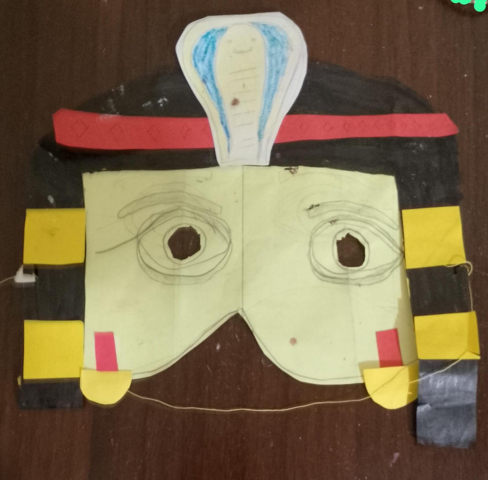 النهاردة عملنا ماسك مصري قديم باستخدام الأوراق الملونة الواجب: إكمال تفاصيل الشعر والتاج