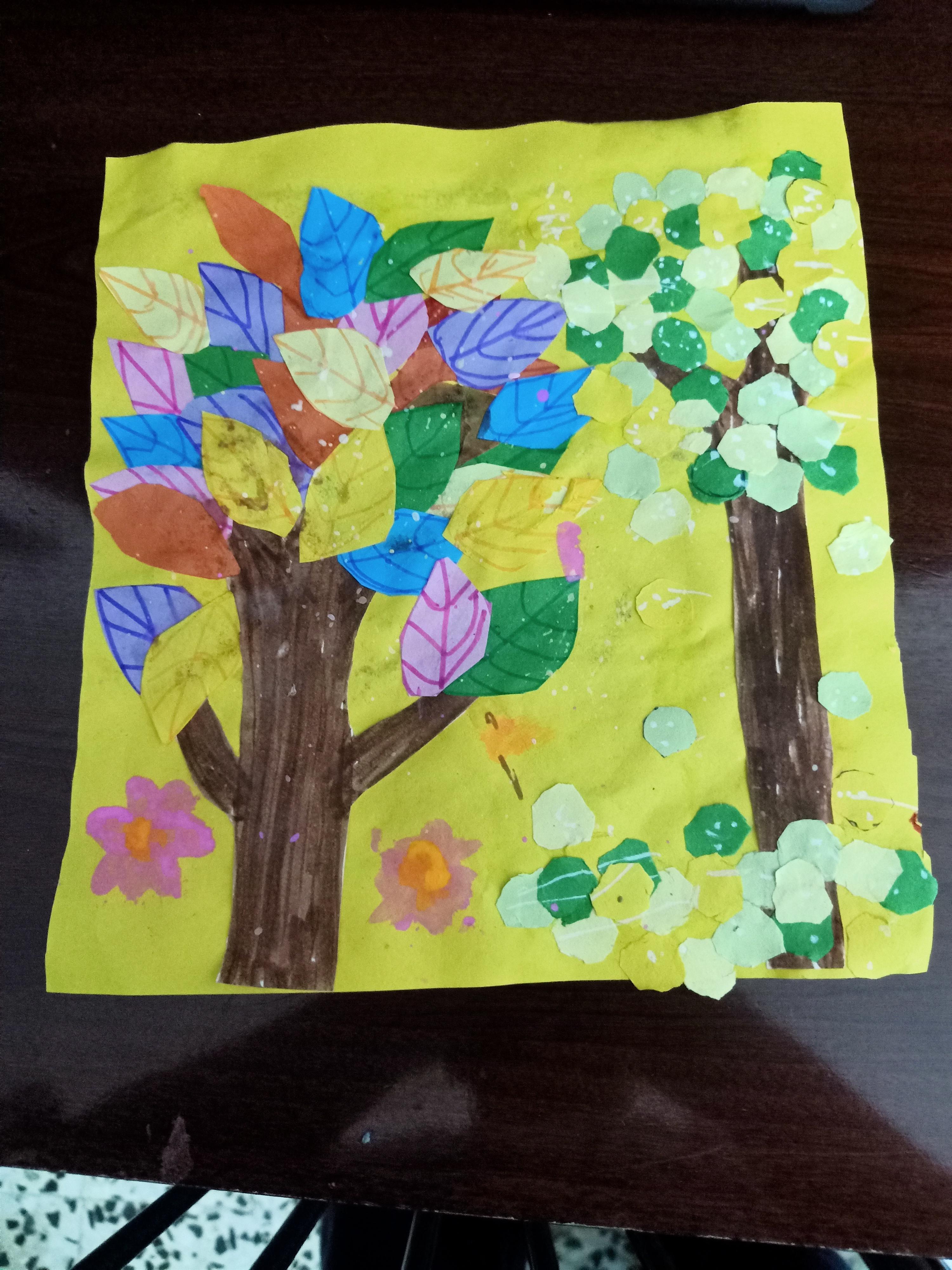 النهاردة اشتغلنا مشهد من الطبيعة كولاج بالأوراق الملونة