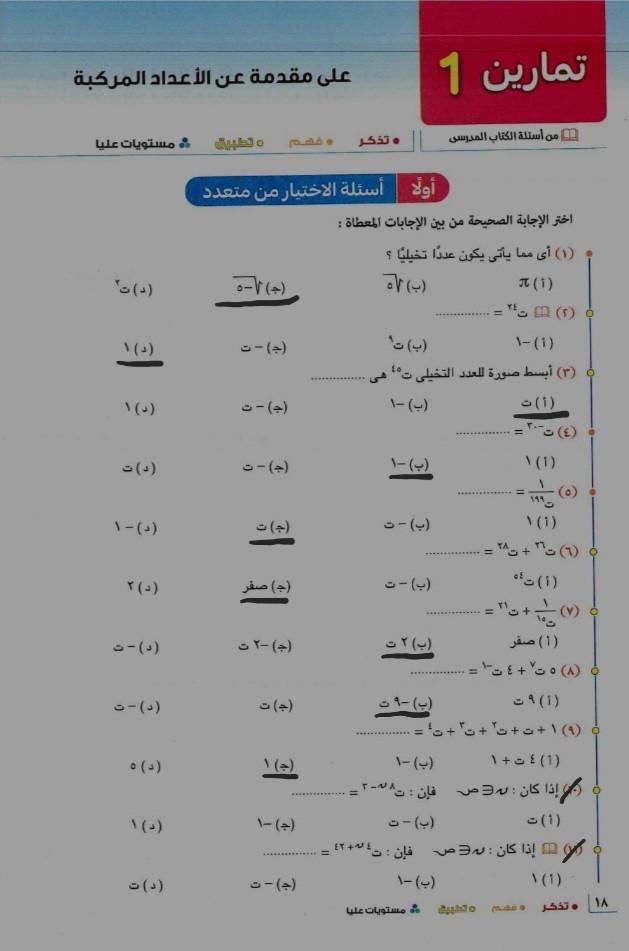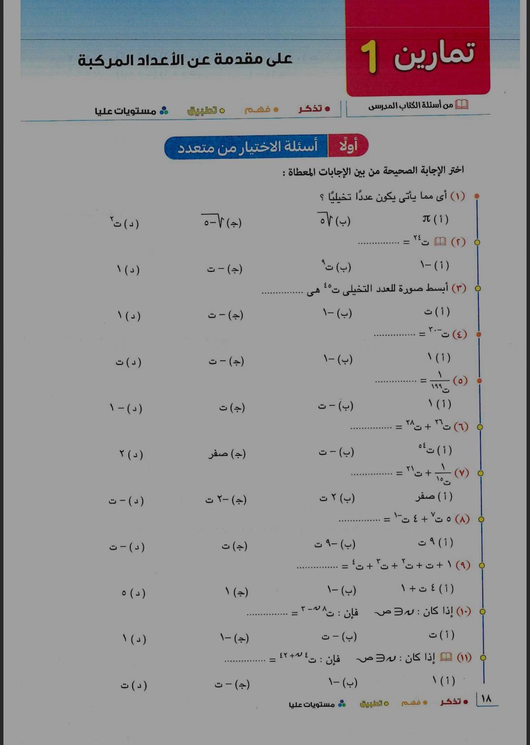 الواجب حل تمارين الصفحة الاولى اختر فى الكتاب