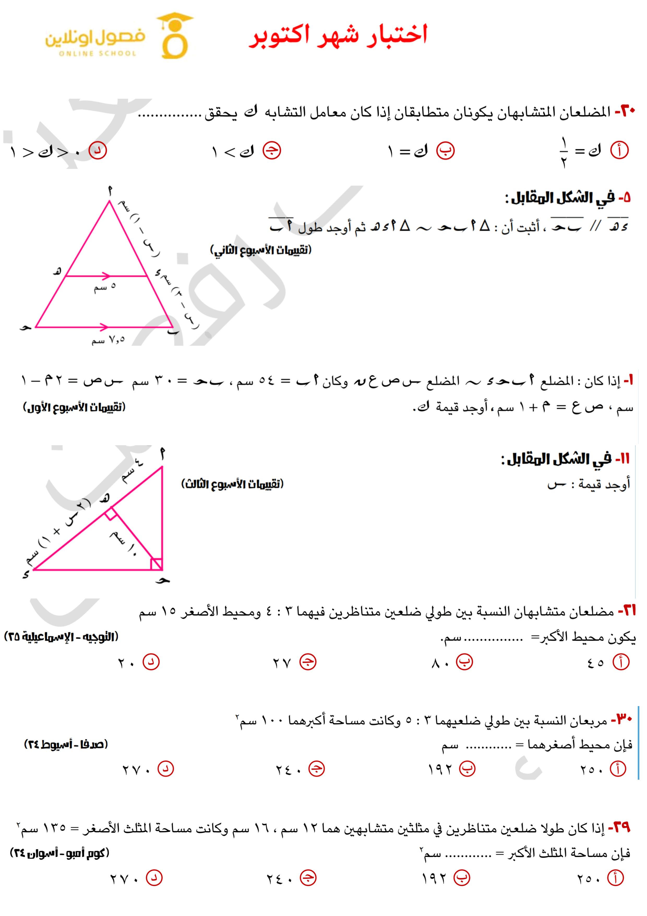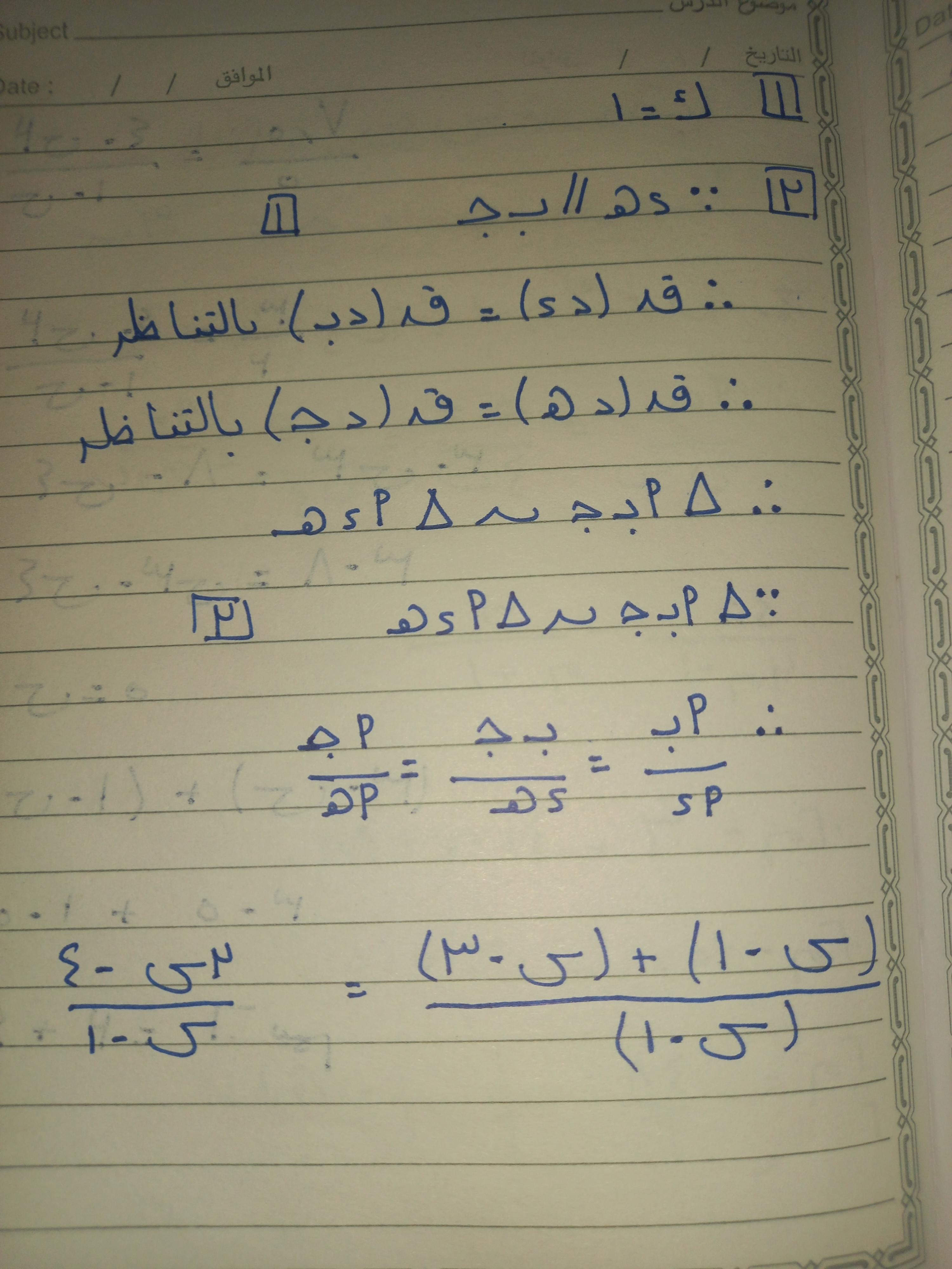 تم اليوم متابعة شرح تشابه المثلثات الحالة الاولى