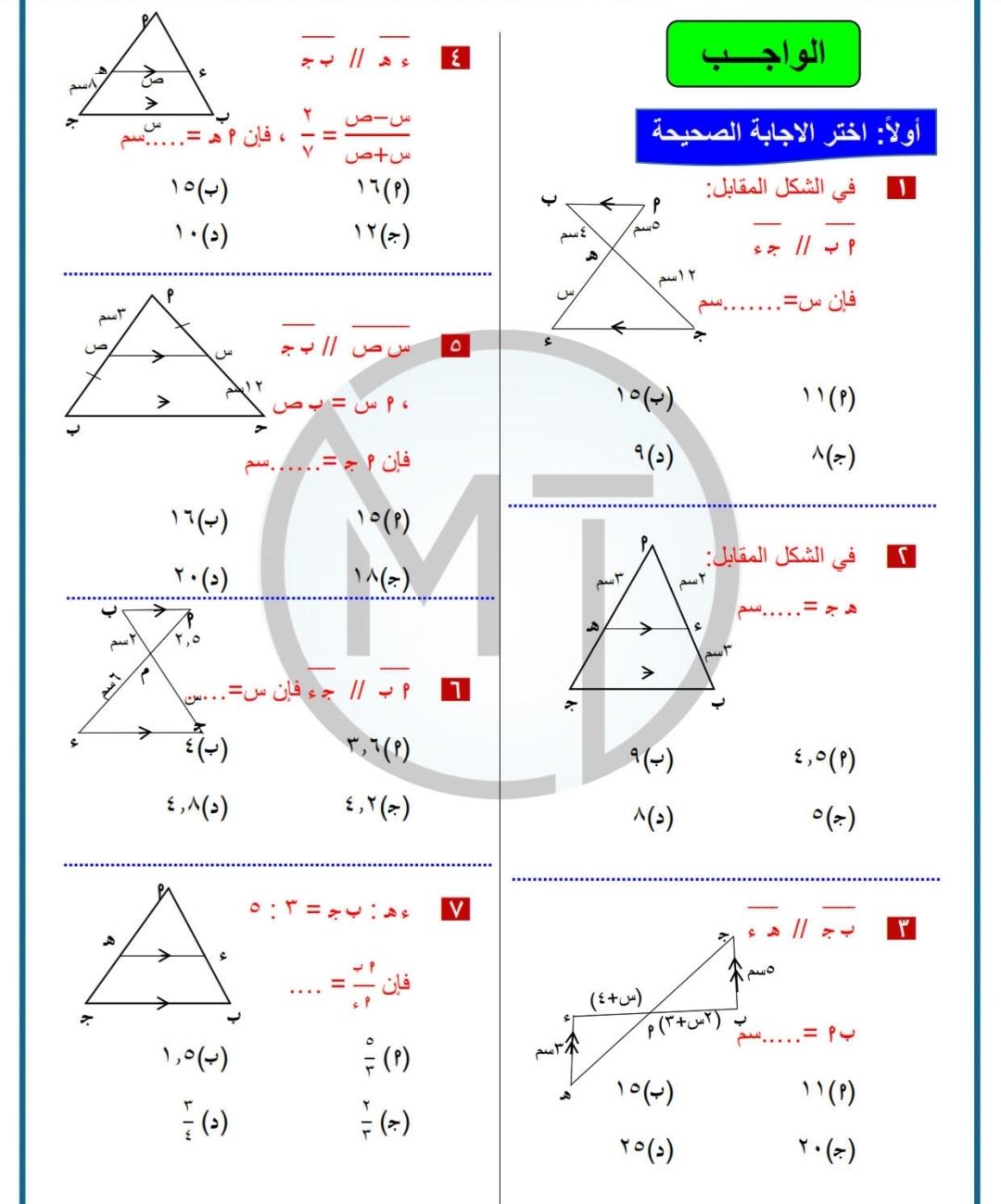تم اليوم شرح الحالة الثانية تشابه المثلثات الواجب حل تمارين اقليدس والحالة الثانية