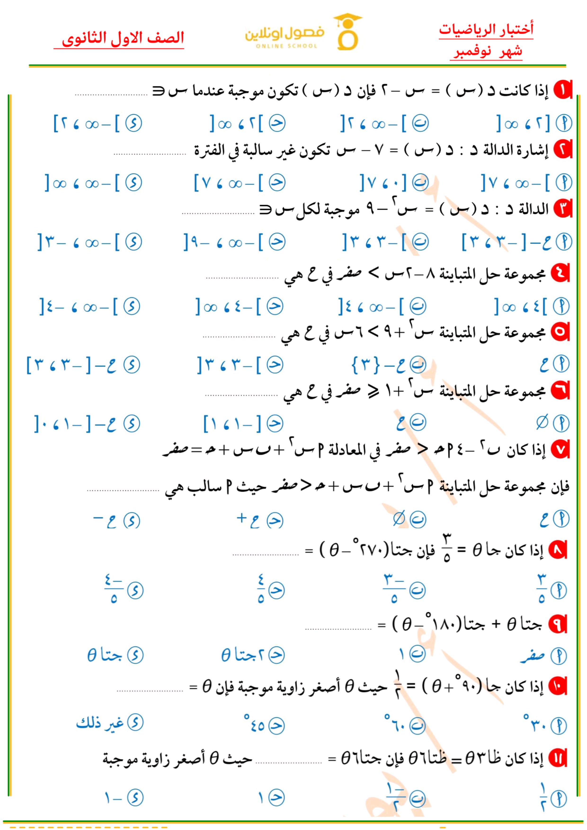 تم شرح درس الدوال المثلثية الواجب حل تمارين الدرس اختر