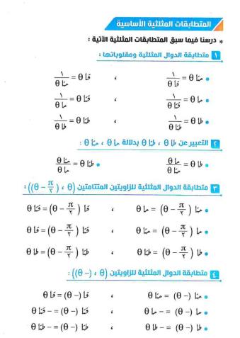 مراجعة و حفظ المتطابقات المثلثية الاساسية صغحة : 138 من كتاب المغاصر