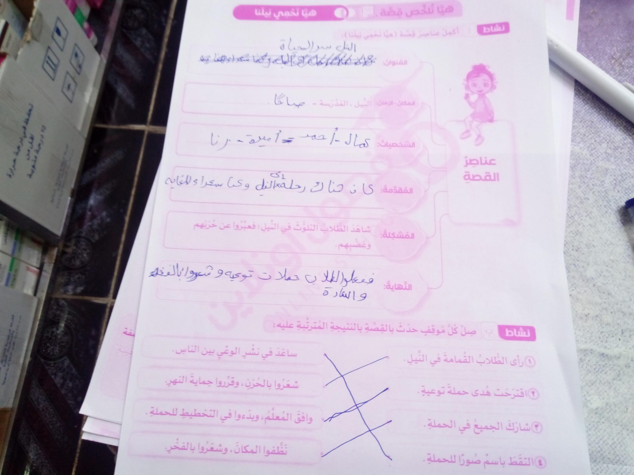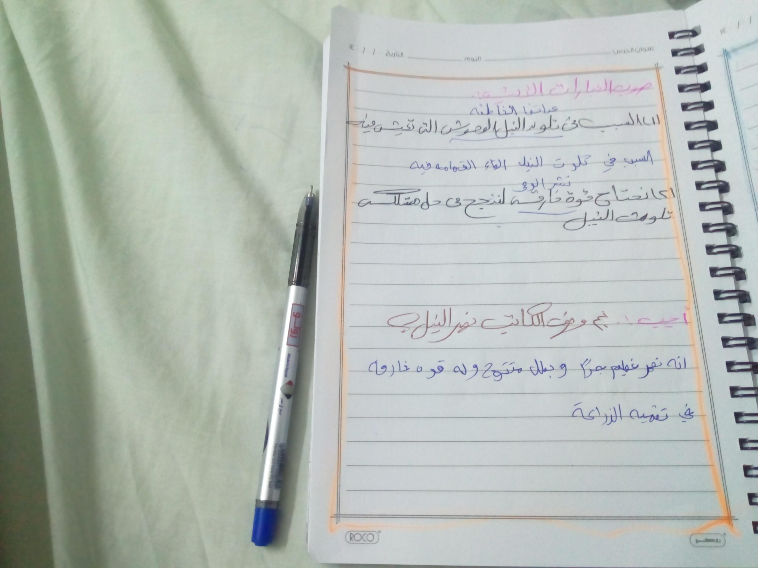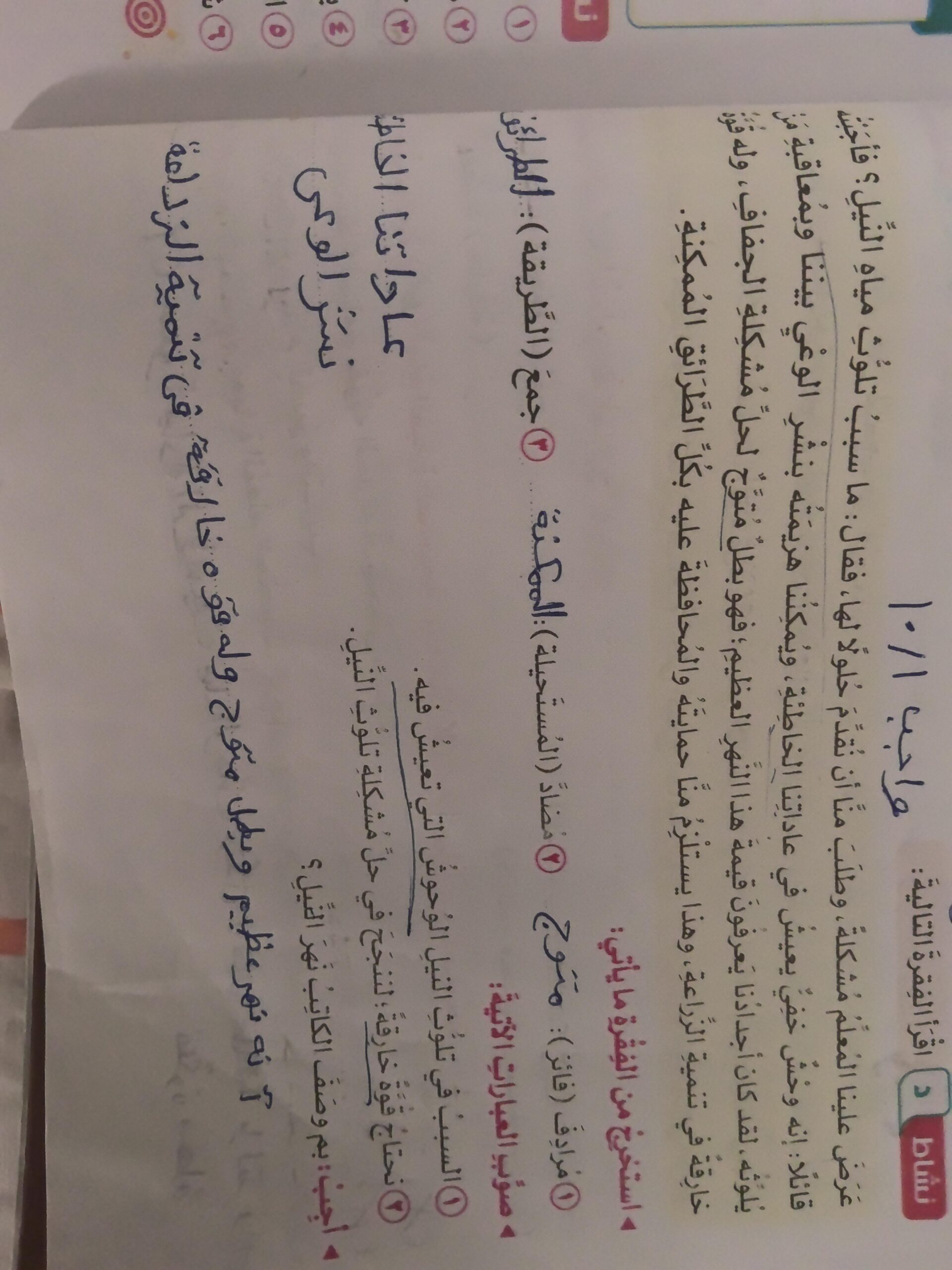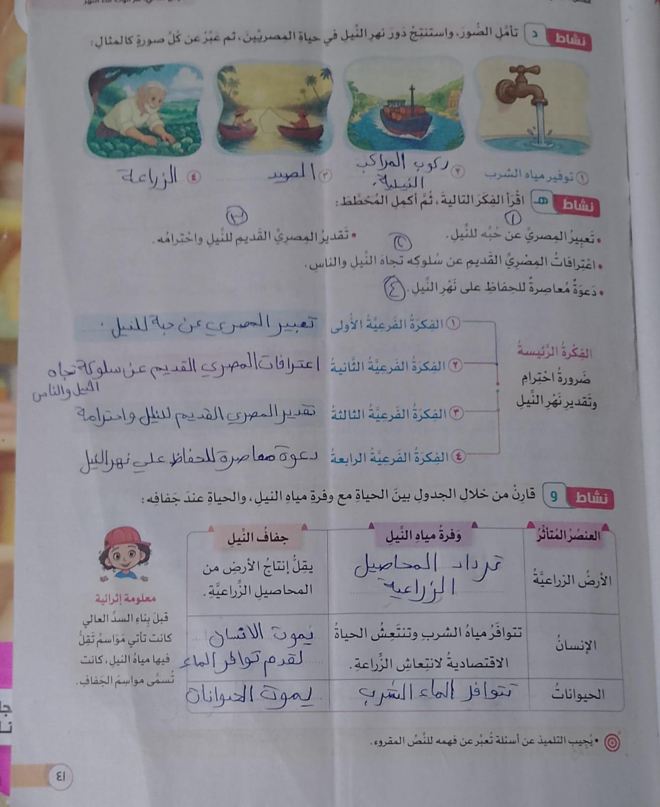 تم اليوم دري لم ألوث ماء النهر والواجب ص 36وحل ص 41