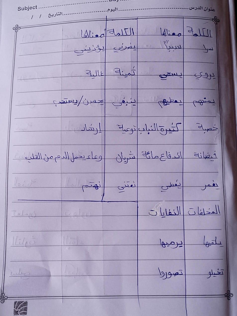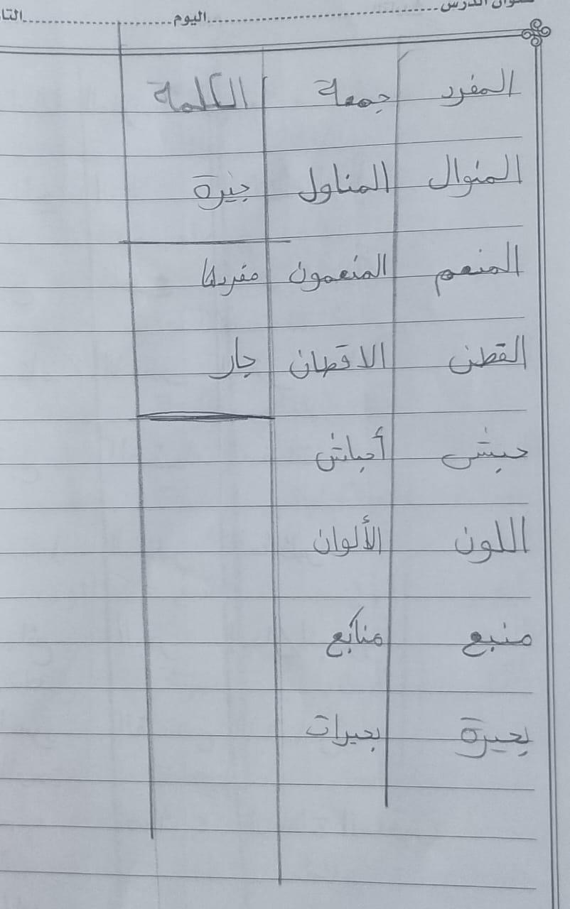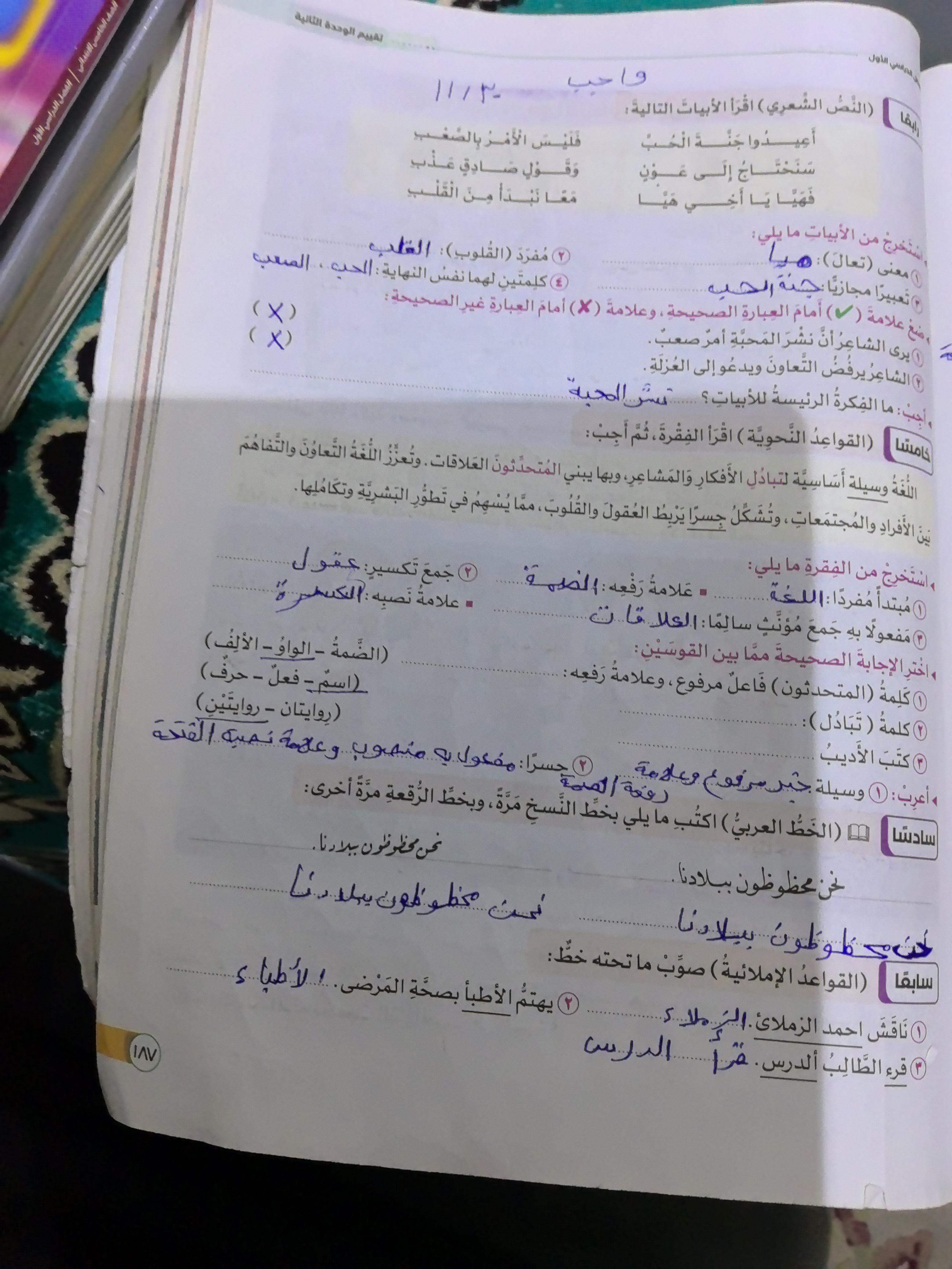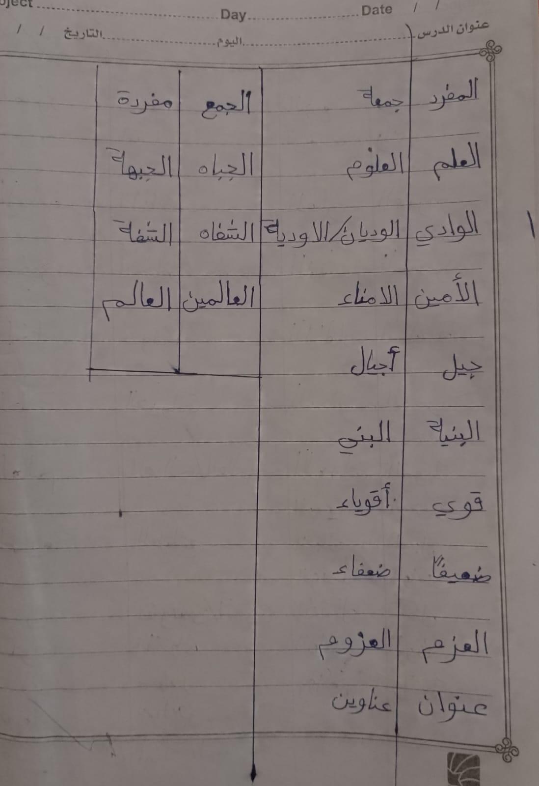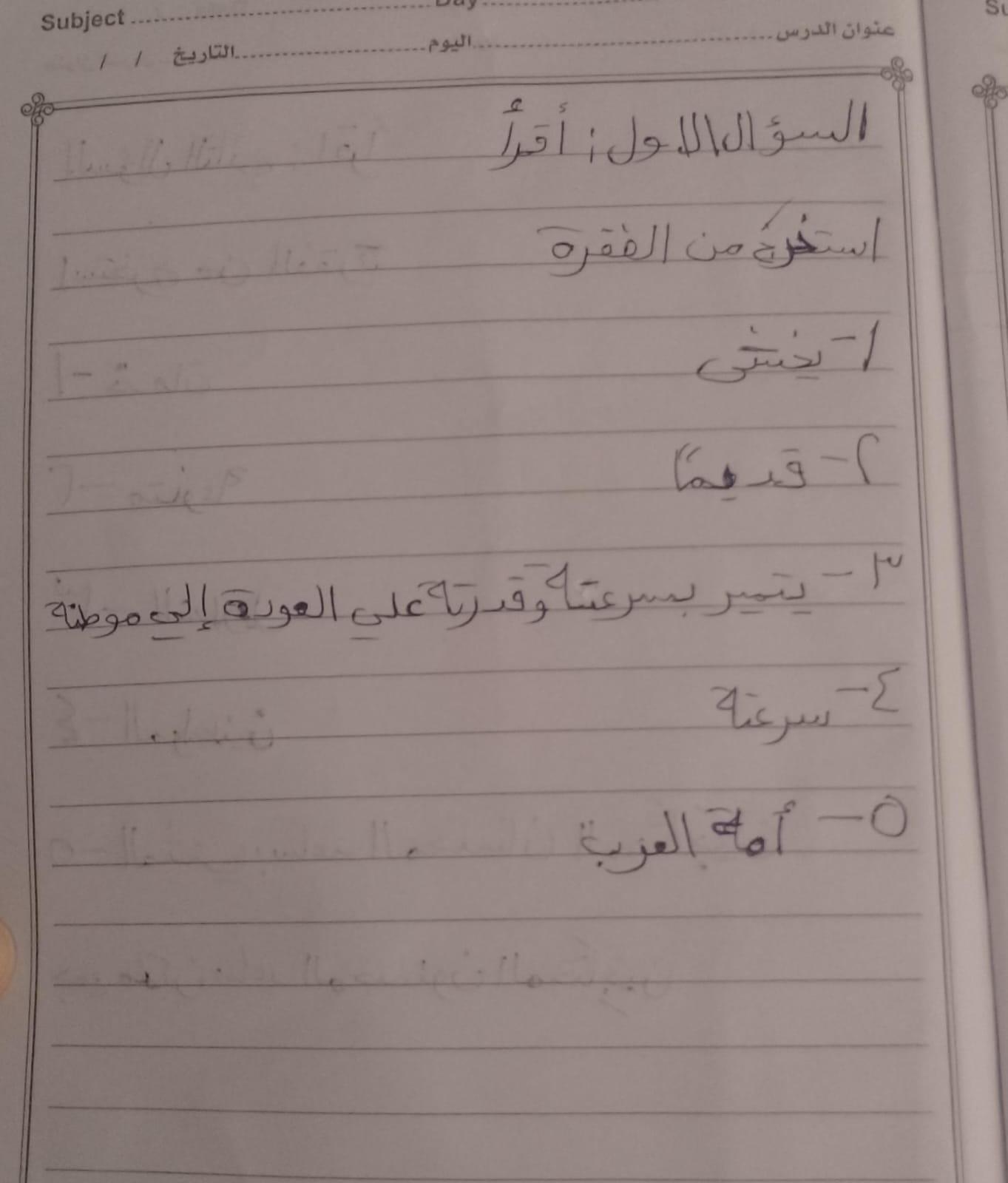 واجب اللغة العربية ❤️ ❤️ 💖 🤗 🤗