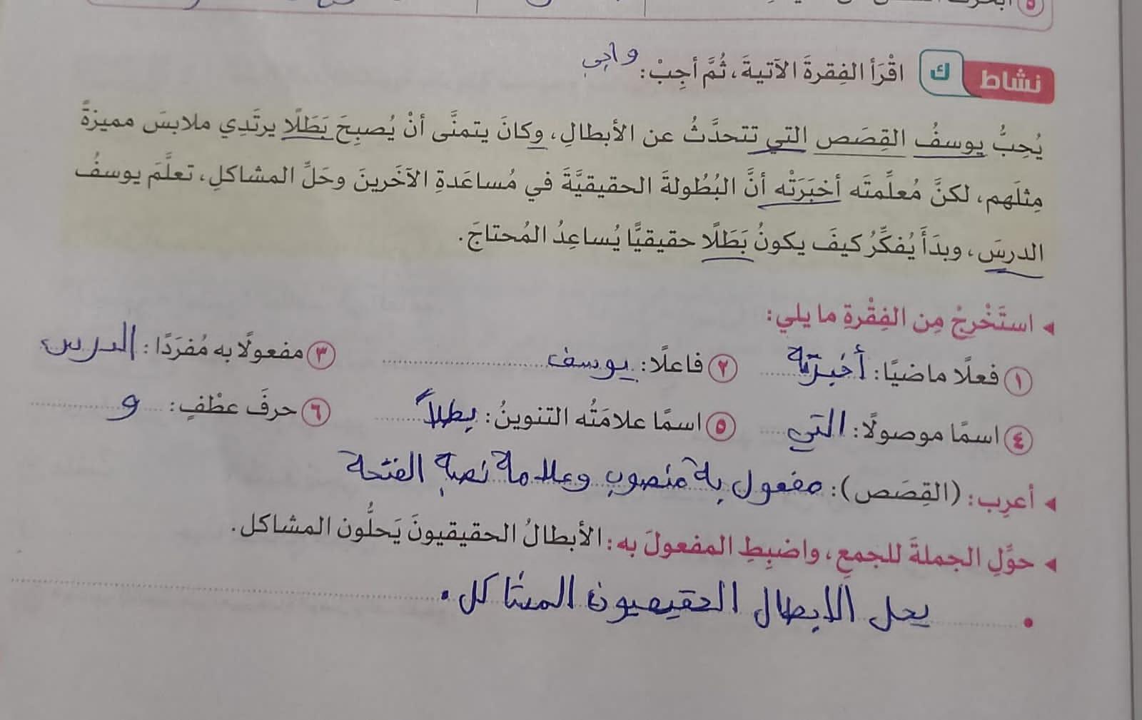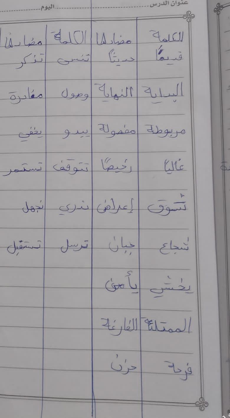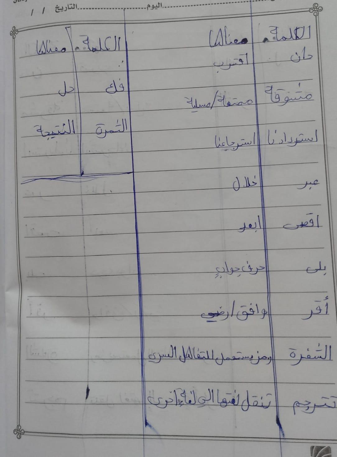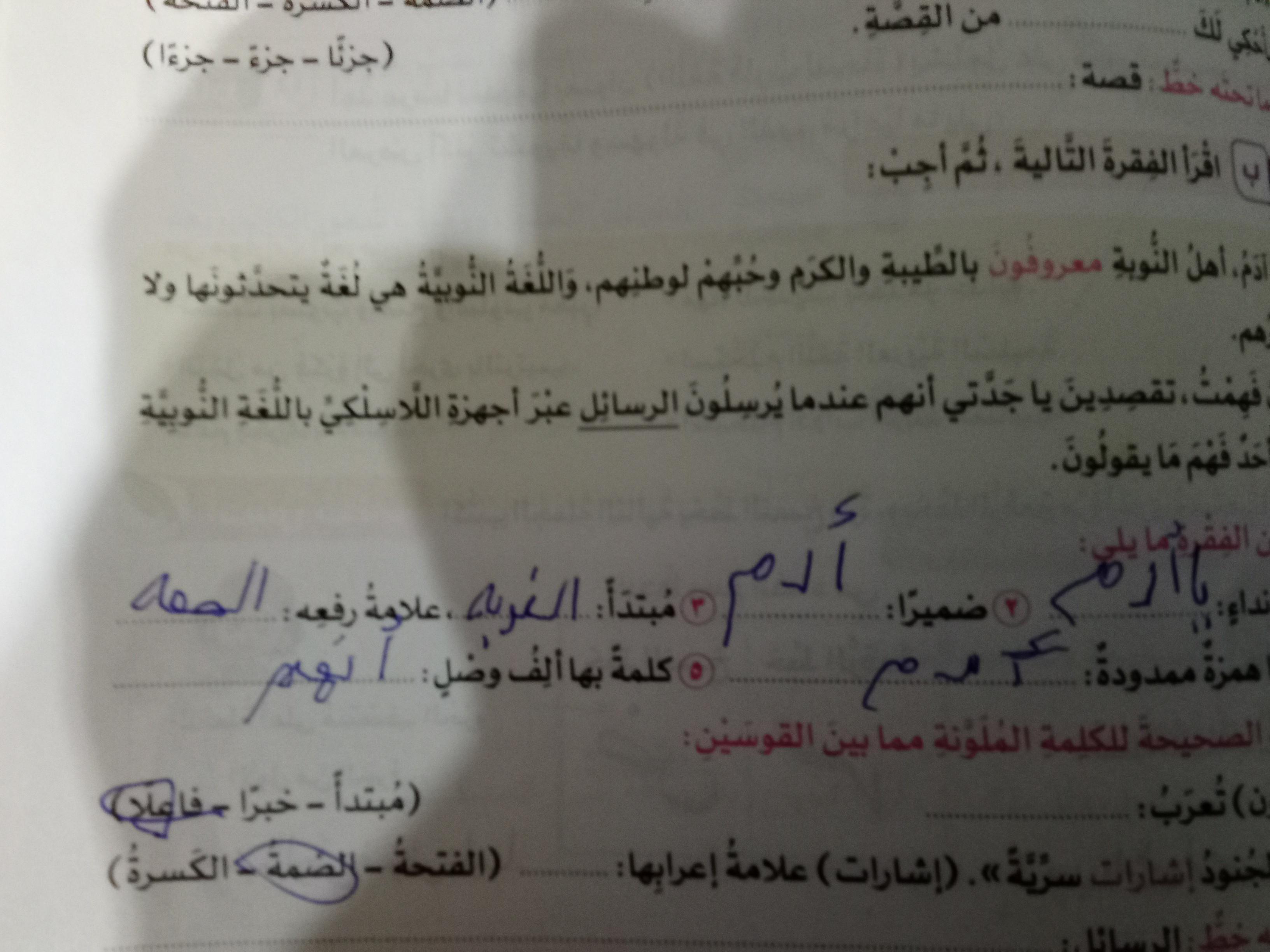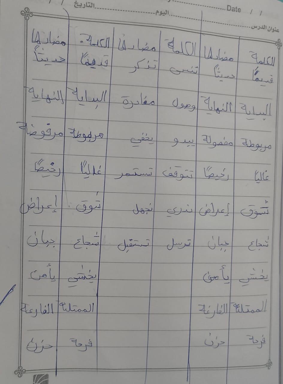 واجب اللغة العربية ❤️ ❤️ 💖 🤗 🤗