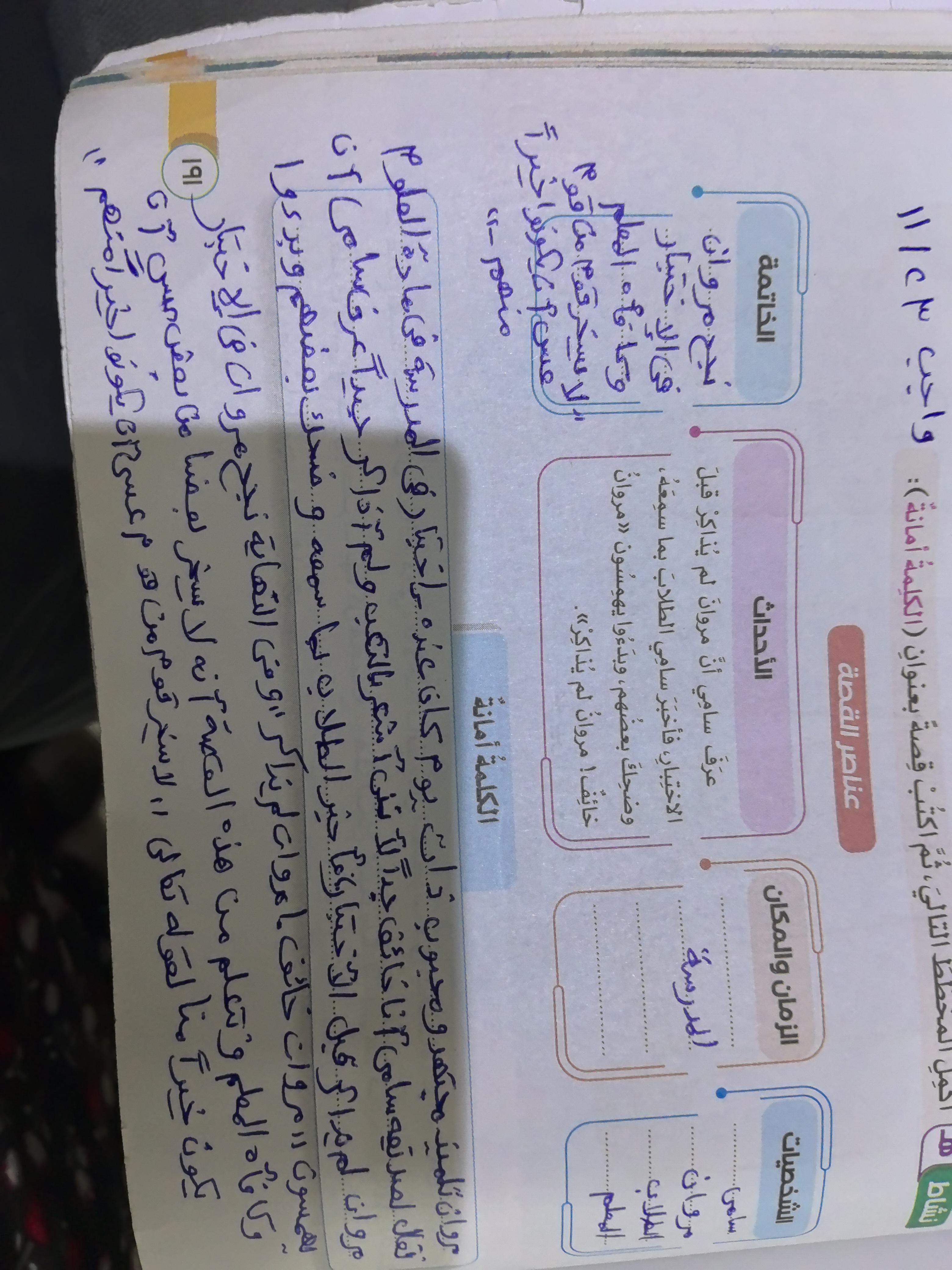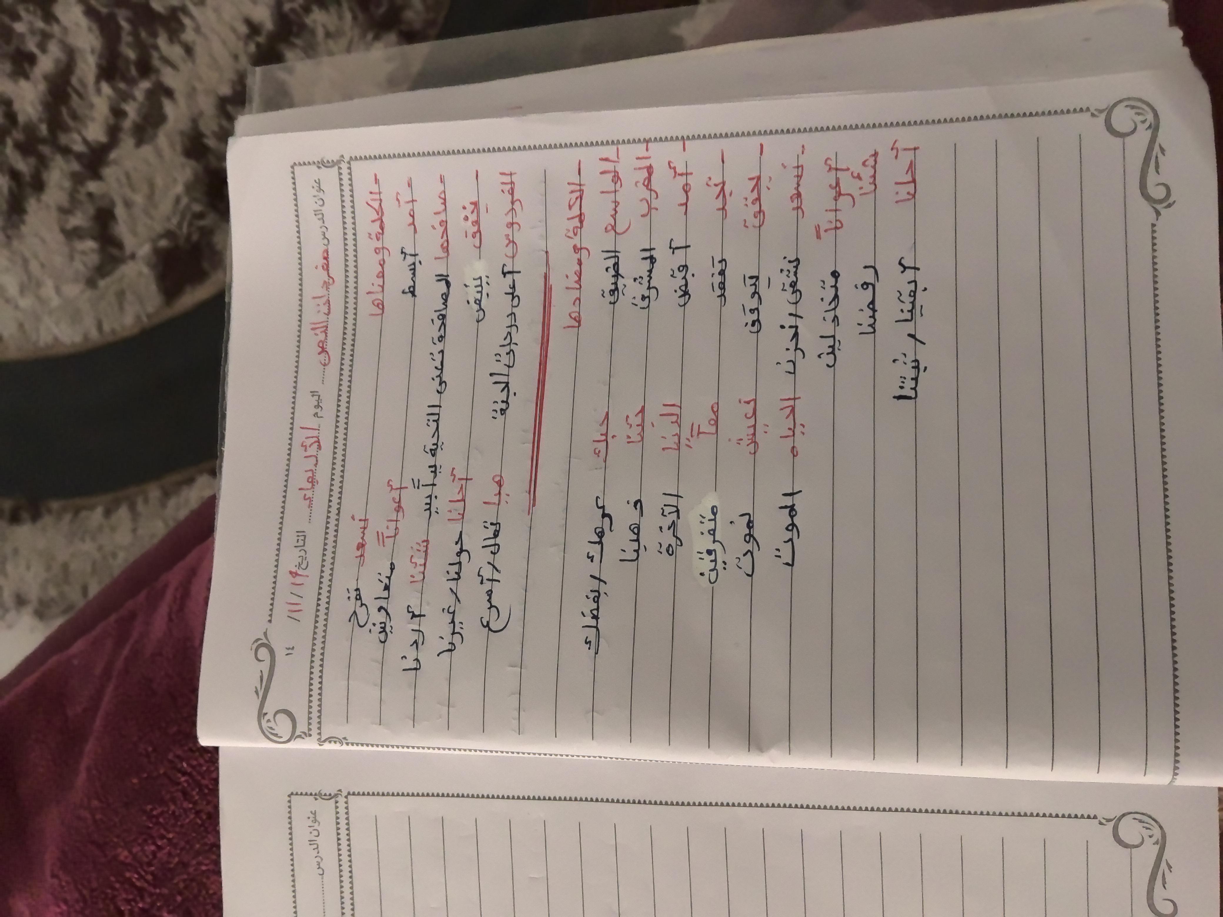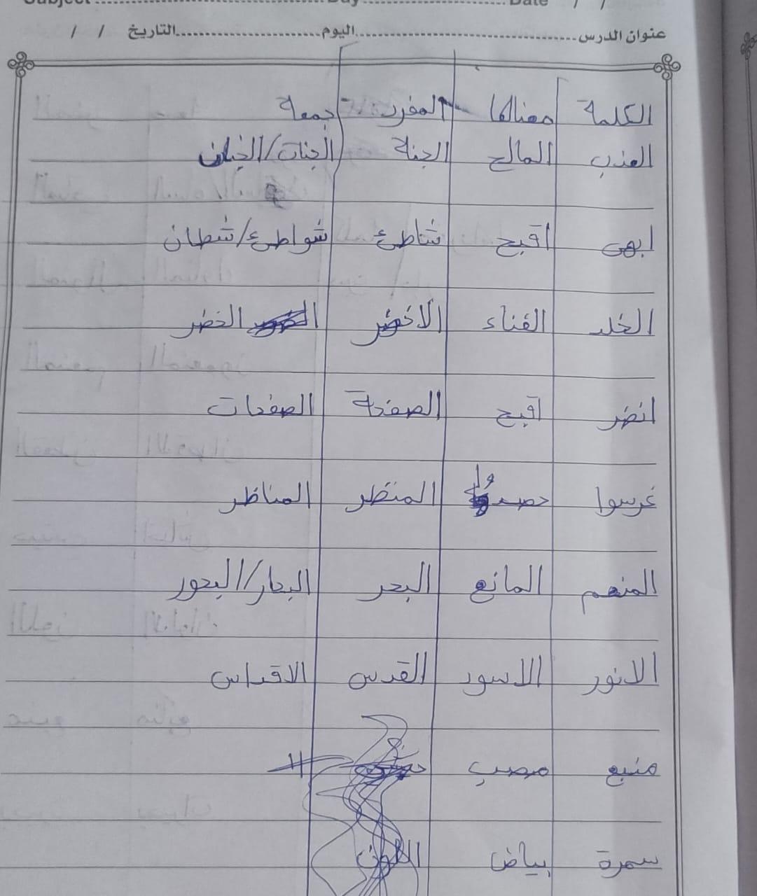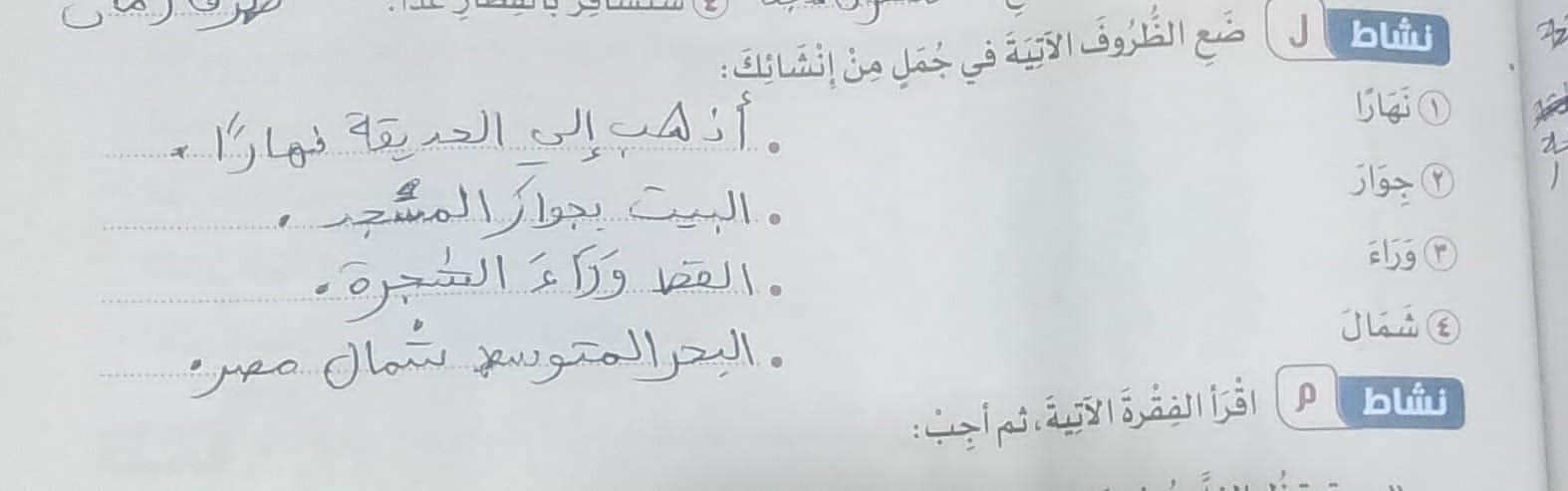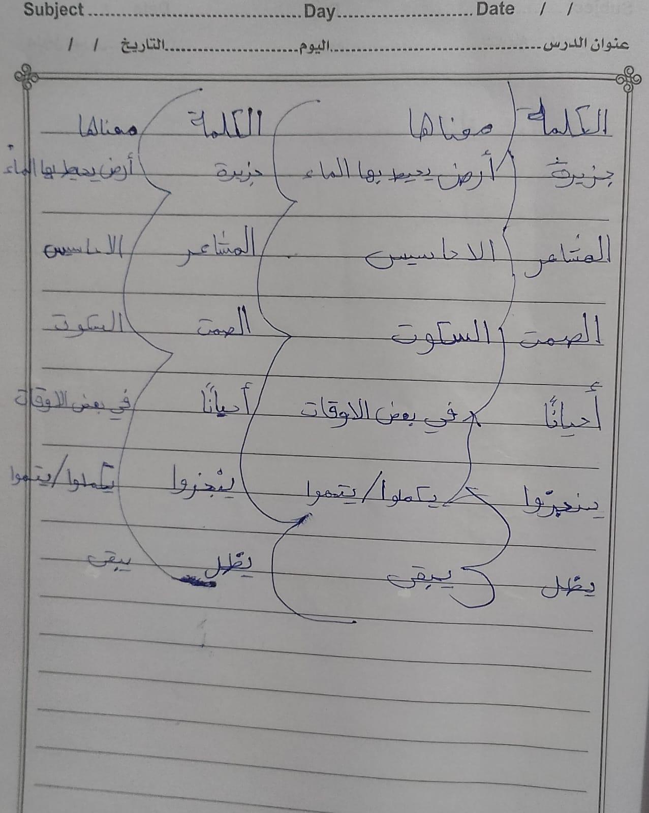 واجب اللغة العربية ❤️ ❤️ 💖 🤗 🤗