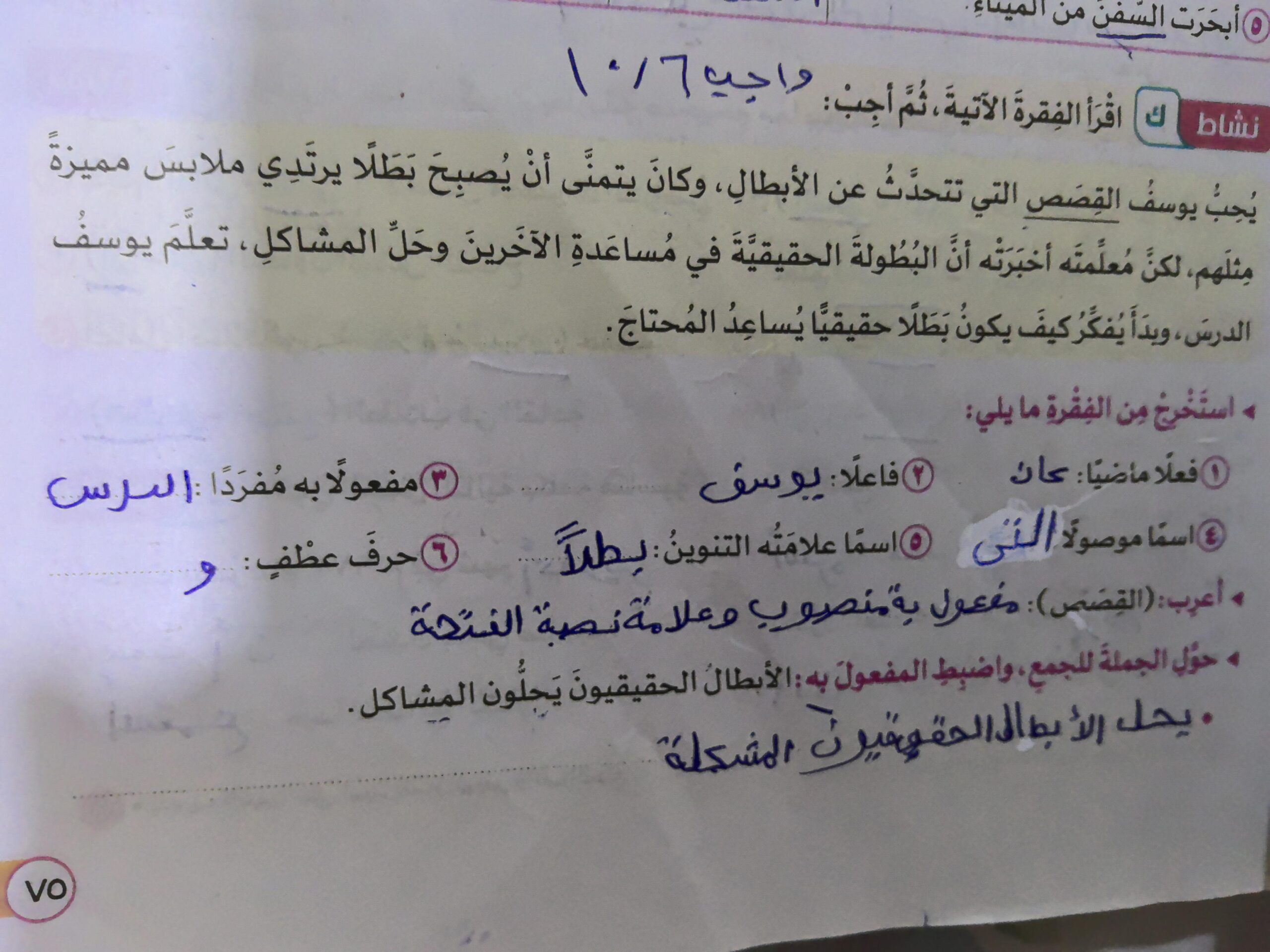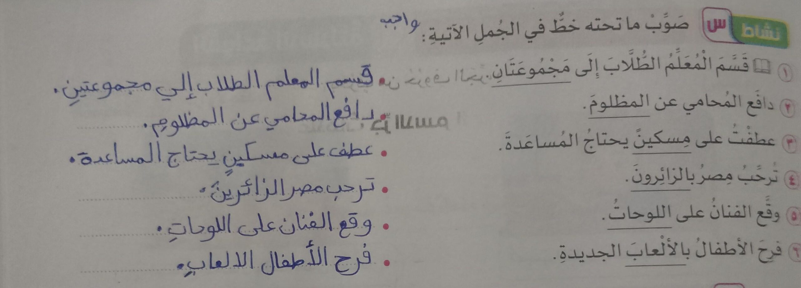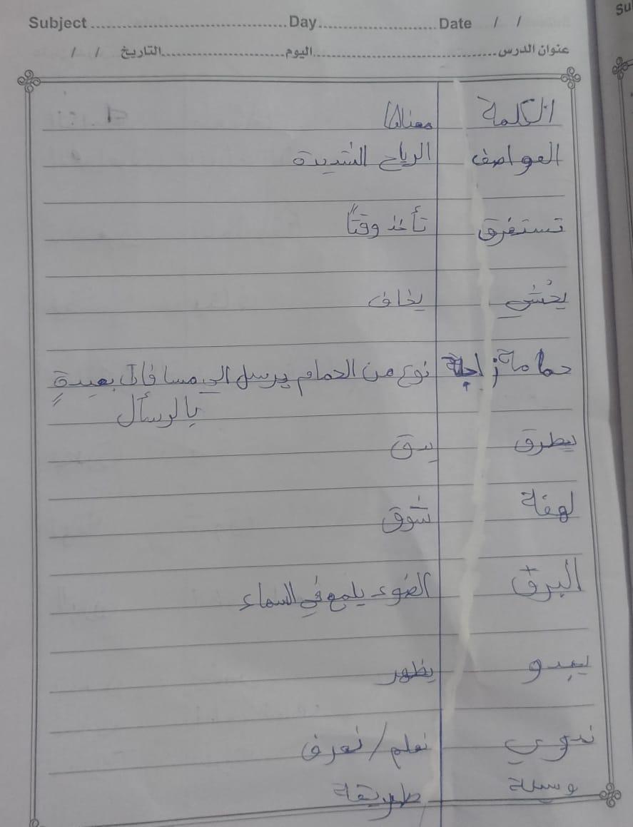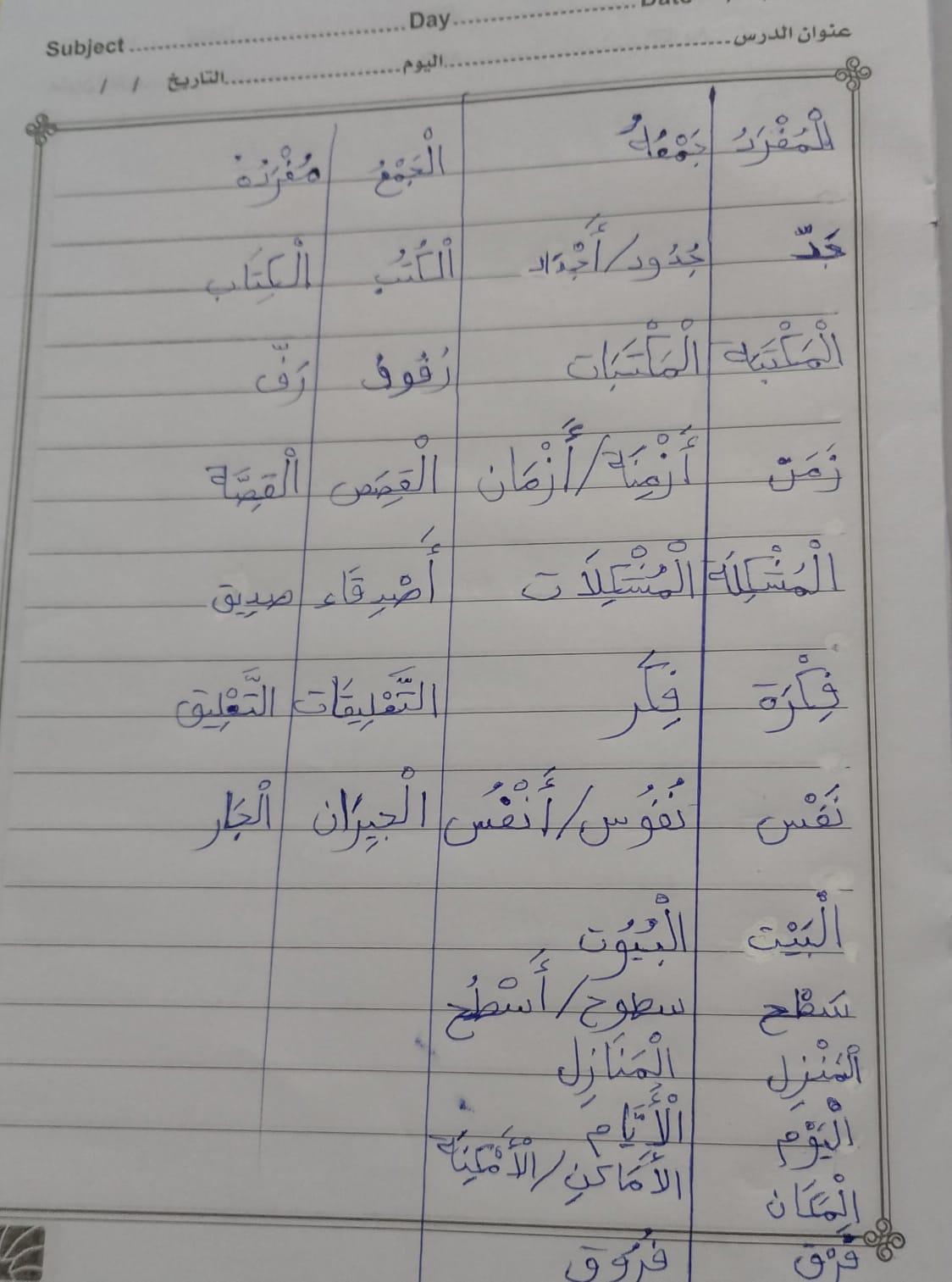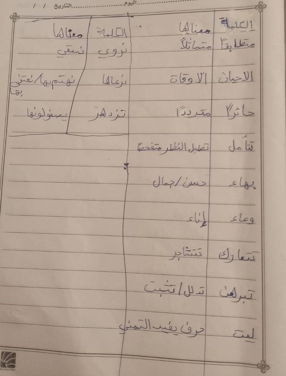 واجب اللغة العربية ❤️ ❤️ 💖 🤗 🤗