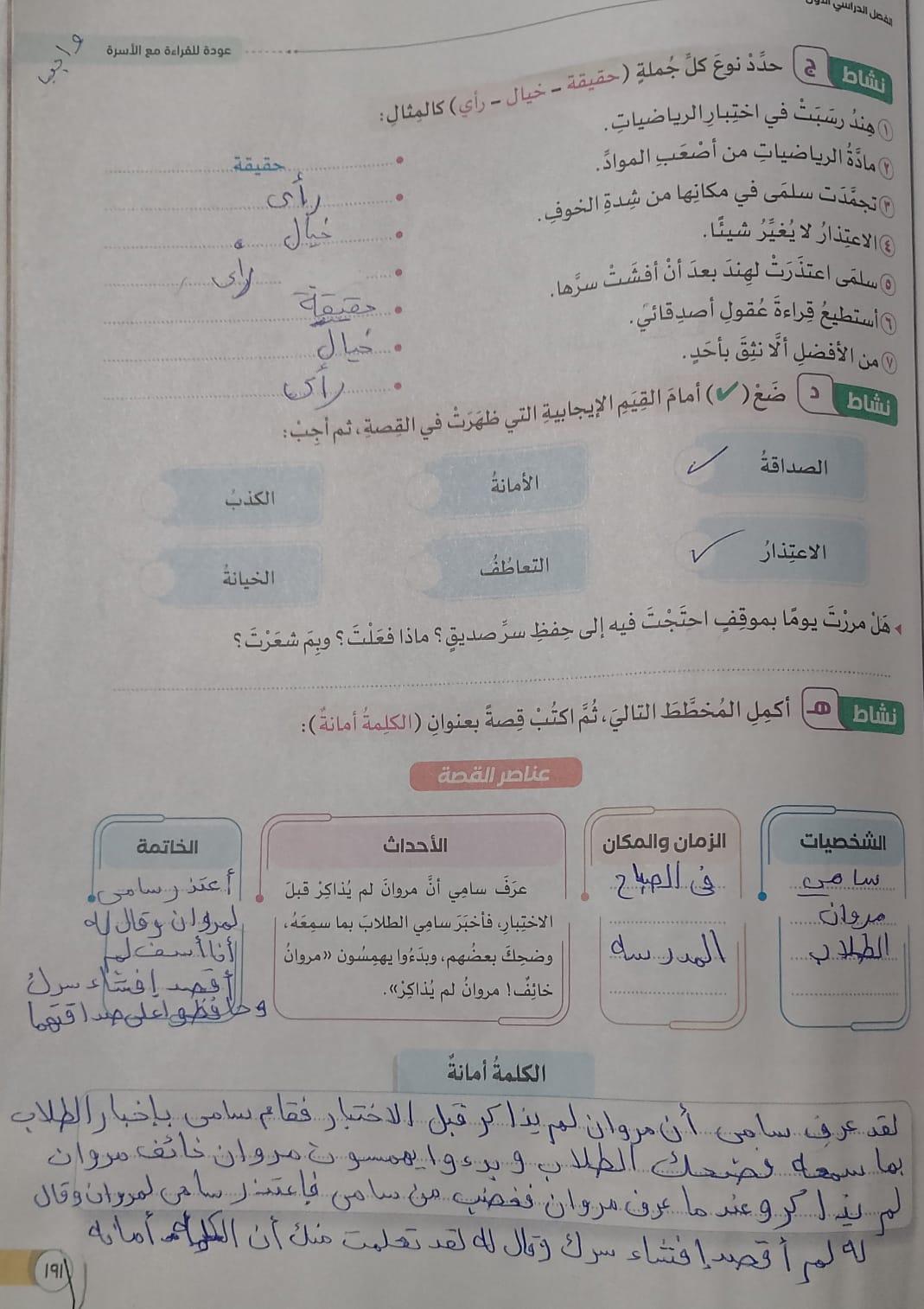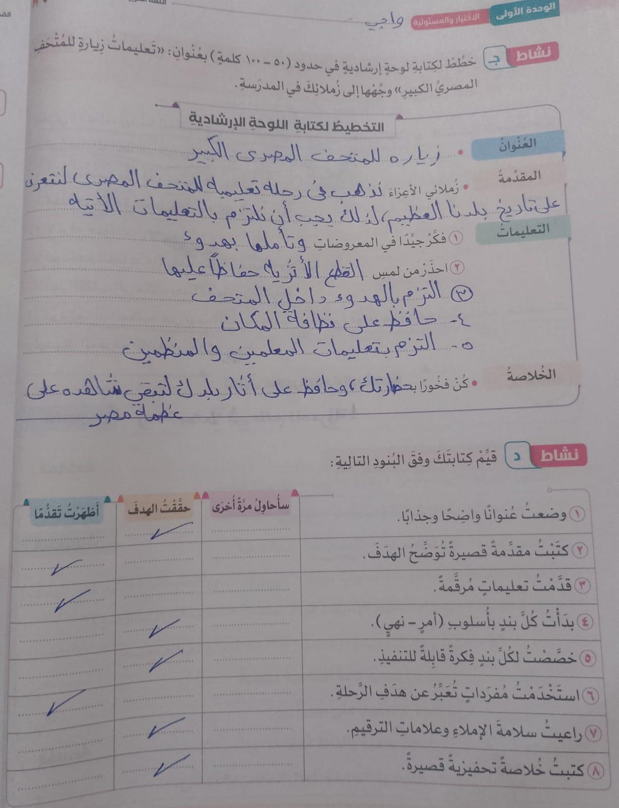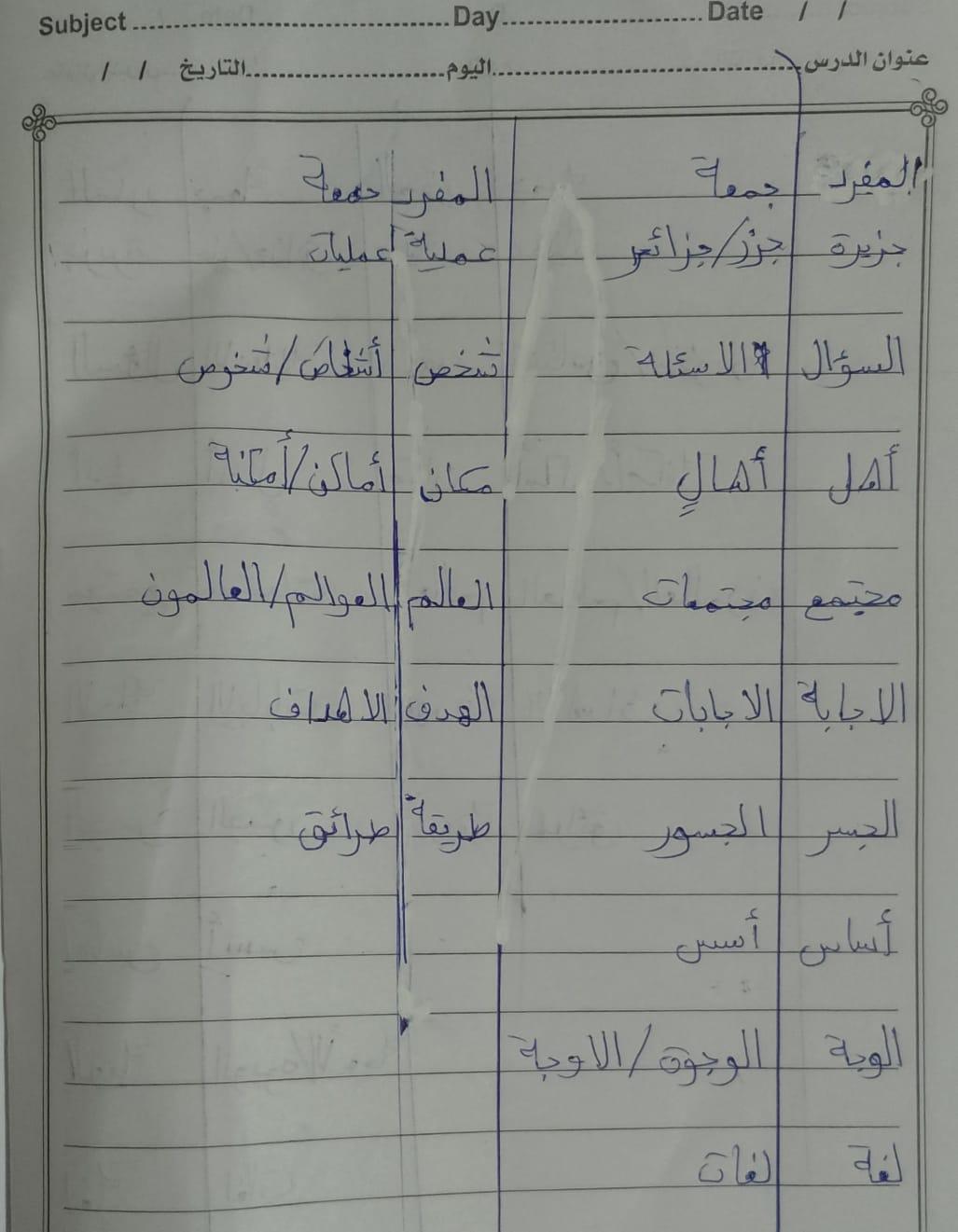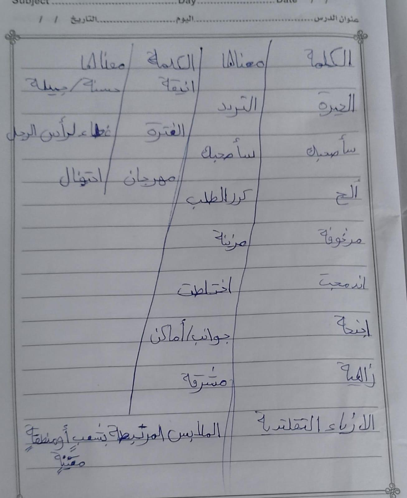 واجب اللغة العربية ❤️ ❤️ 💖 🤗 🤗