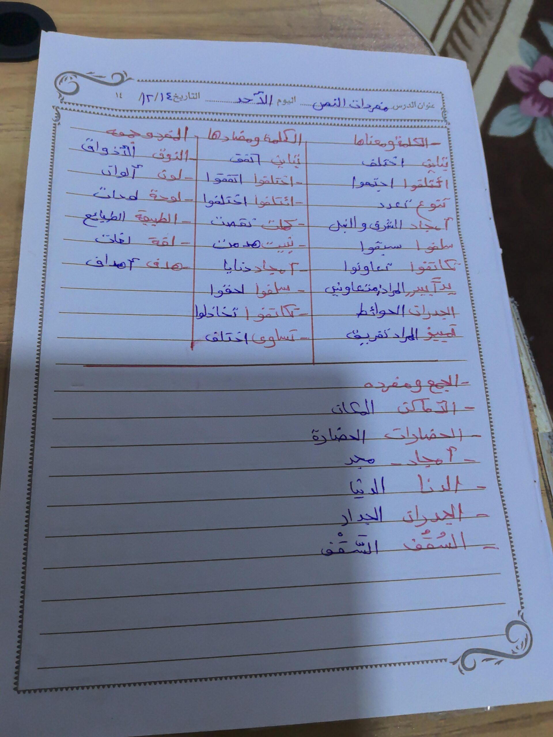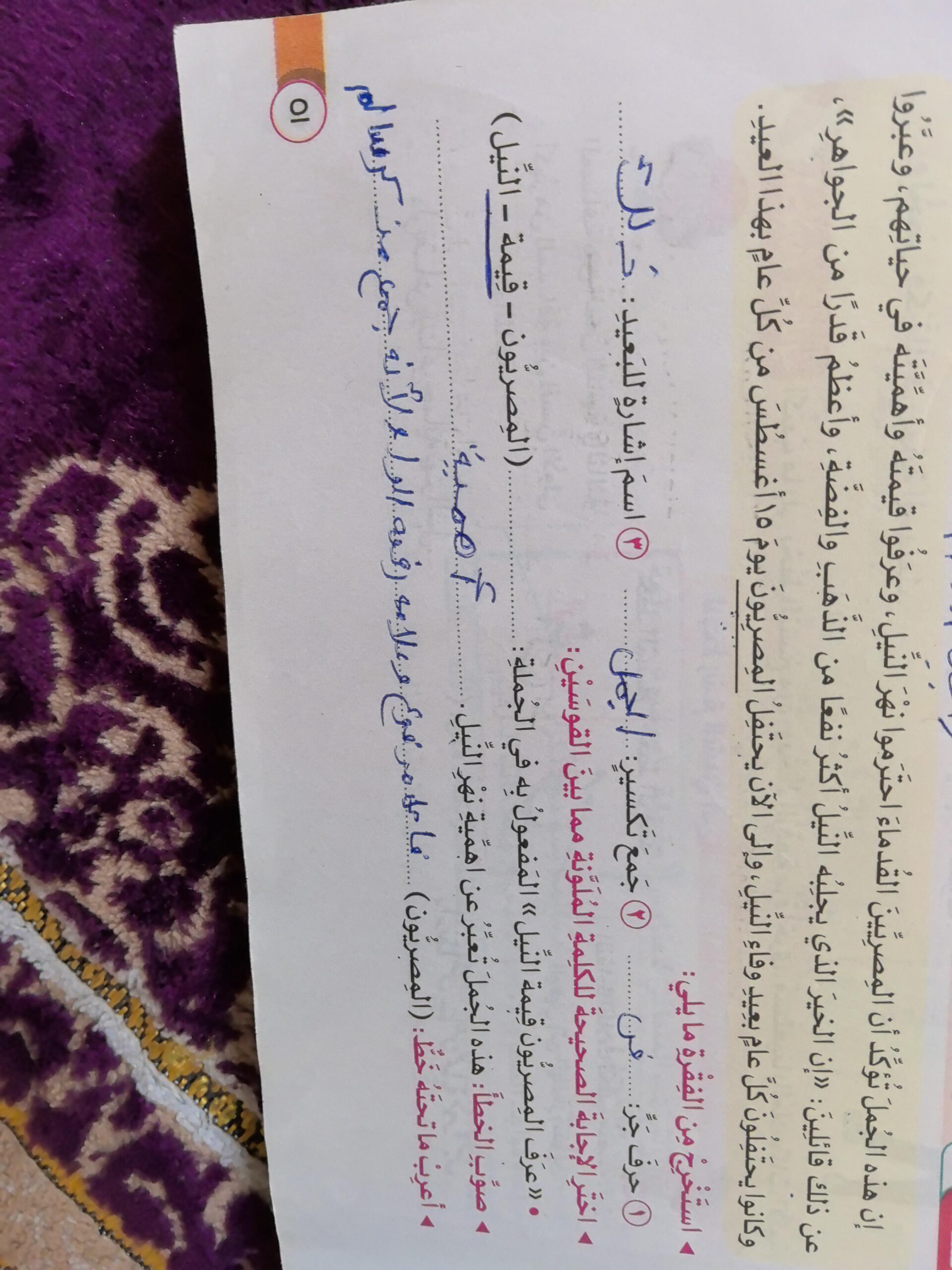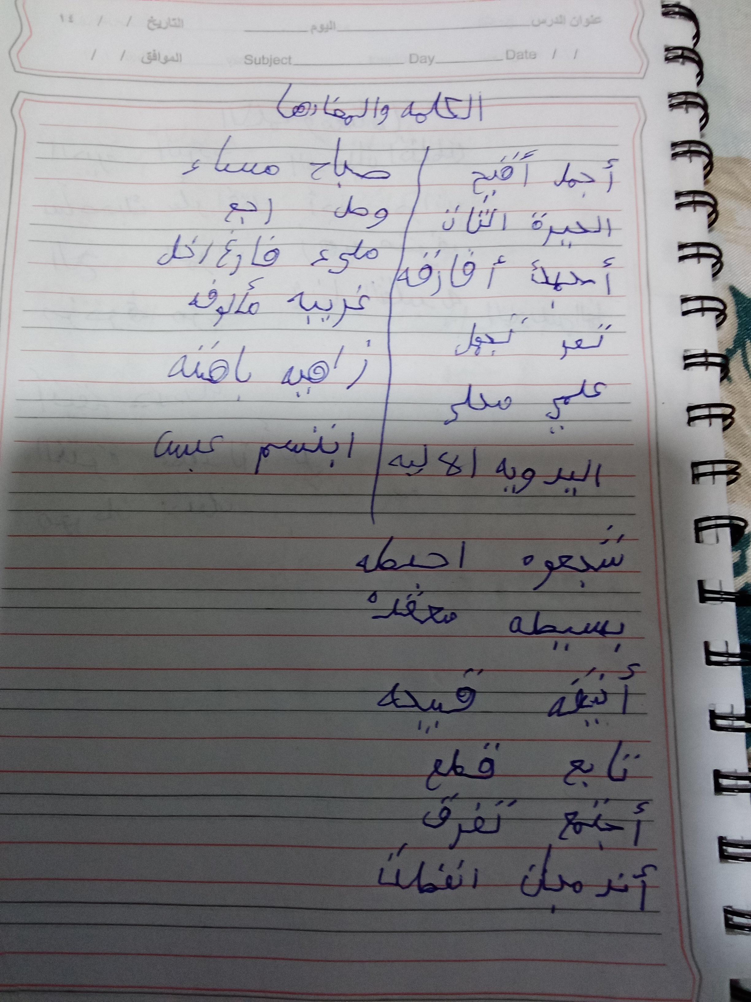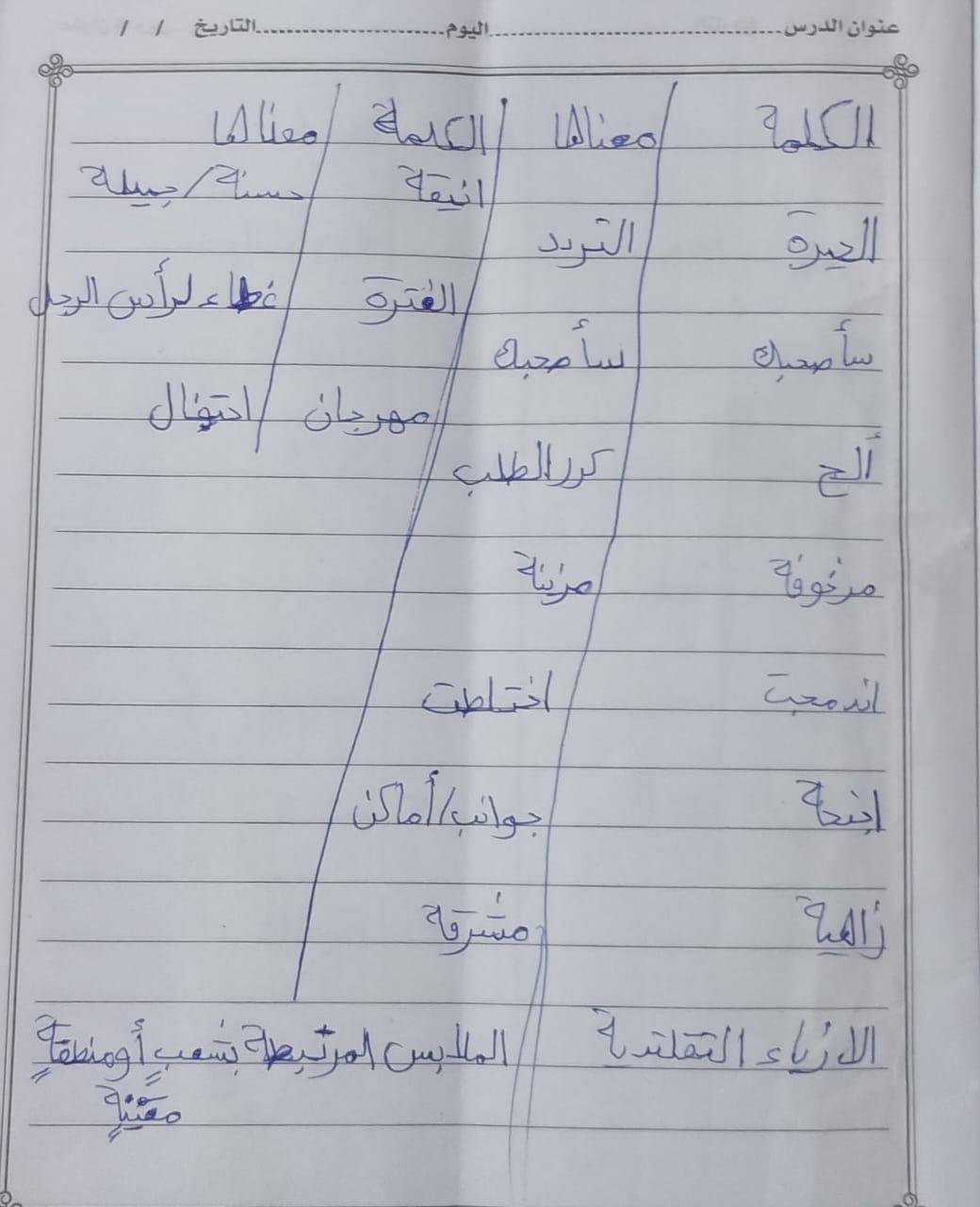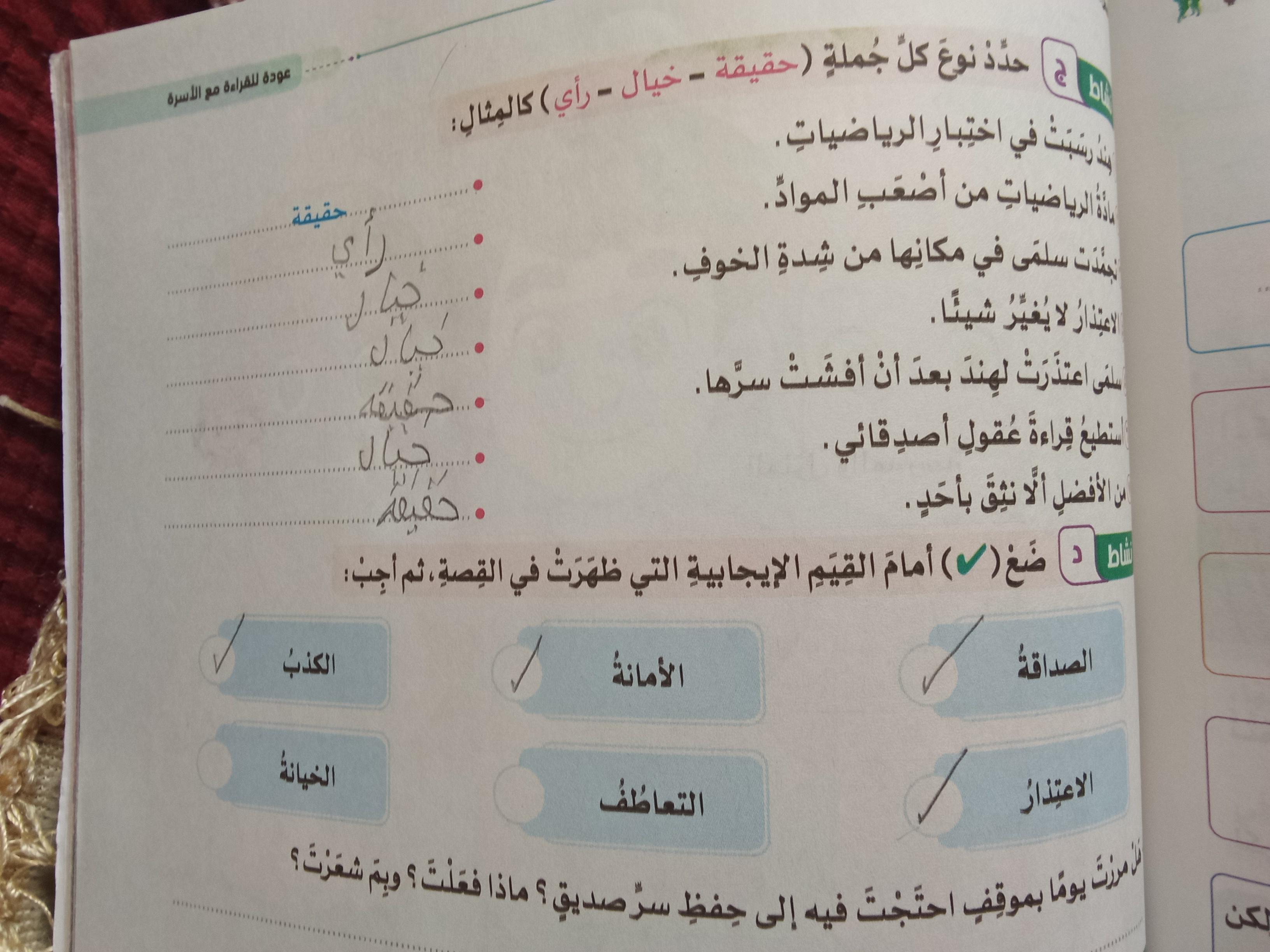 واجب اللغة العربية ❤️ ❤️ 💖 🤗 🤗
