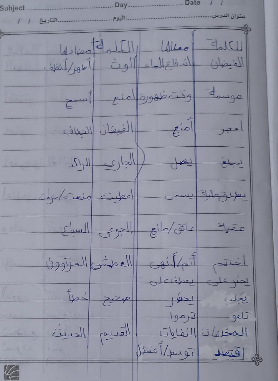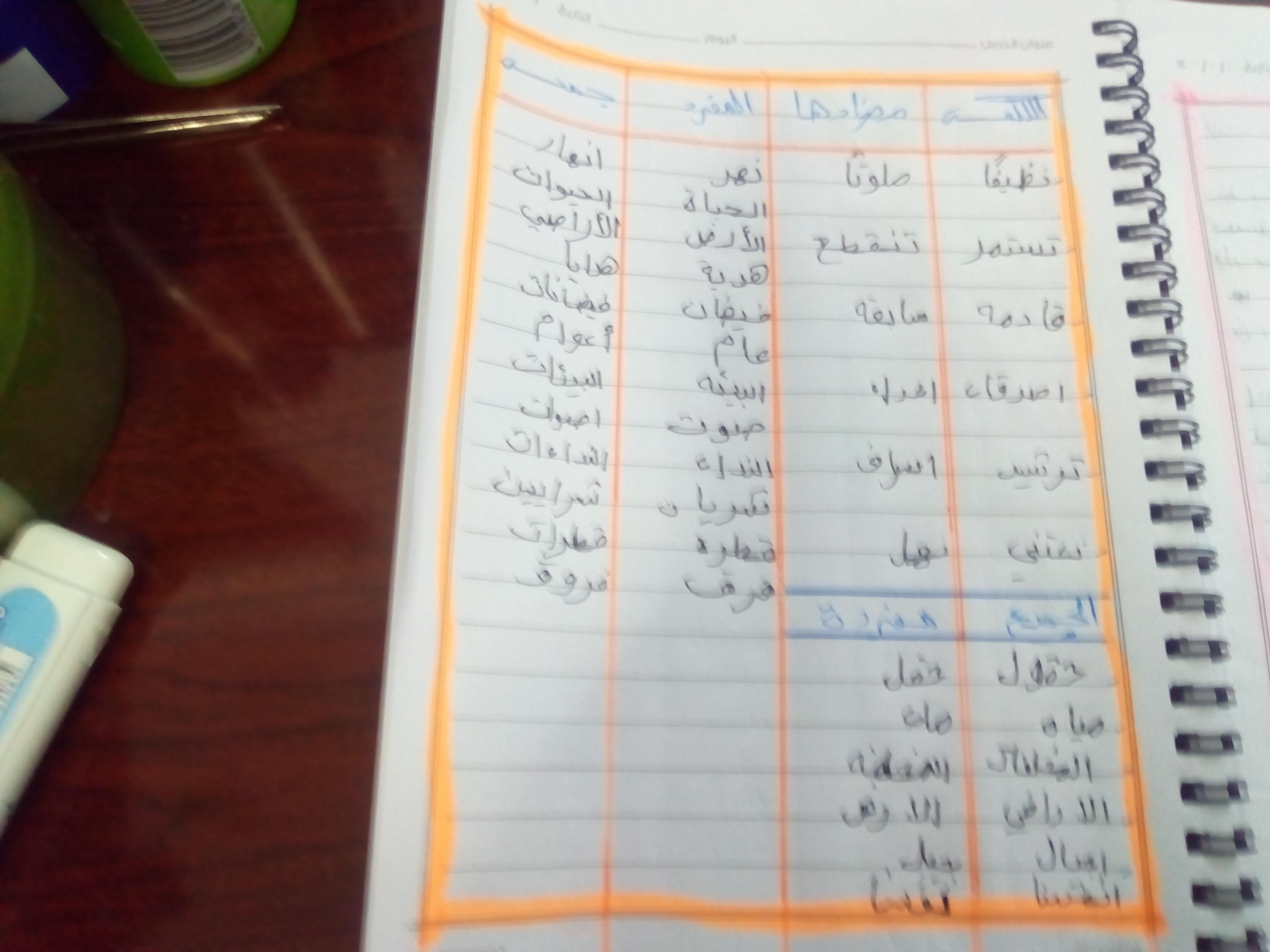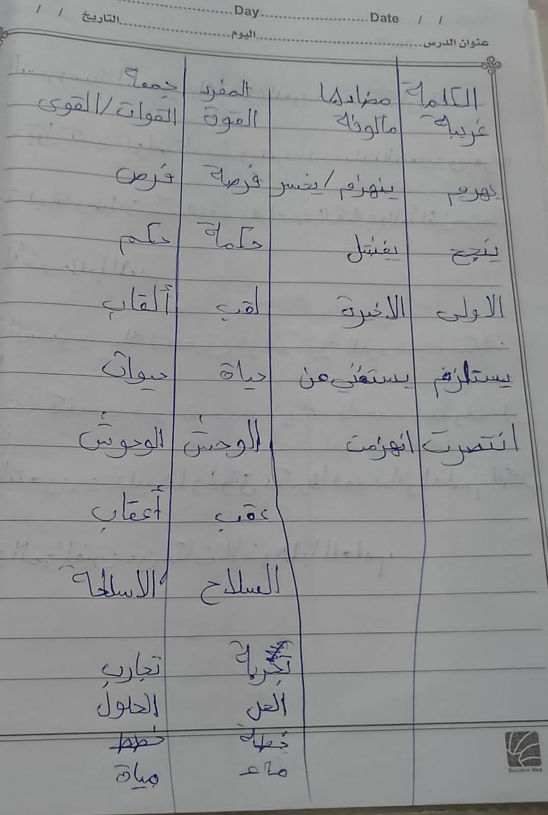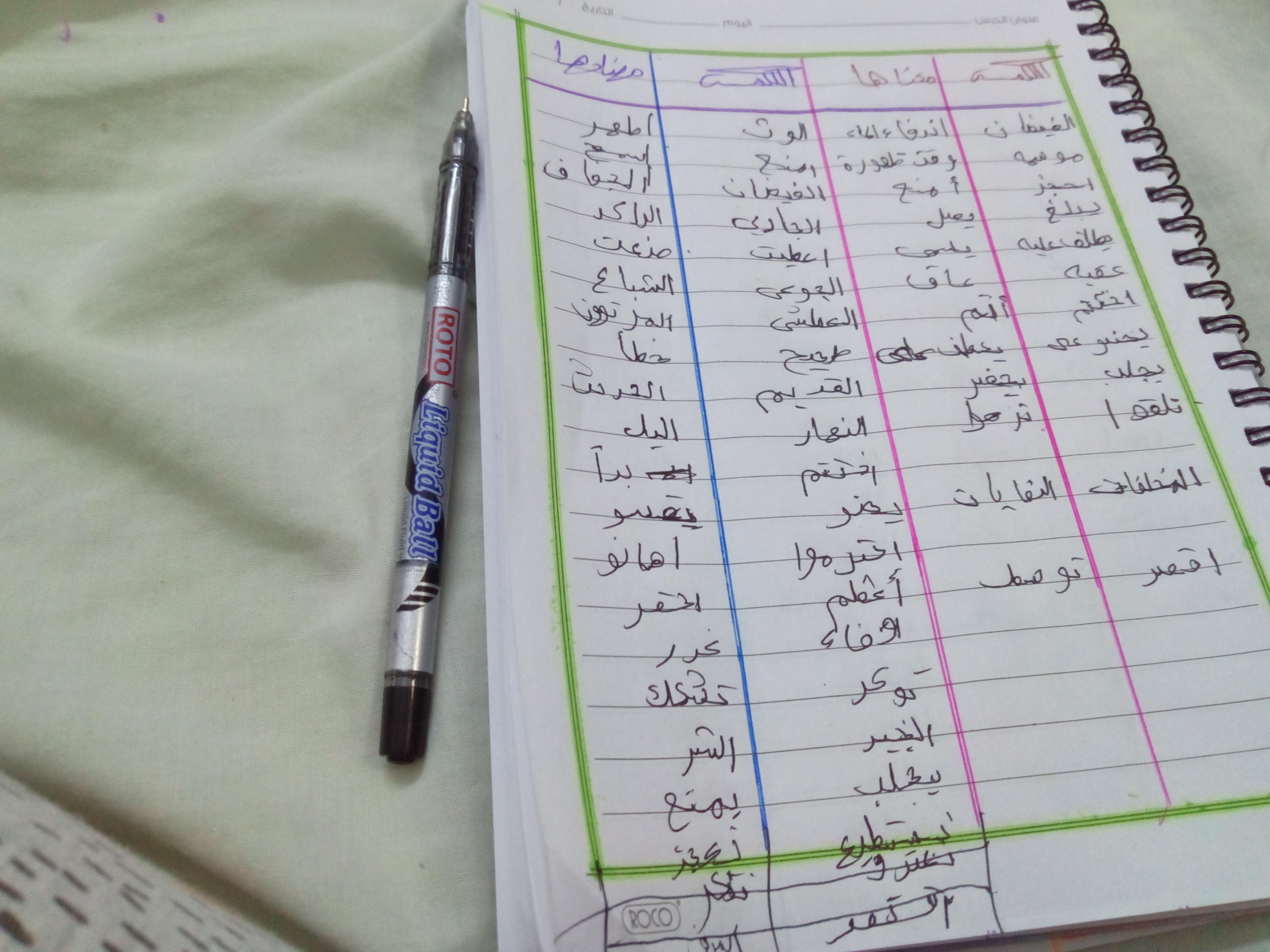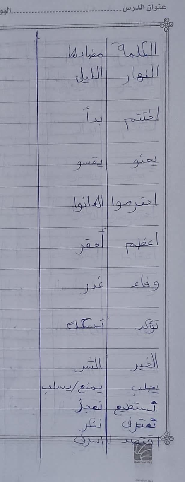 تم اليوم درس سر الحياة والواجب كتابة المعاني والمضاد ص 27
