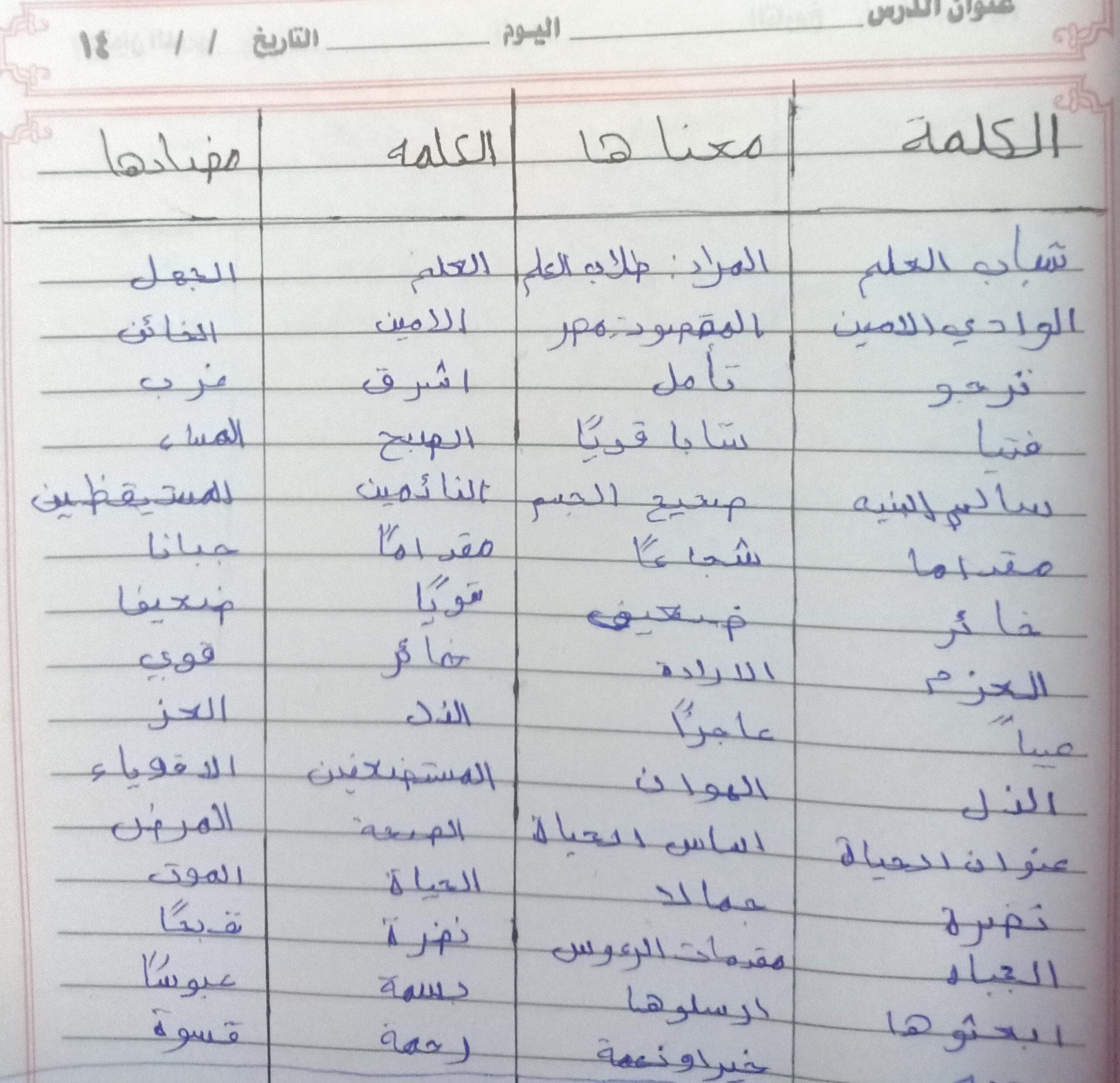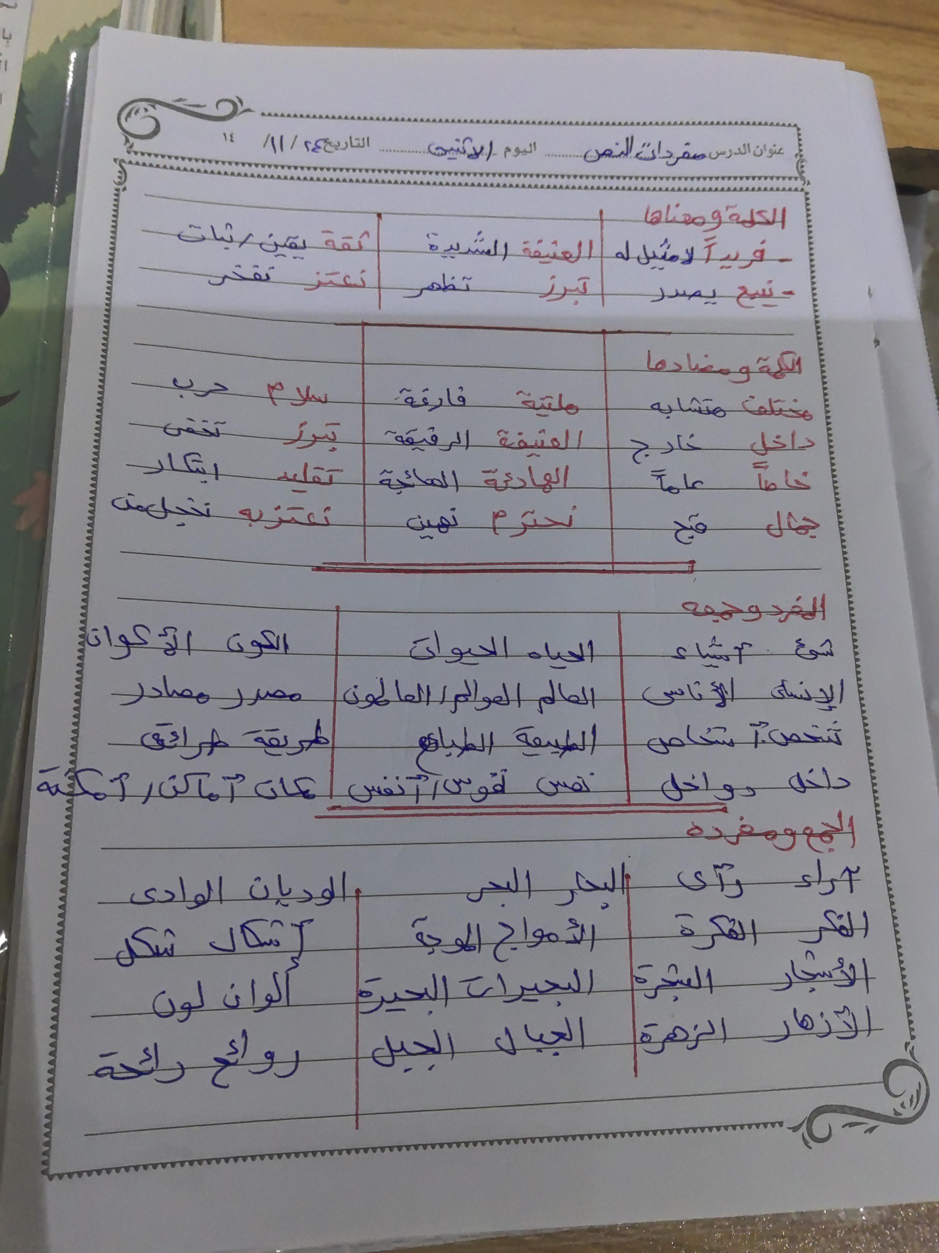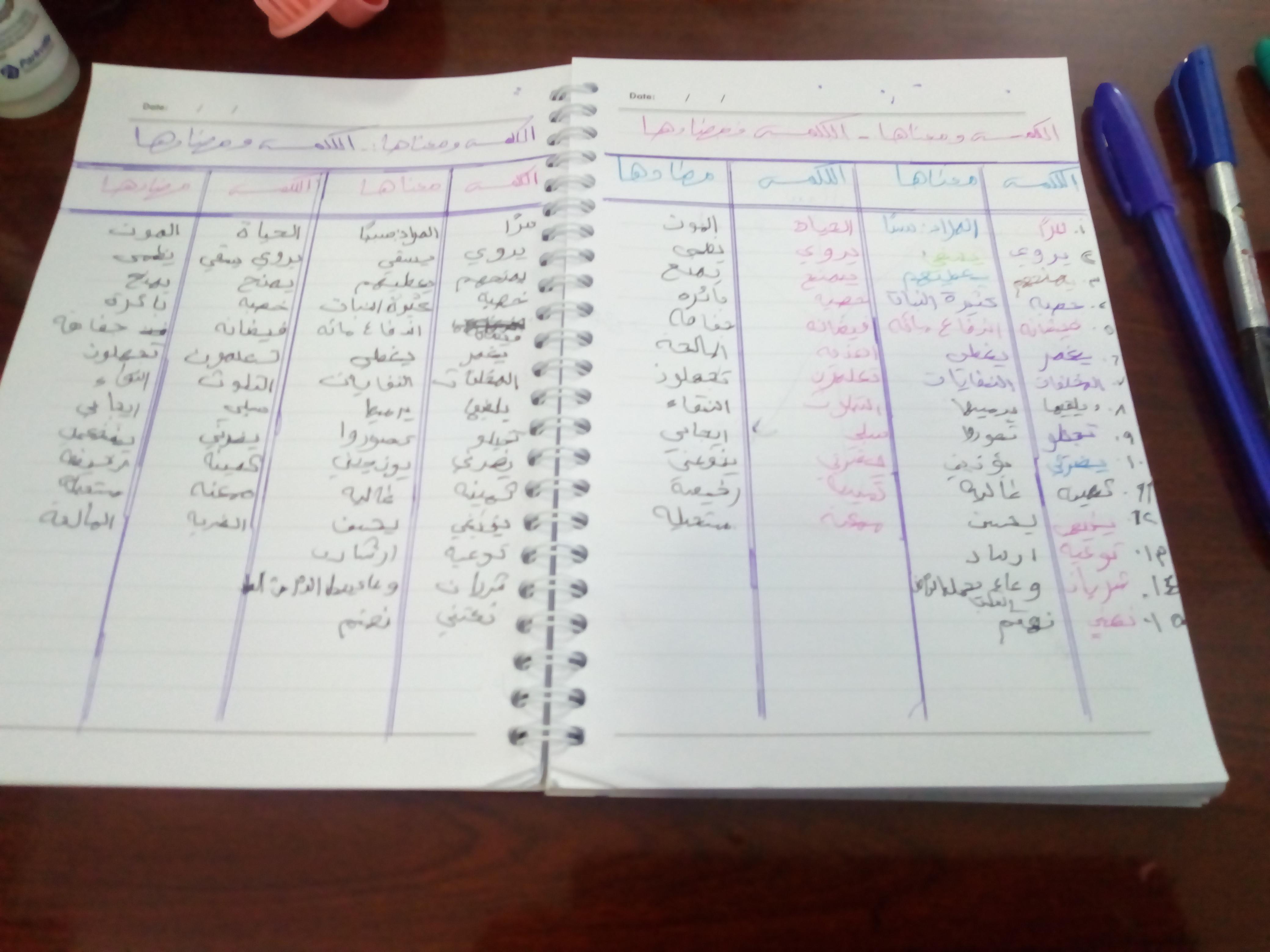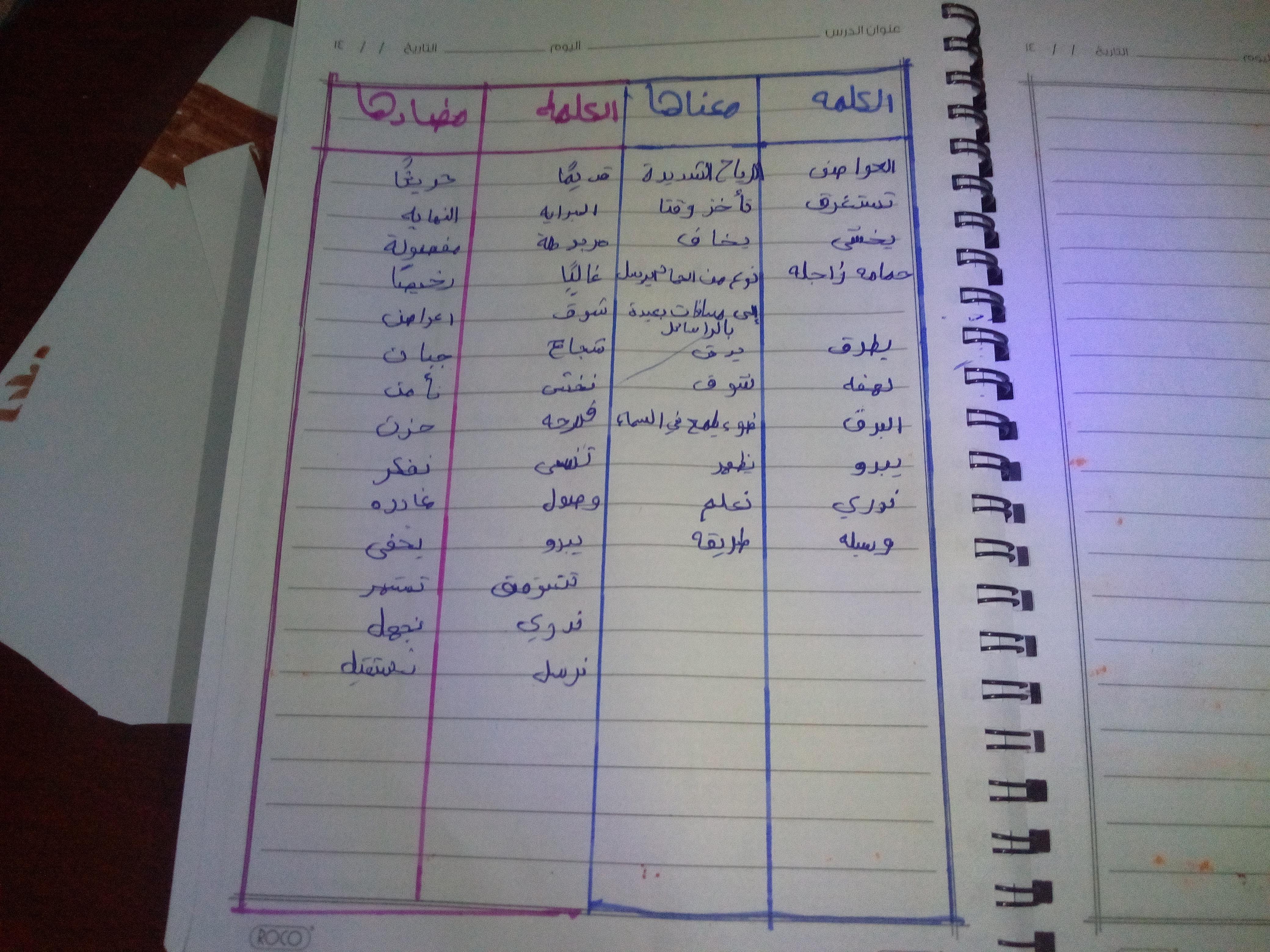 تم اليوم درس سر الحياة والواجب كتابة المعاني والمضاد ص 27