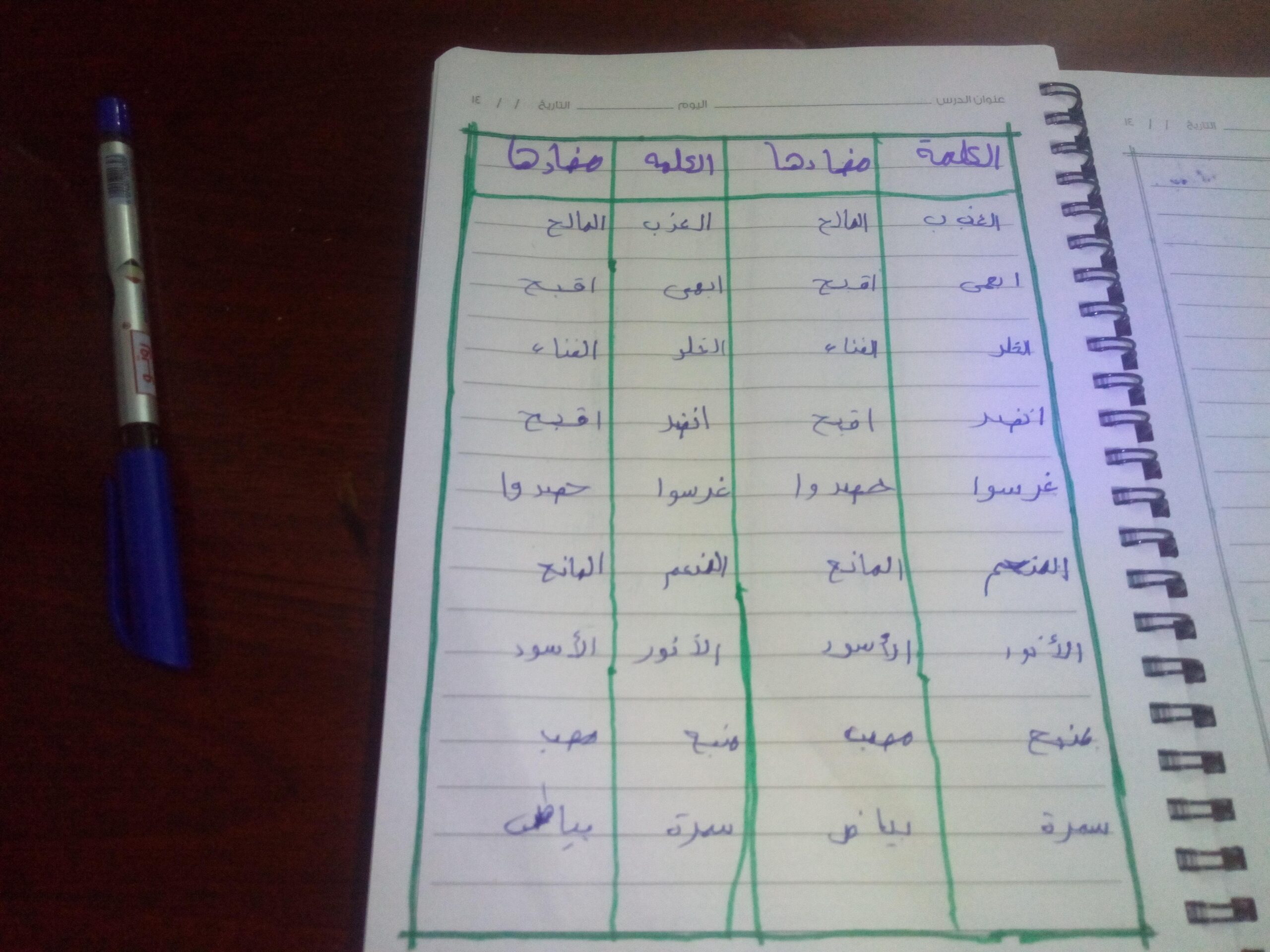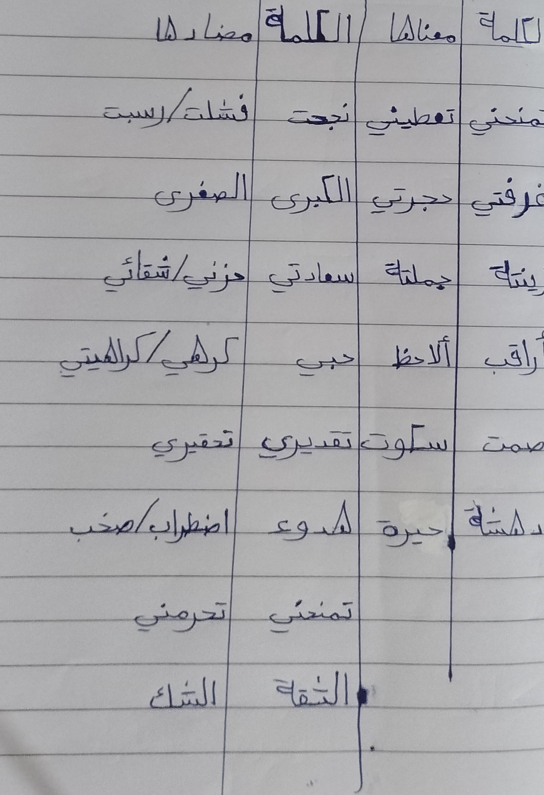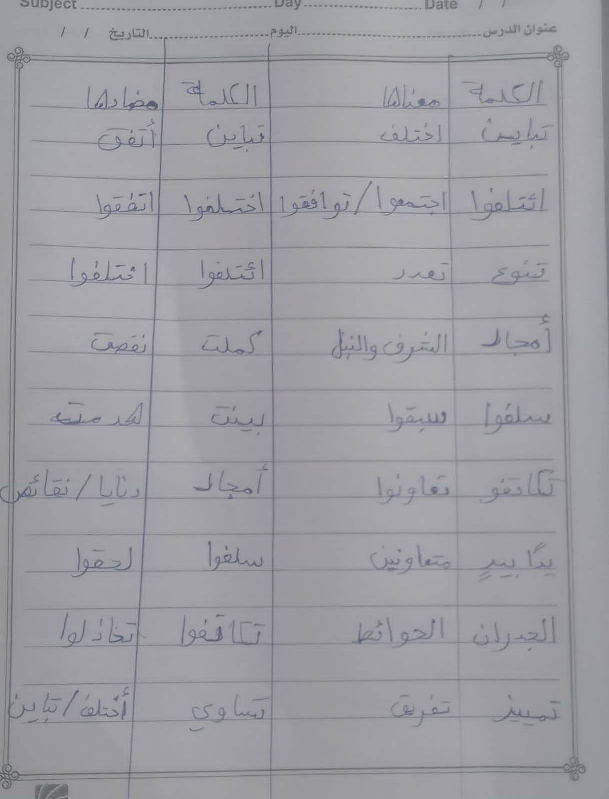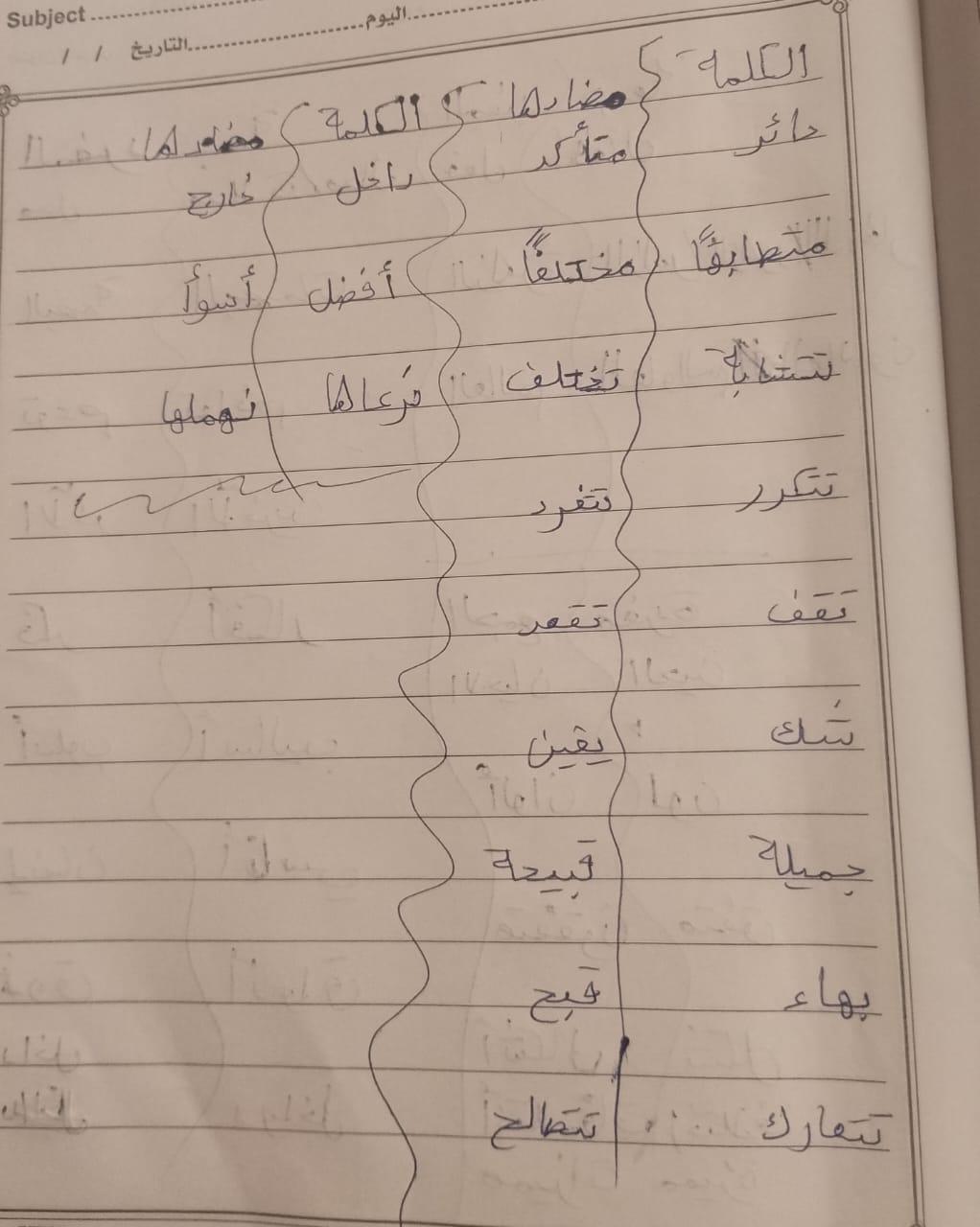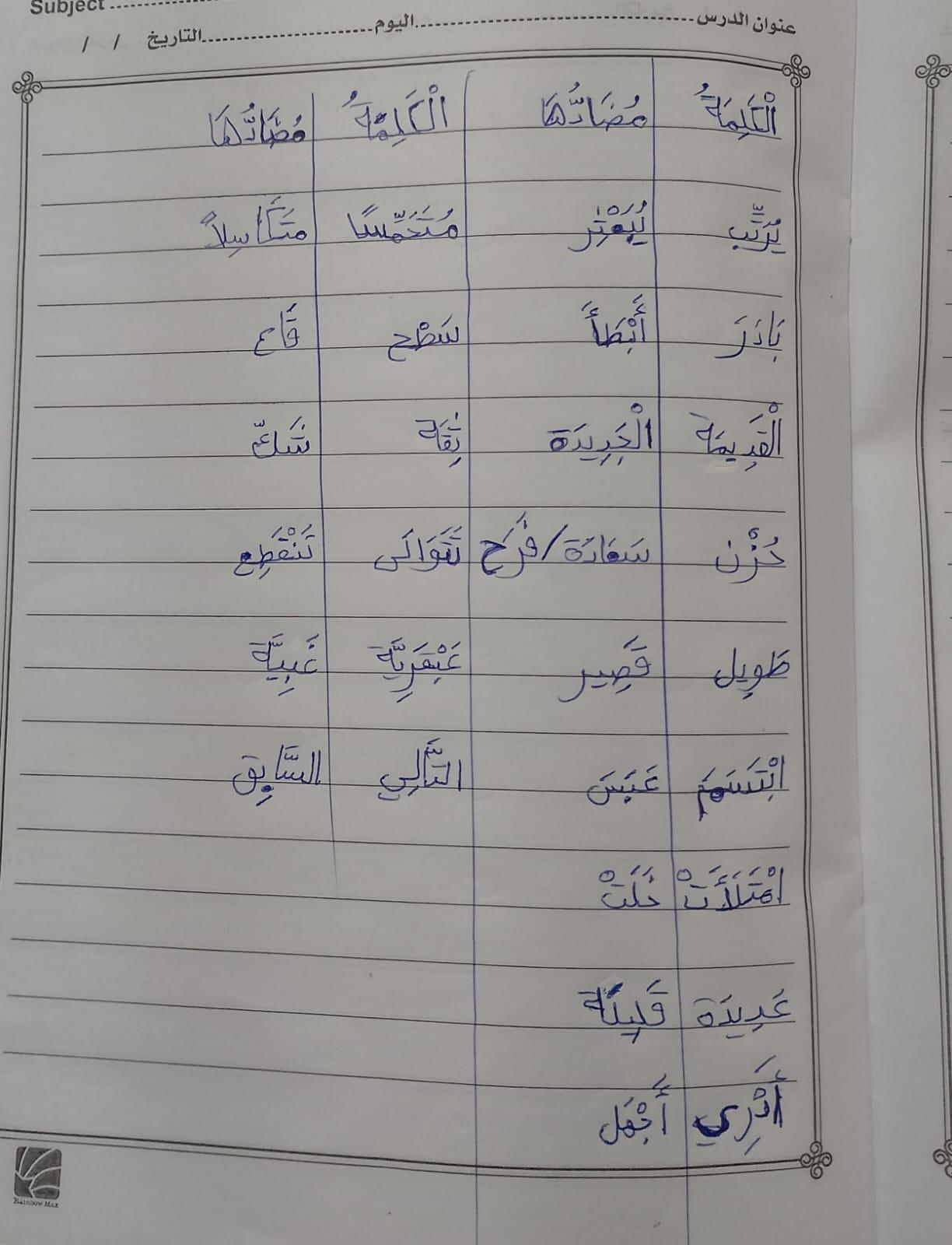 تم اليوم درس سر الحياة والواجب كتابة المعاني والمضاد ص 27