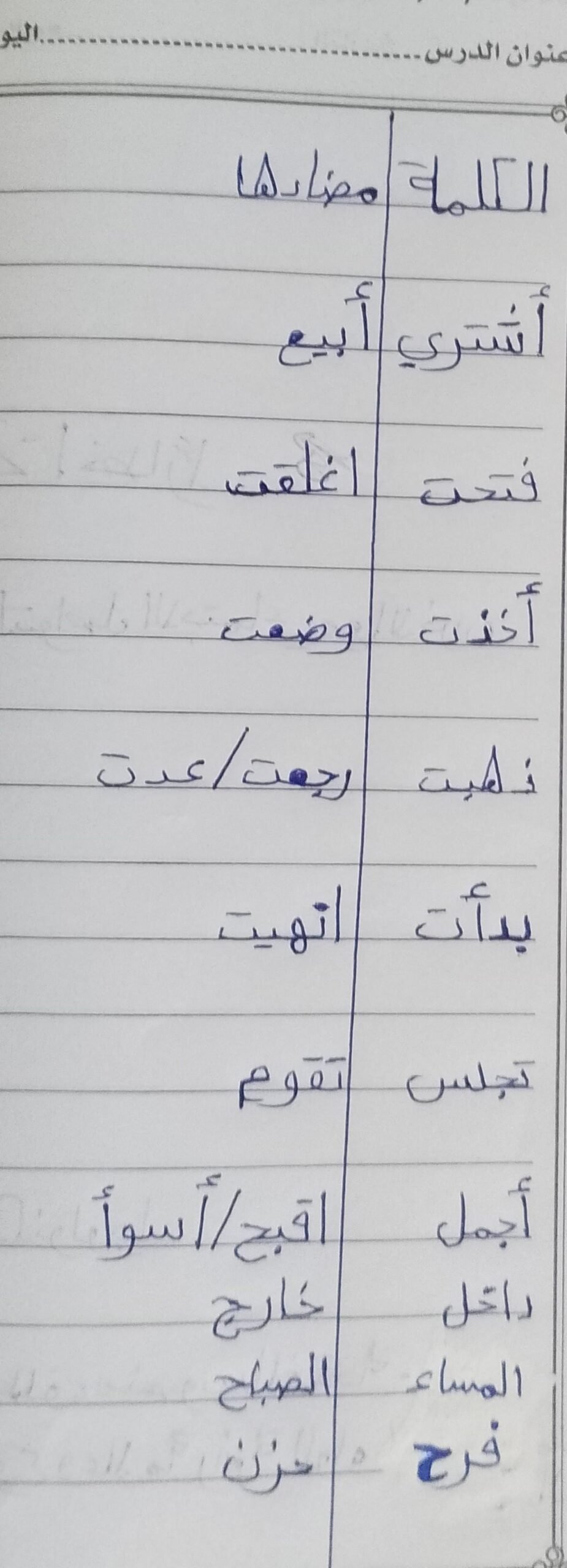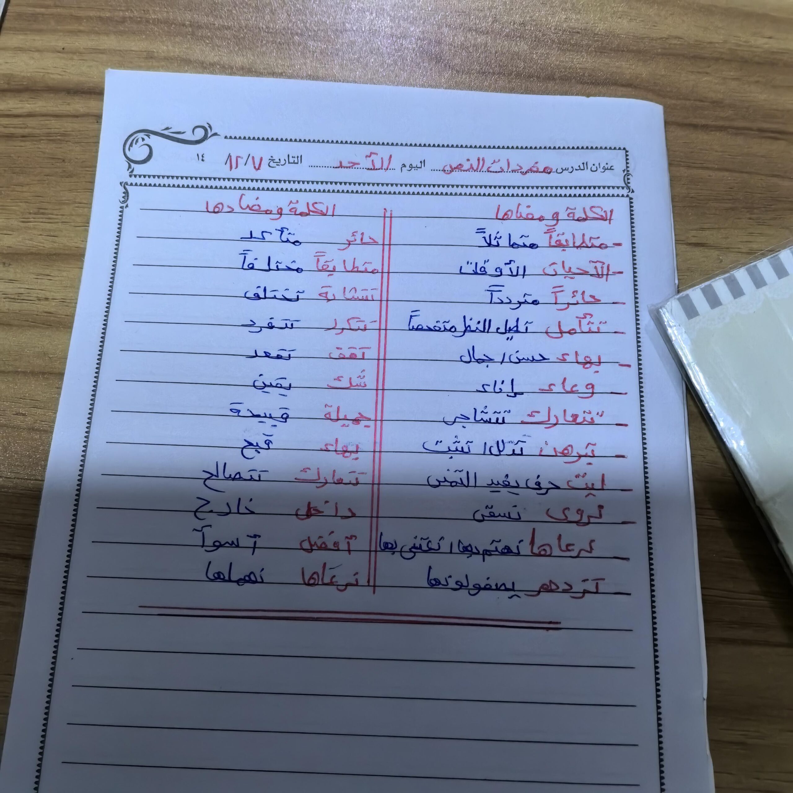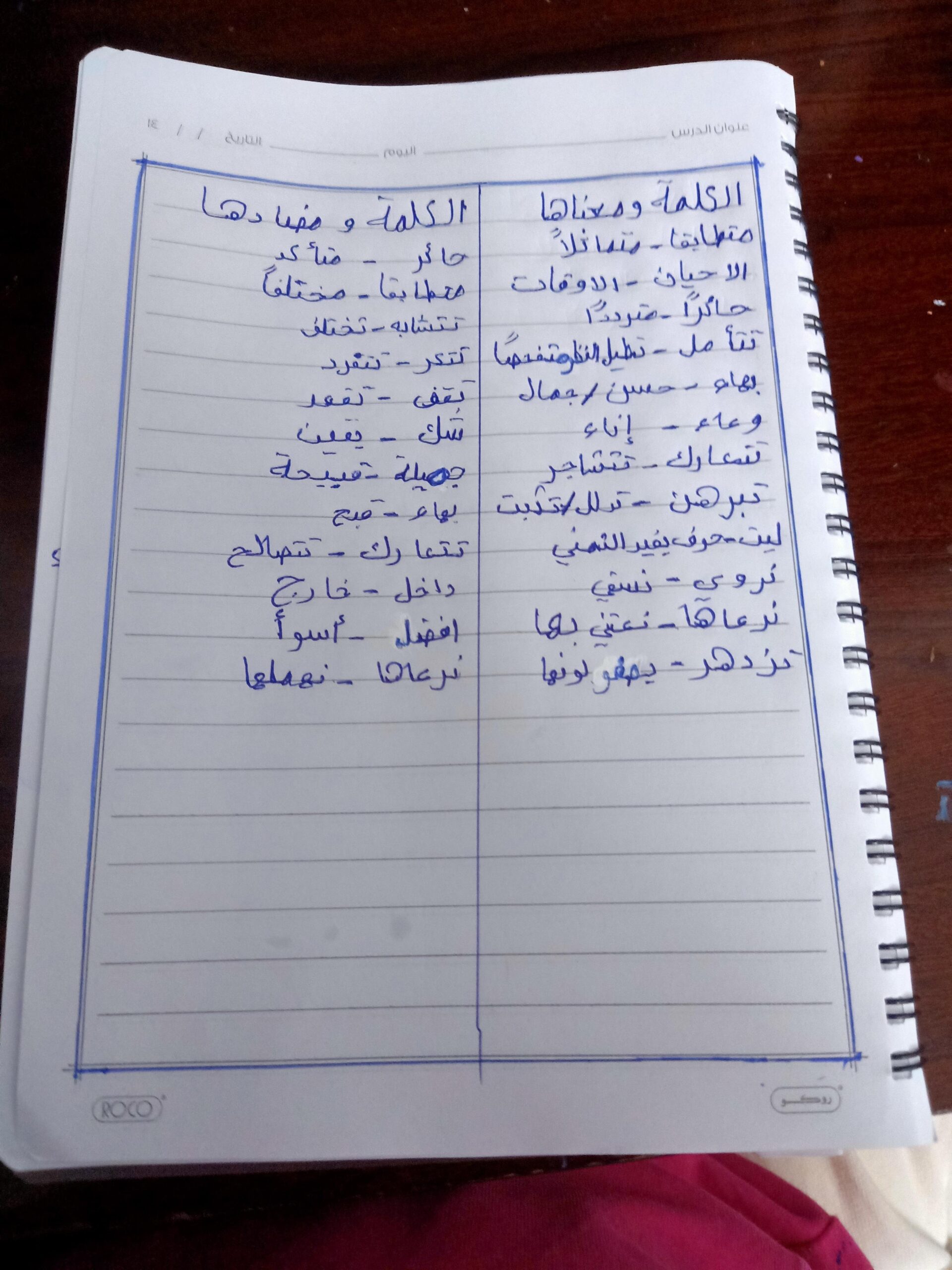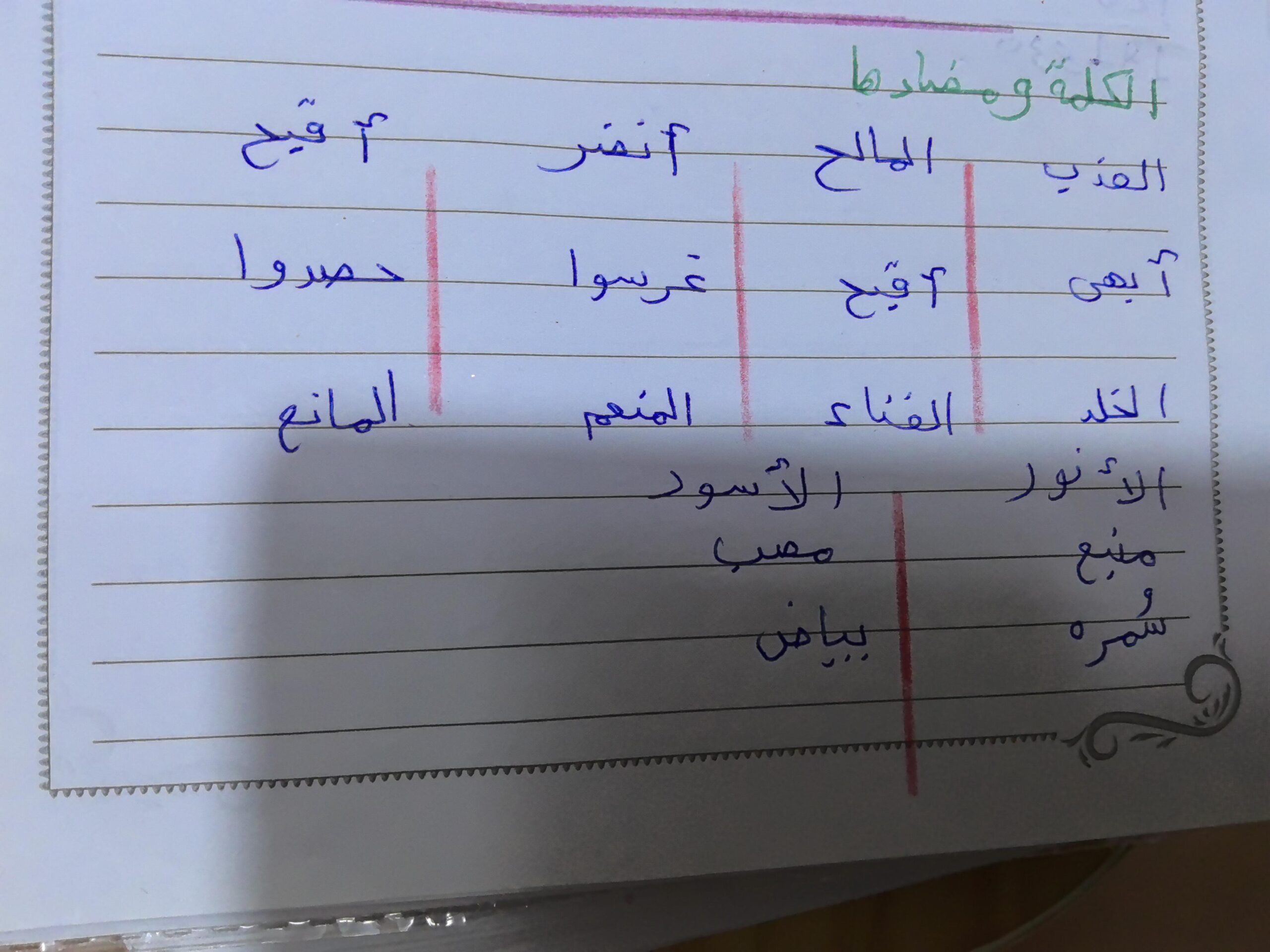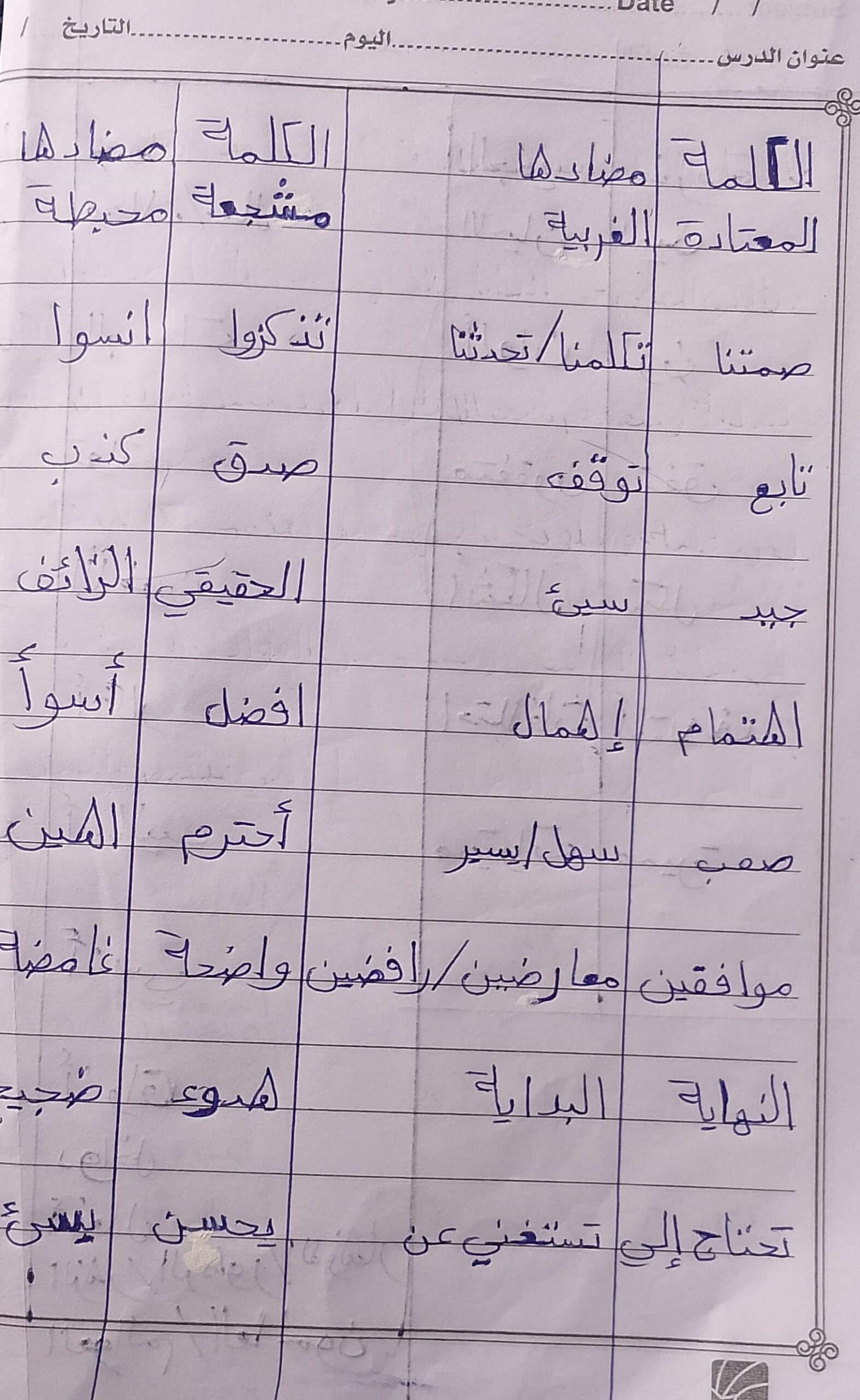 تم اليوم درس سر الحياة والواجب كتابة المعاني والمضاد ص 27