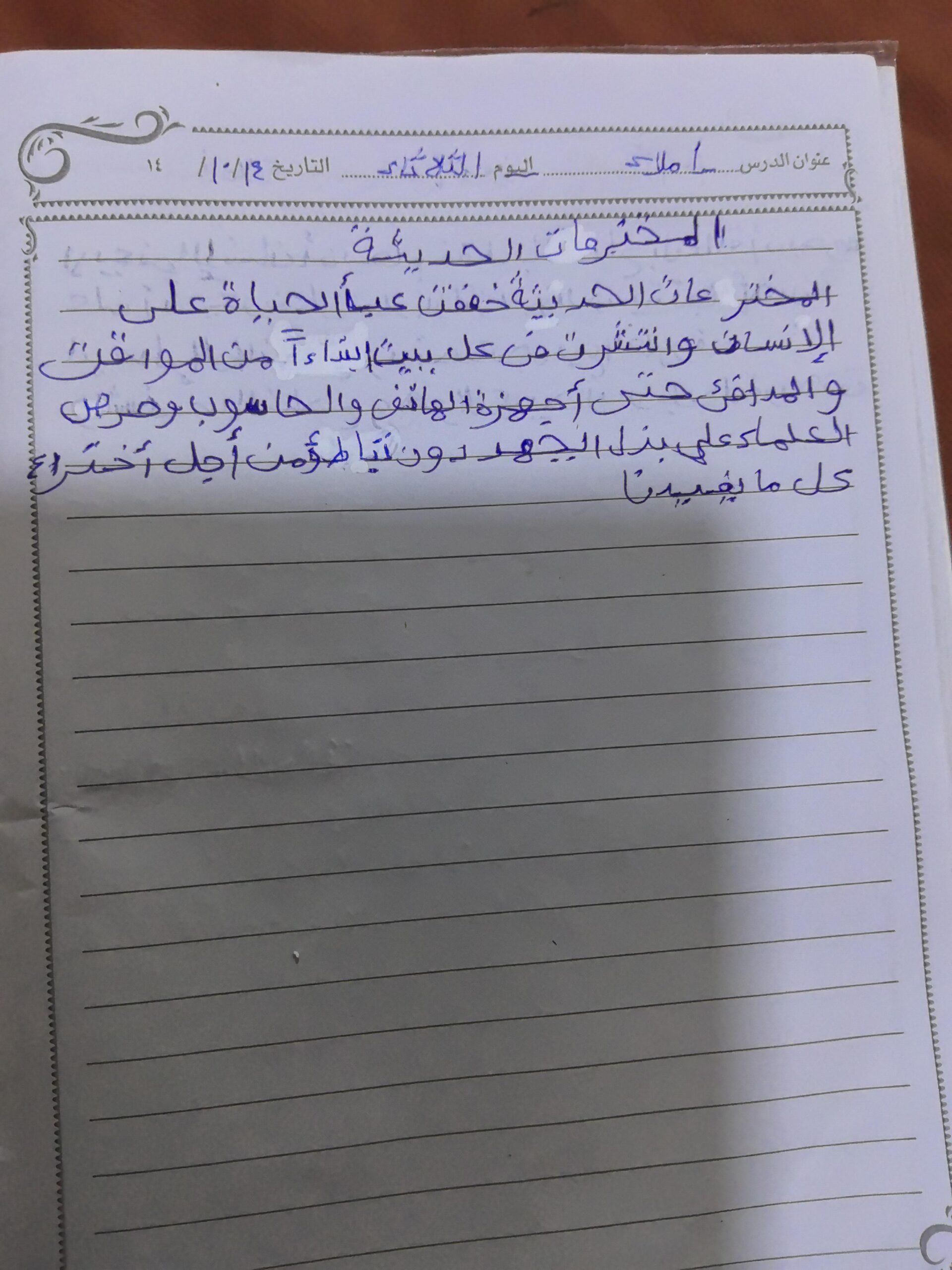 تم اليوم تطبيقات على كتابة لوحة إلاشادية حل تدريبات