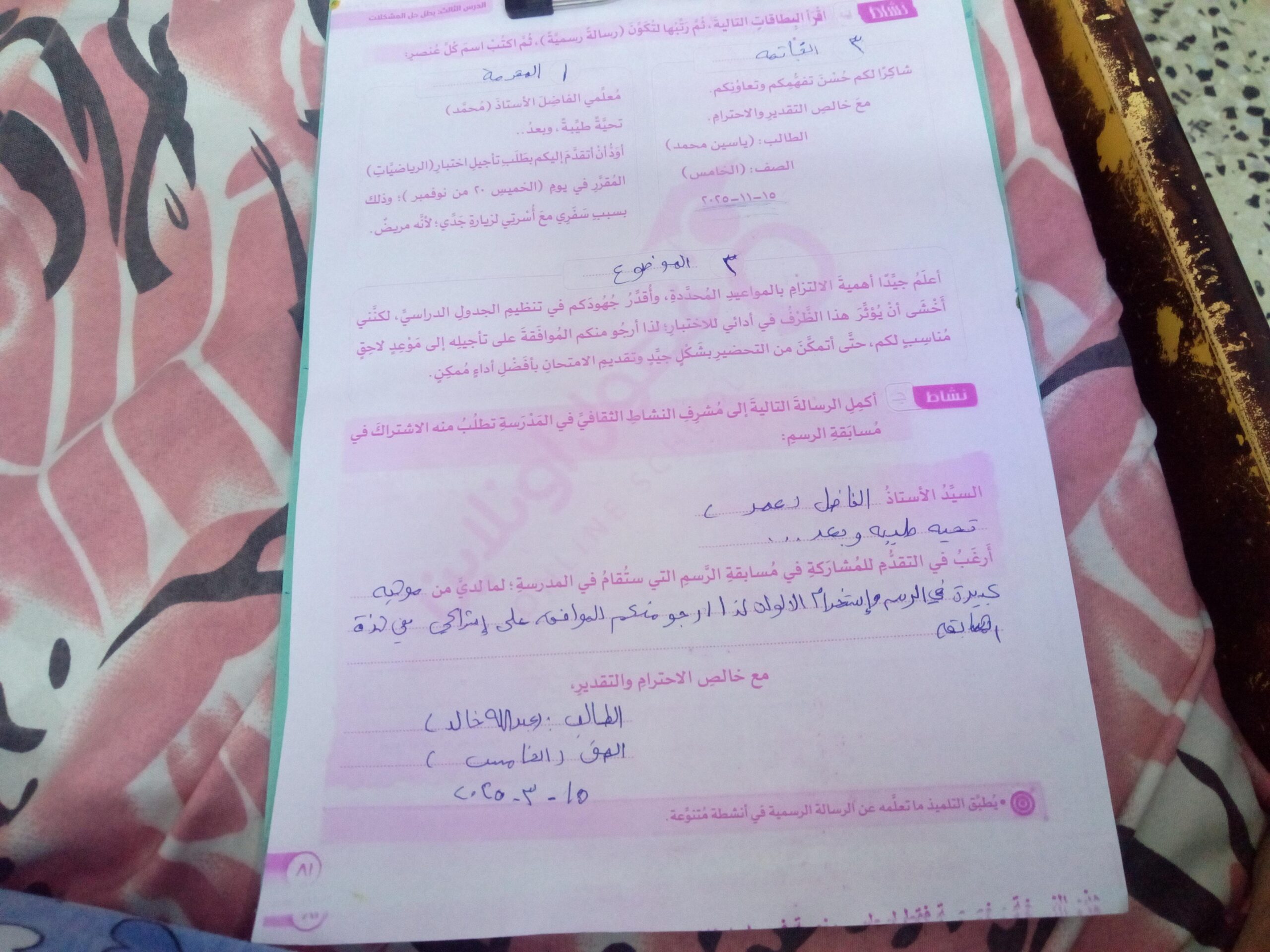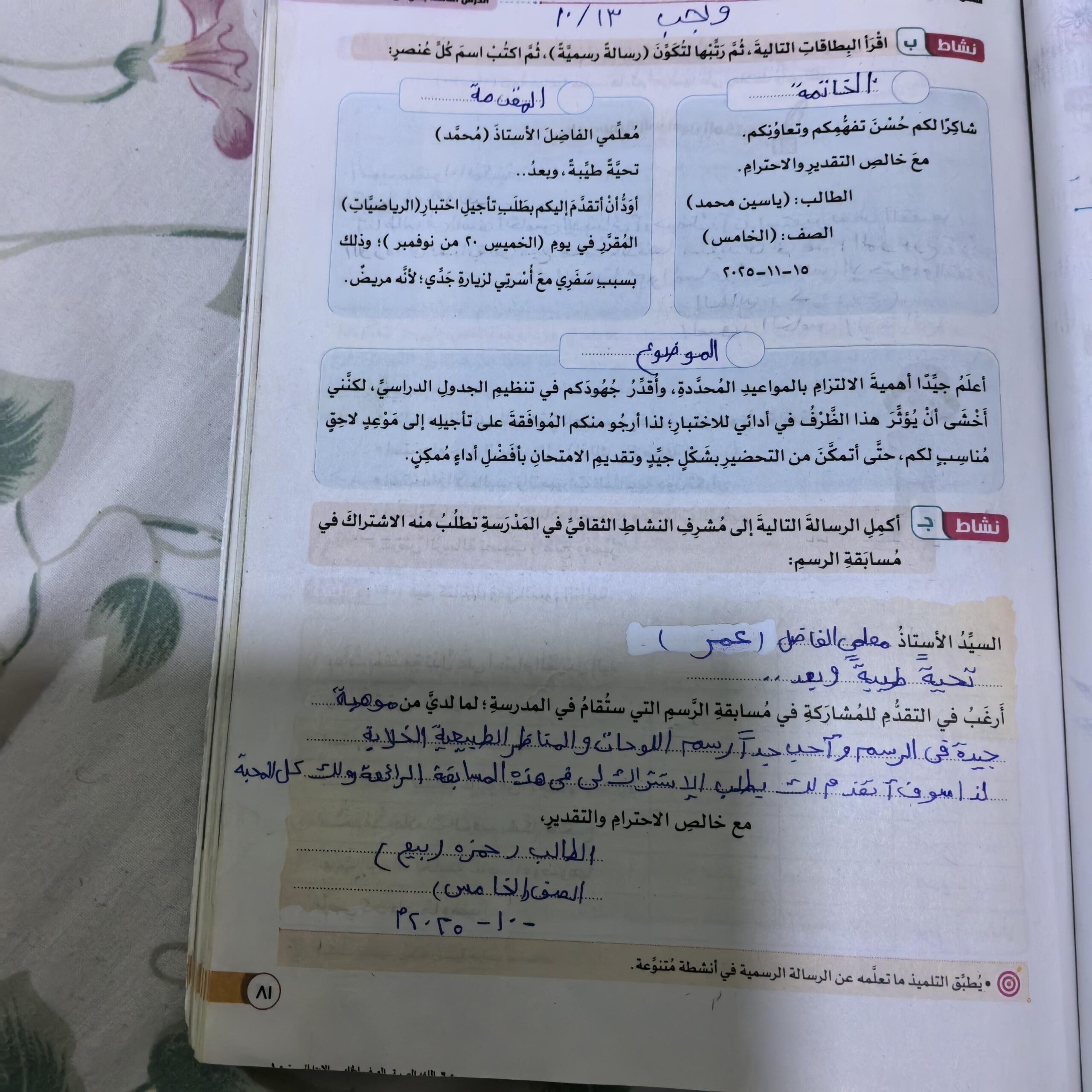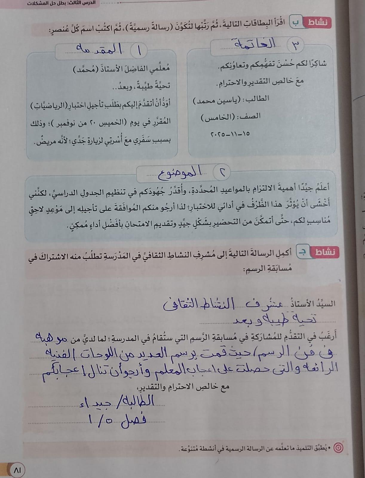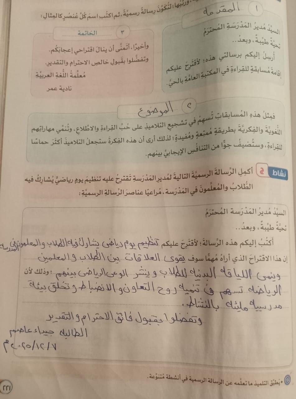 تم اليوم الكتابة الرسمية واجب ص 62