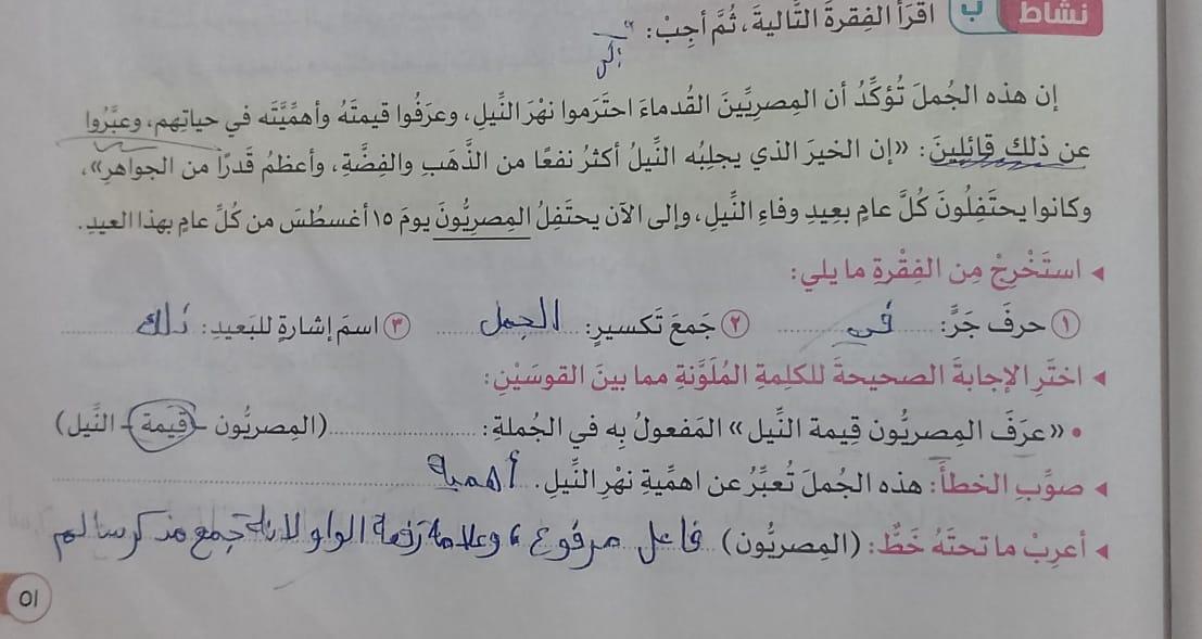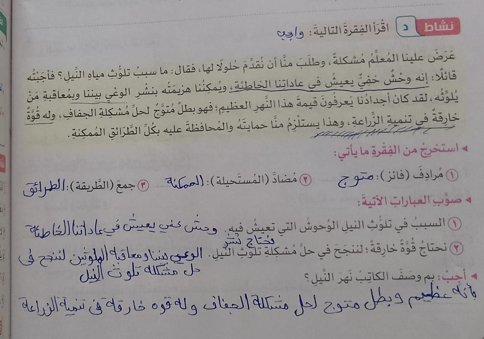 تم اليوم نهر النيل واجب ص 56 واملاء