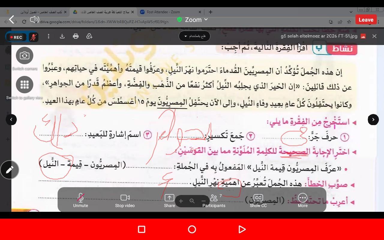 تم اليوم تدريبات على درس نهر النيل