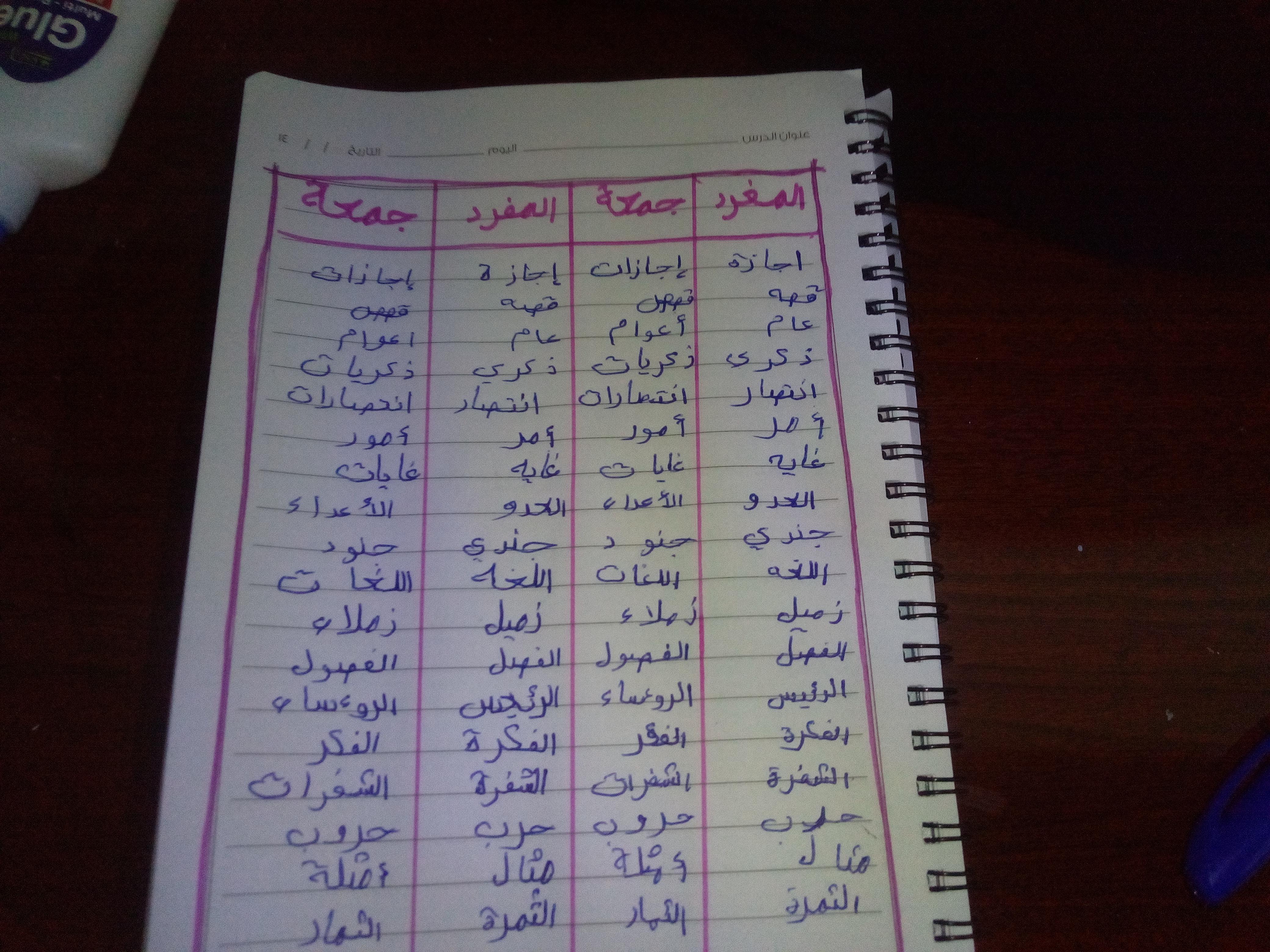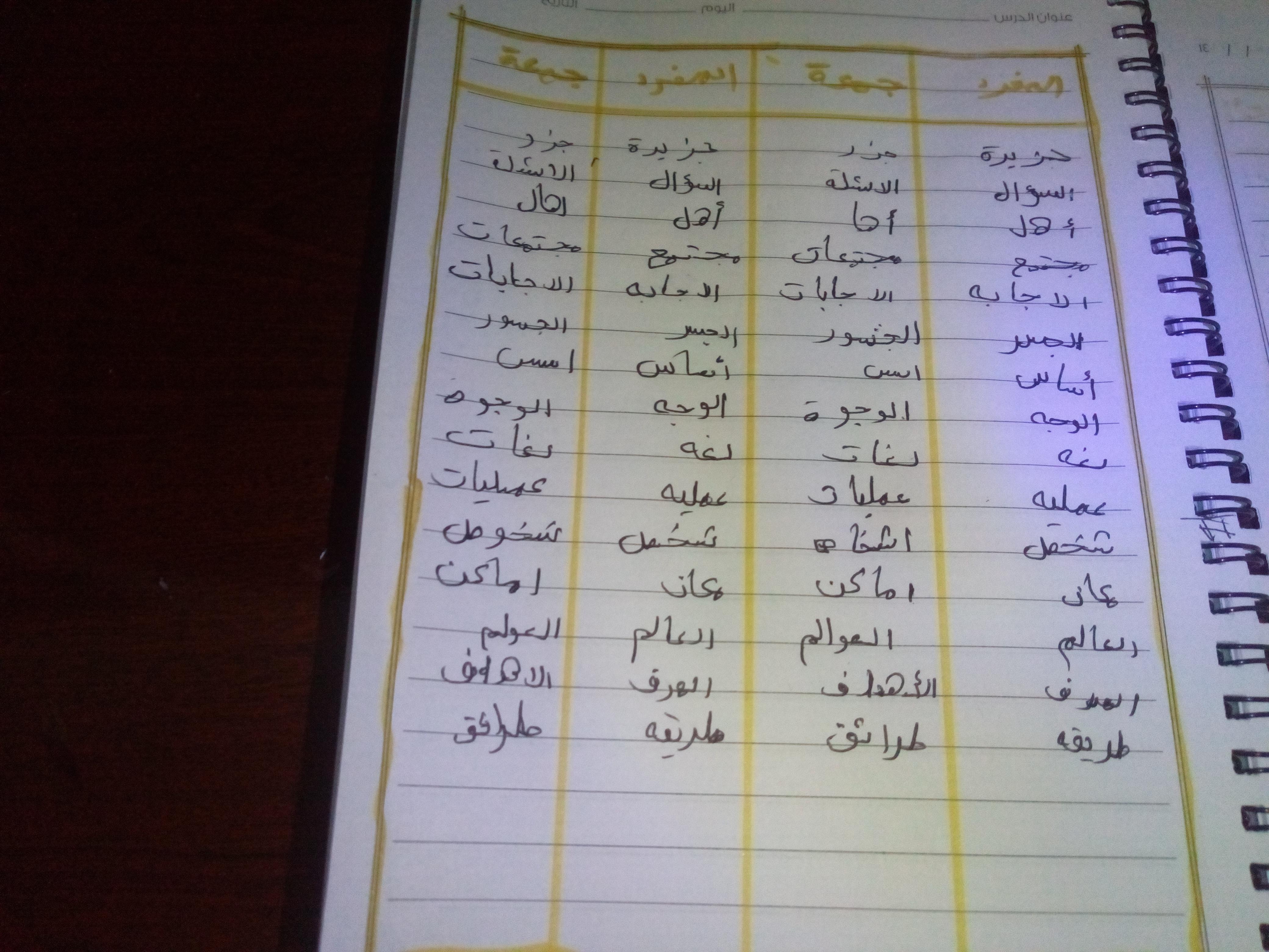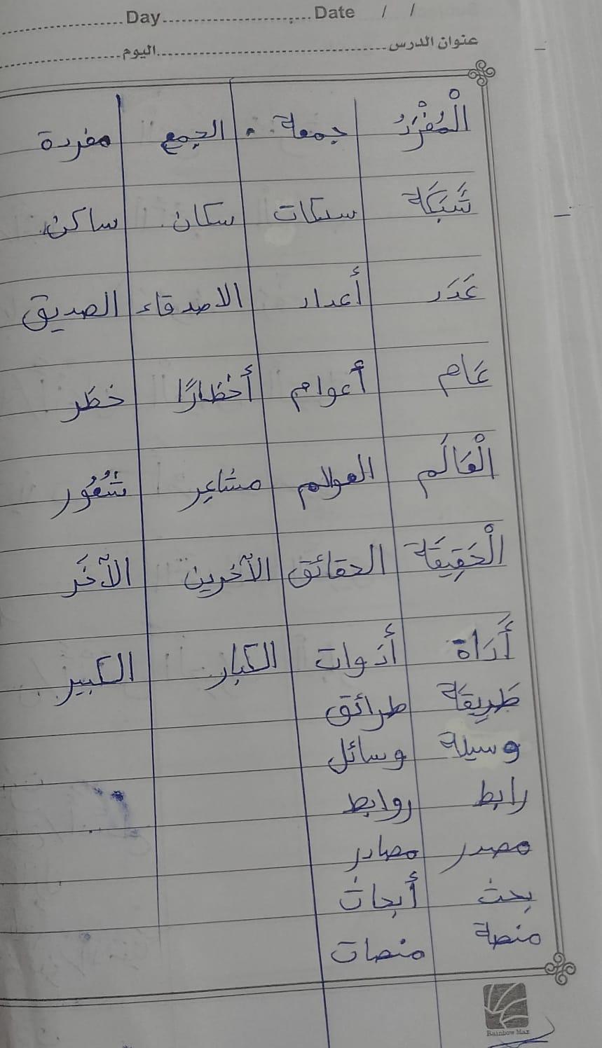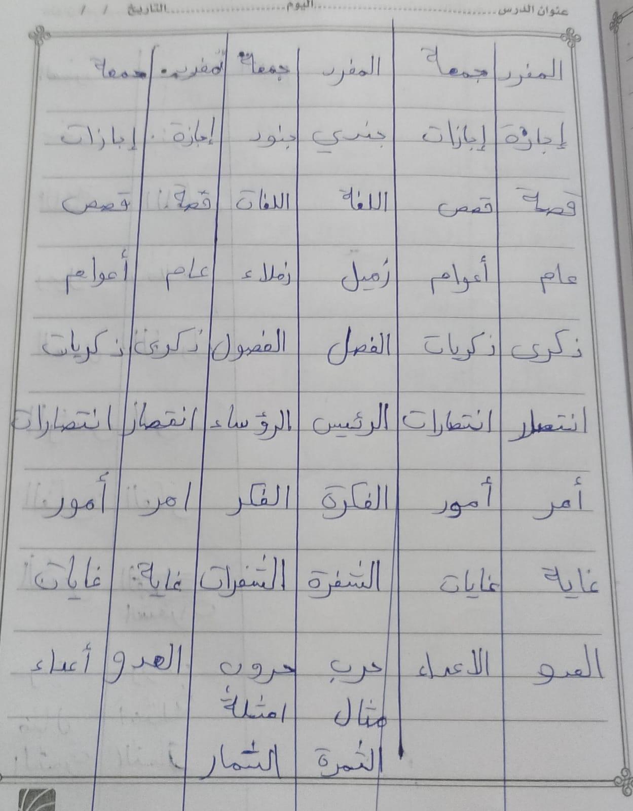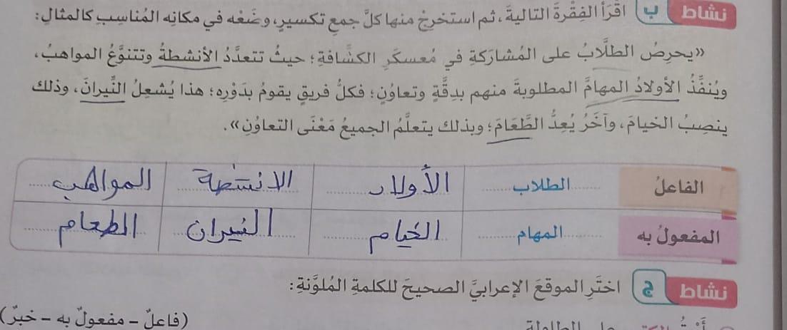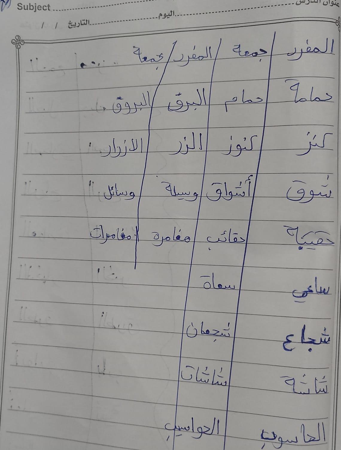 تم اليوم المفعول به جمع التكسير والمفرد واجب ص 75 نشاط ك