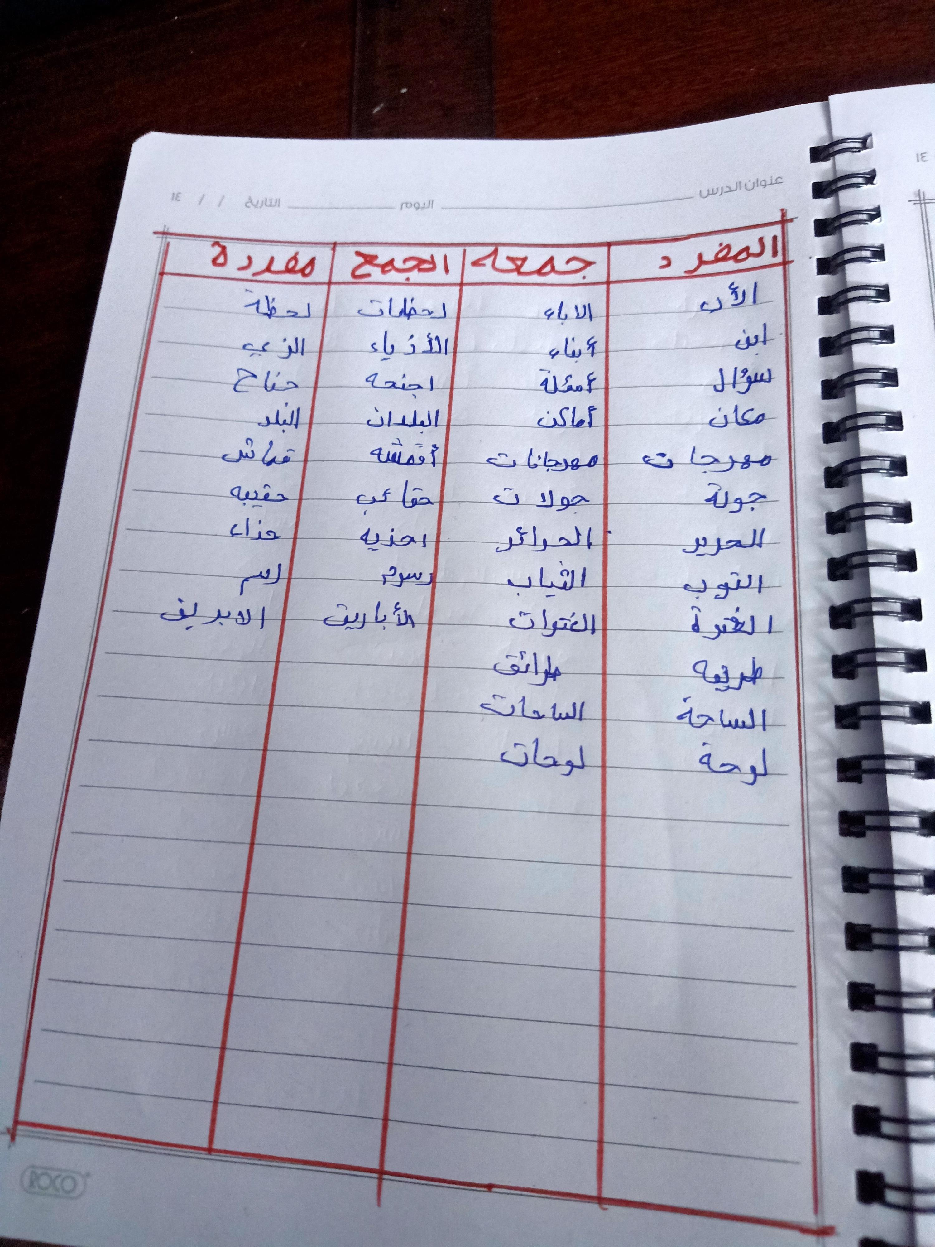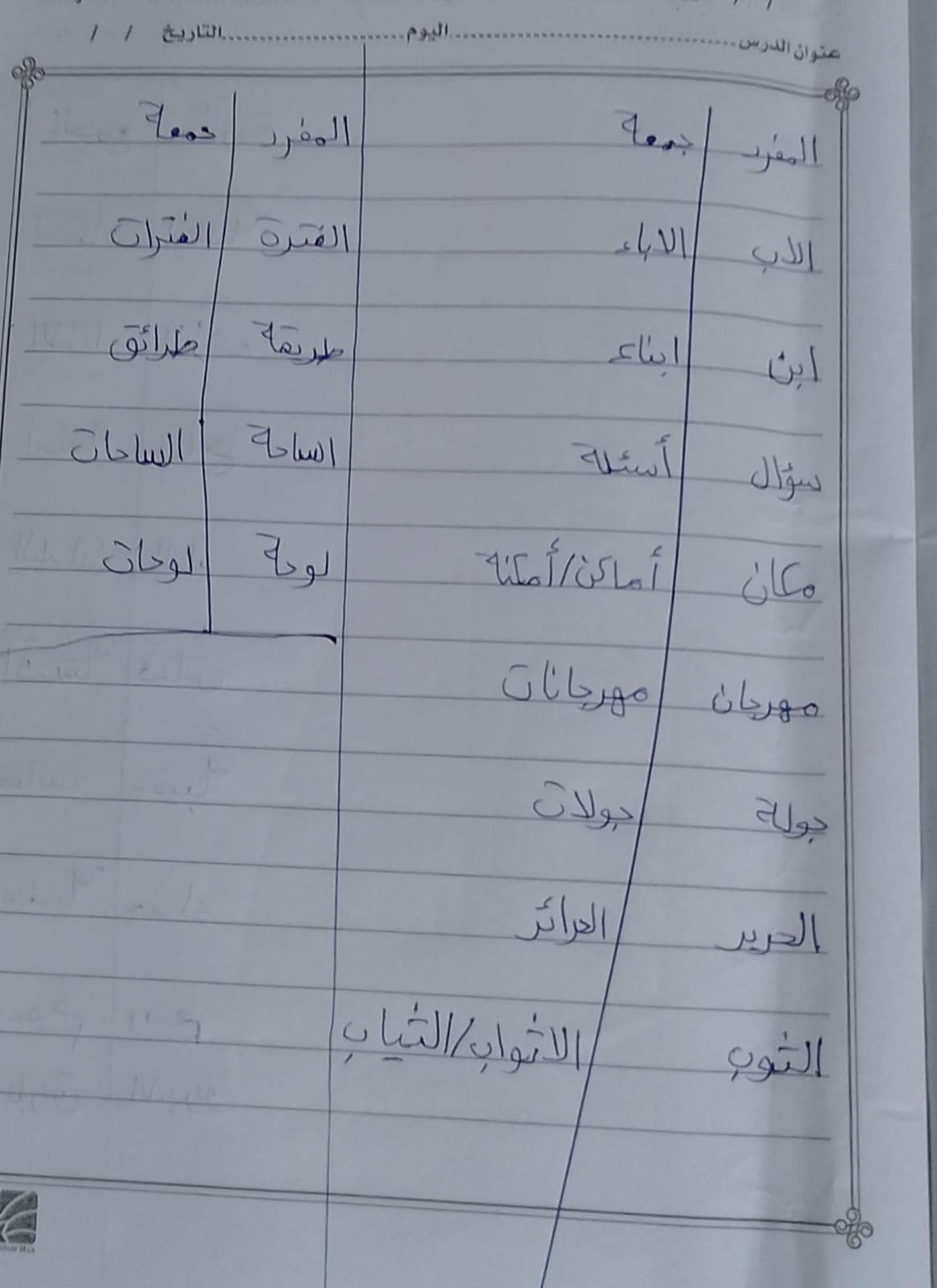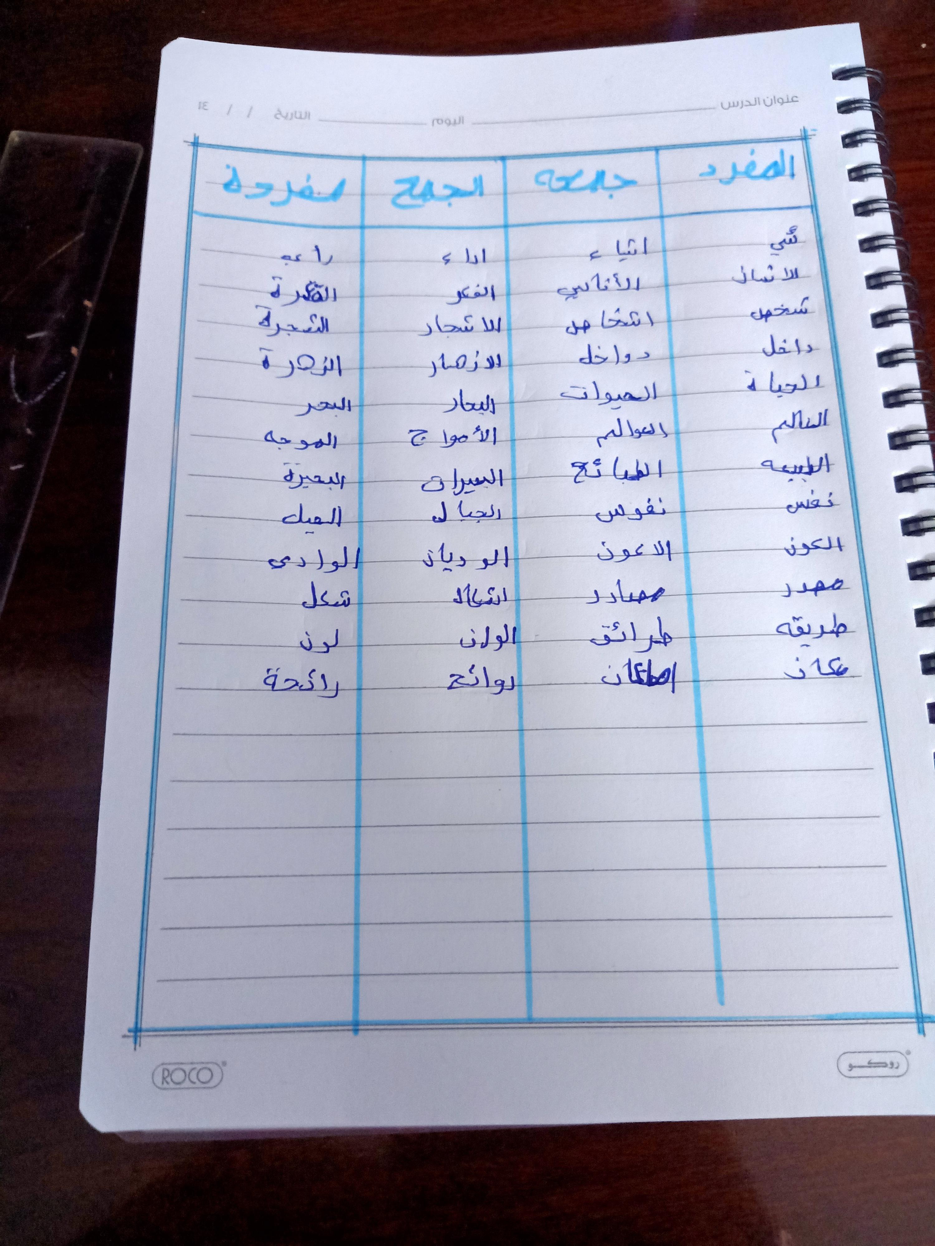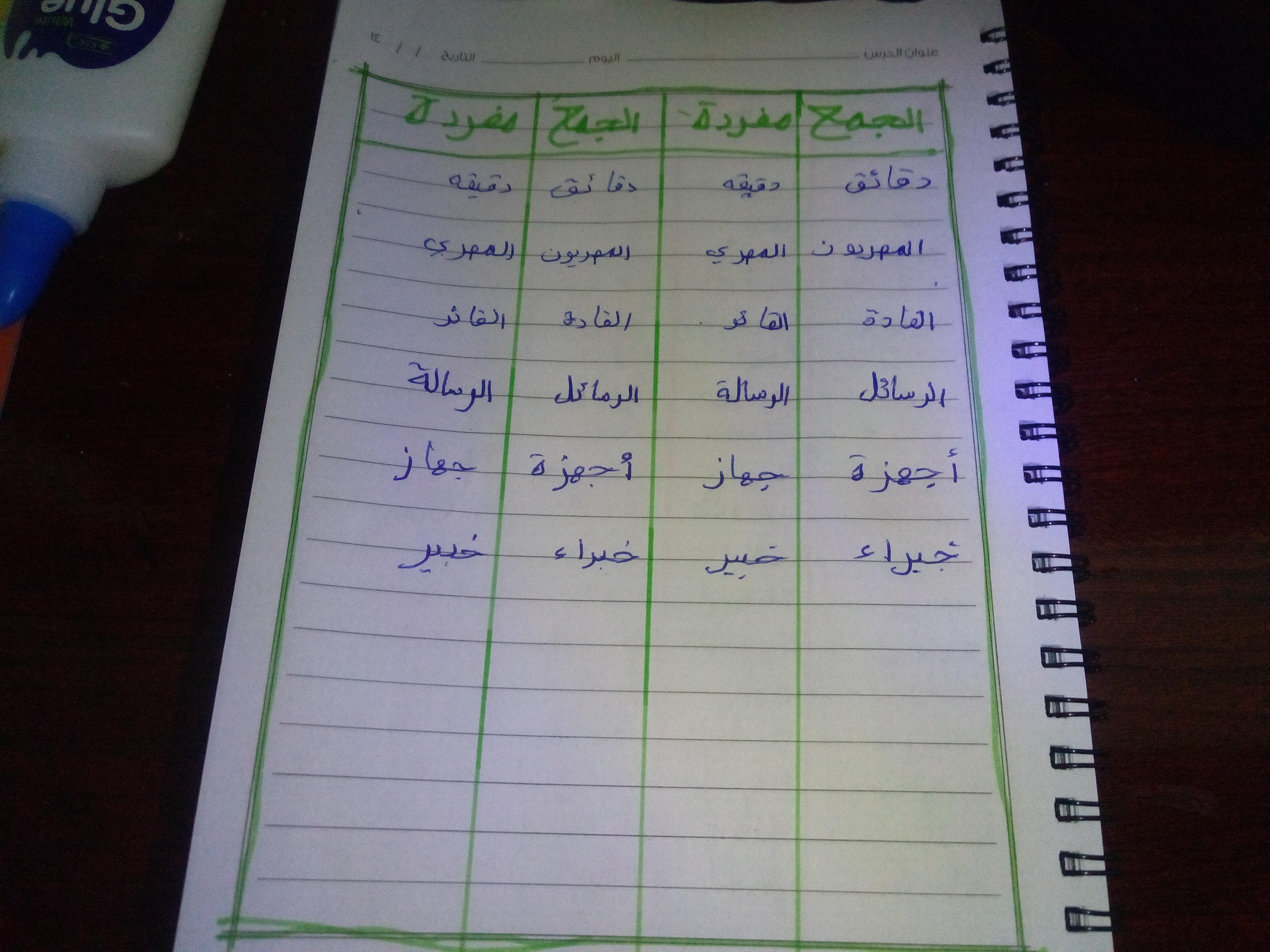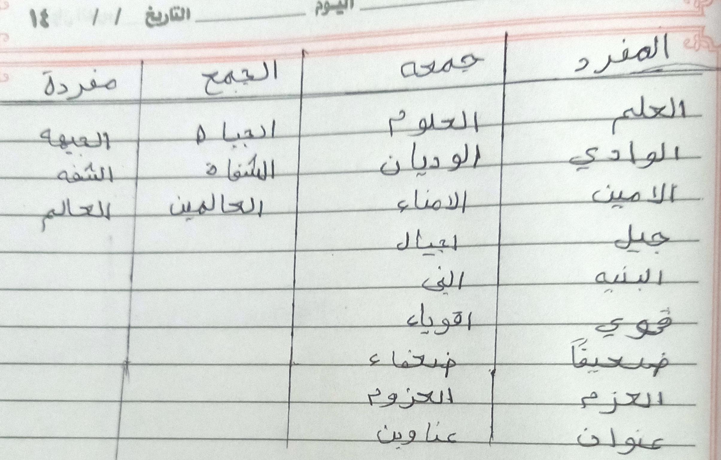 تم اليوم المفعول به جمع التكسير والمفرد واجب ص 75 نشاط ك