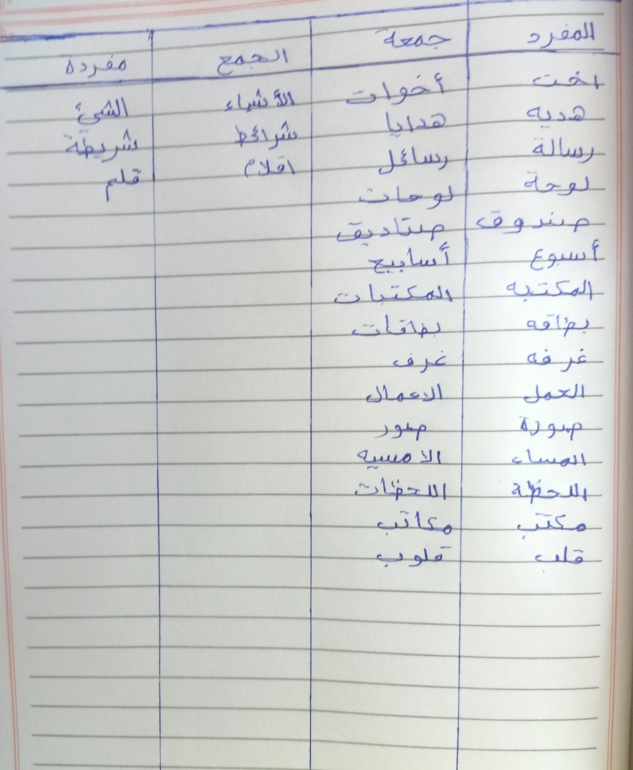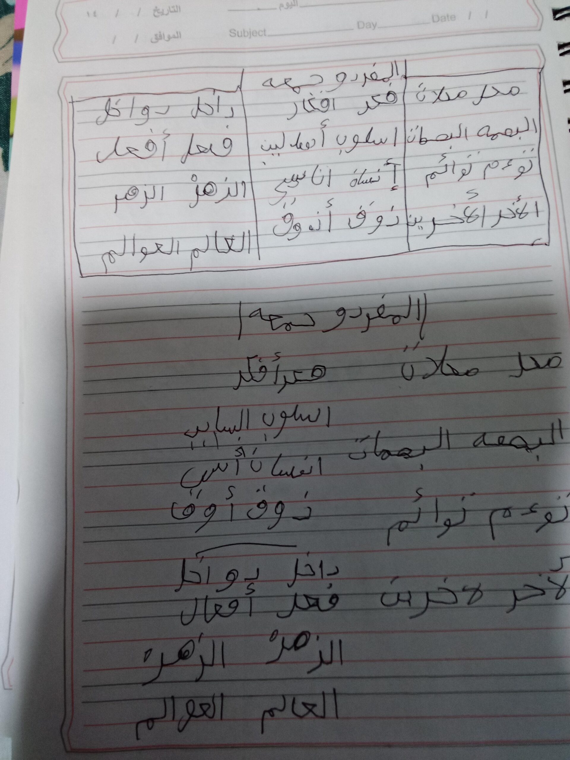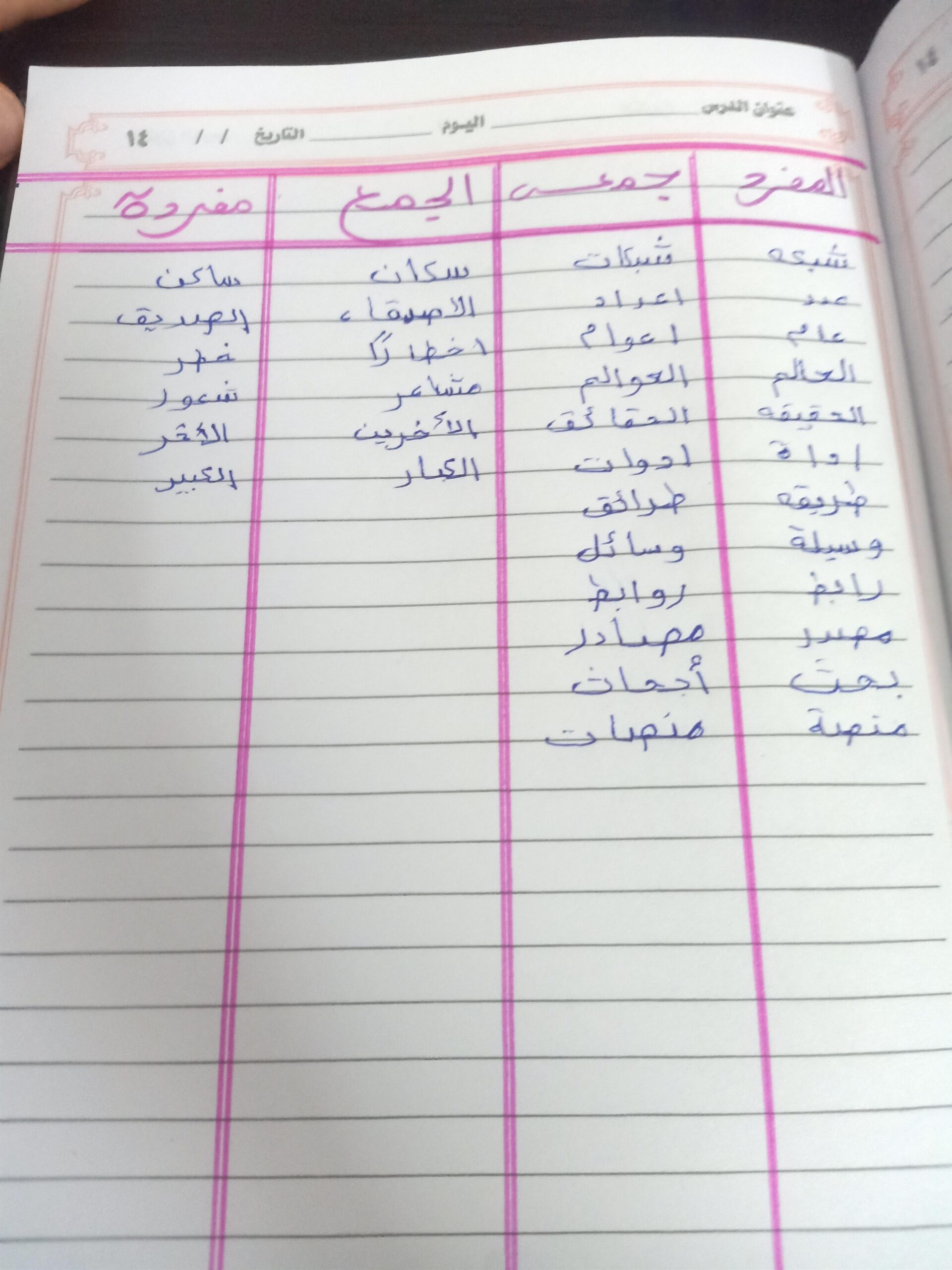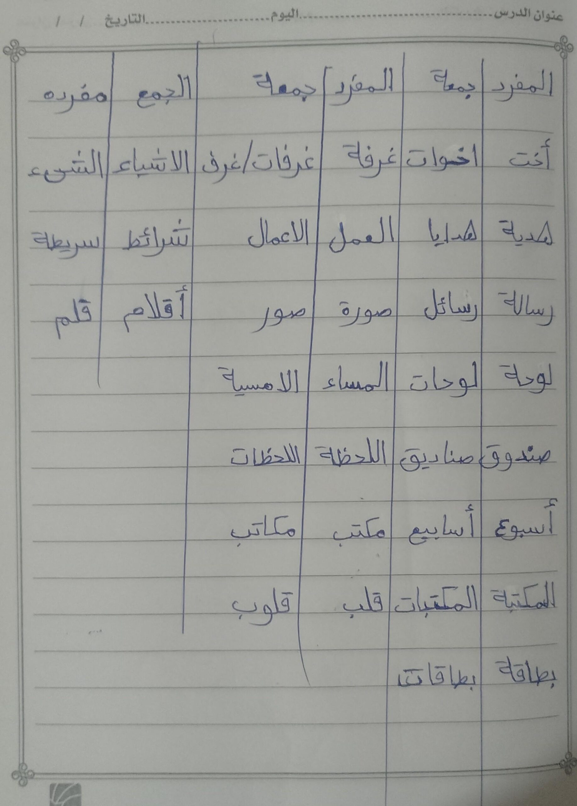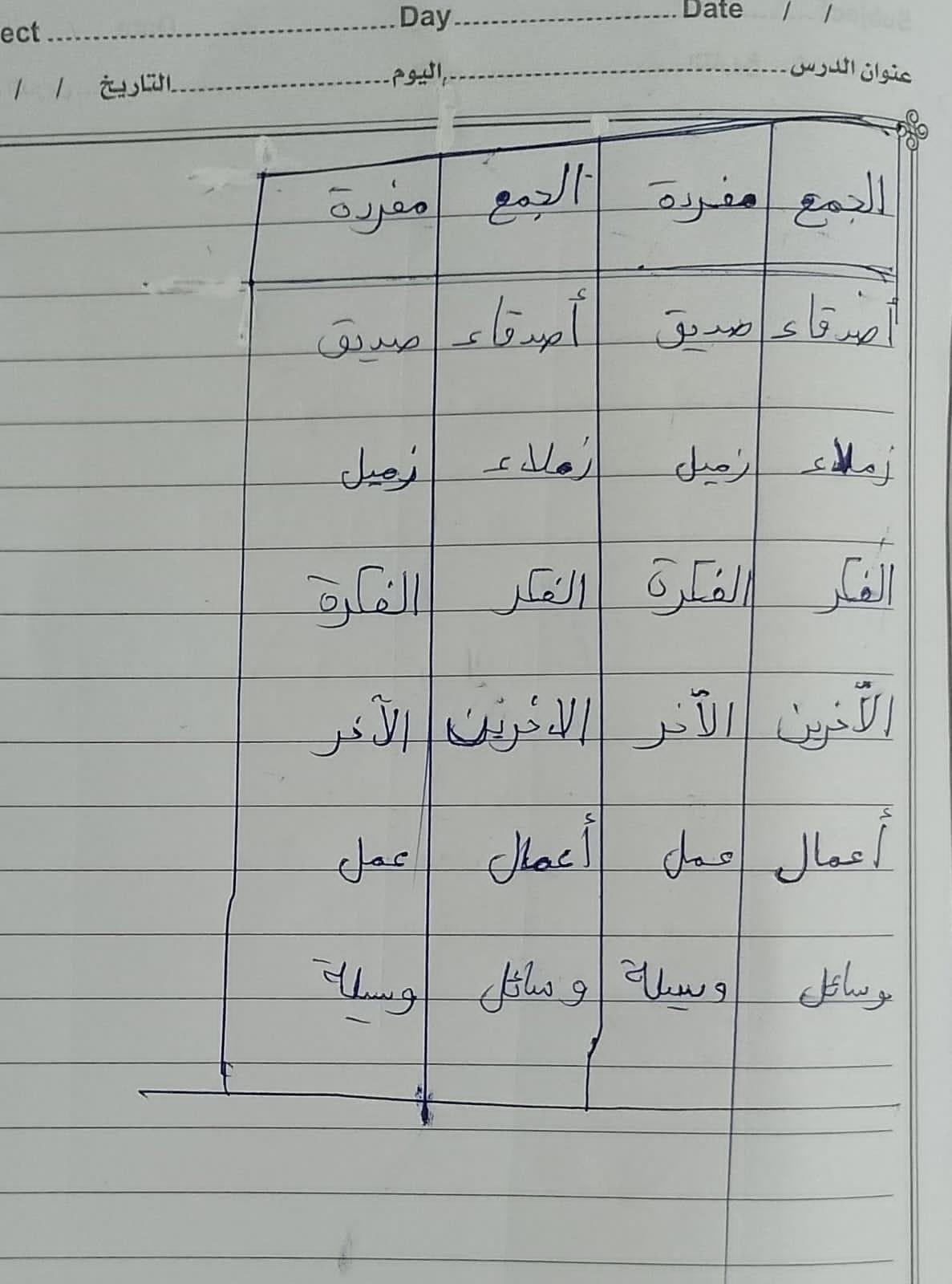 تم اليوم المفعول به جمع التكسير والمفرد واجب ص 75 نشاط ك