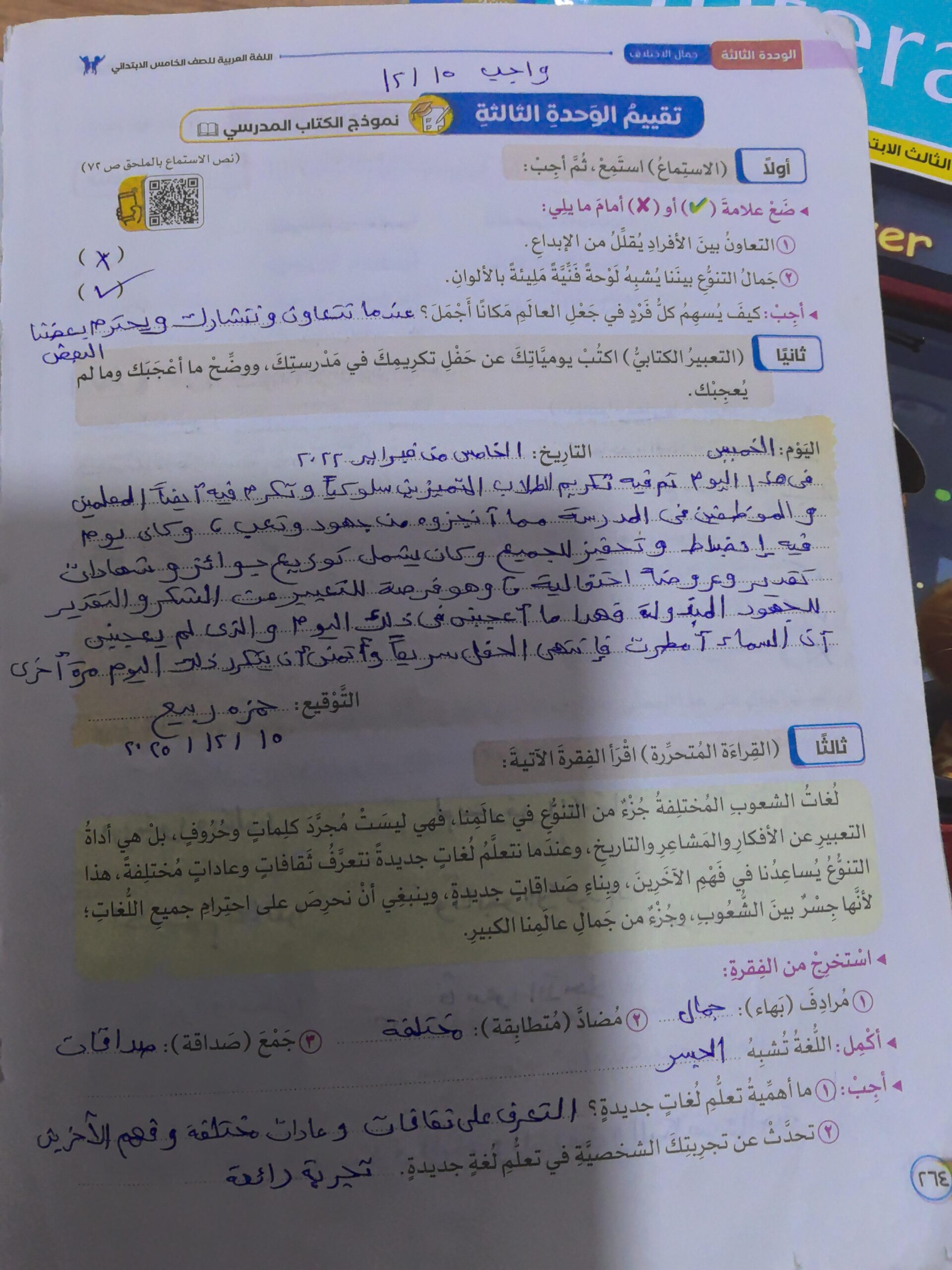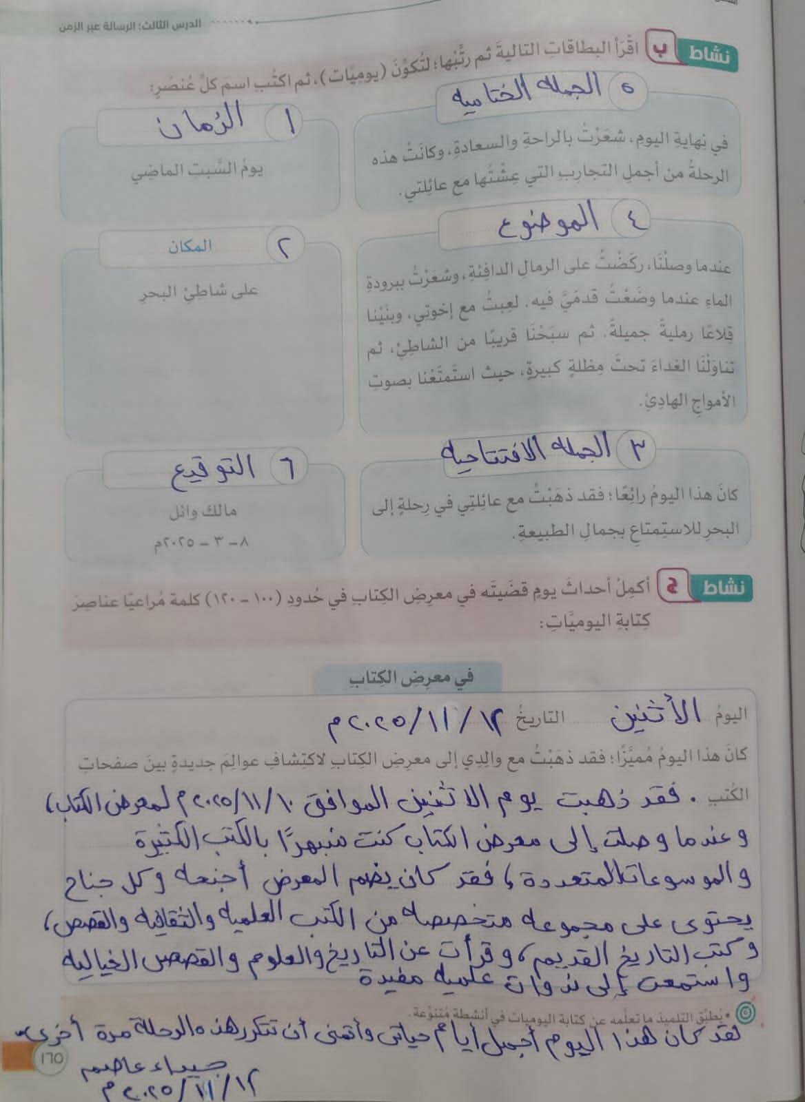 تم جمال التنوع وتطبيقات على كتابة اليوميات واجب ص 251