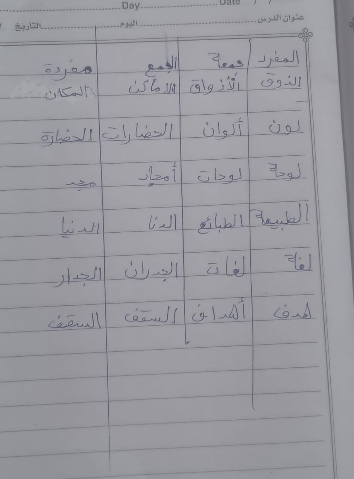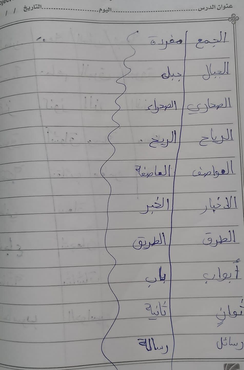تم اليوم تابع سطح ينير الحي واجب ص 21 مفرد زجمع