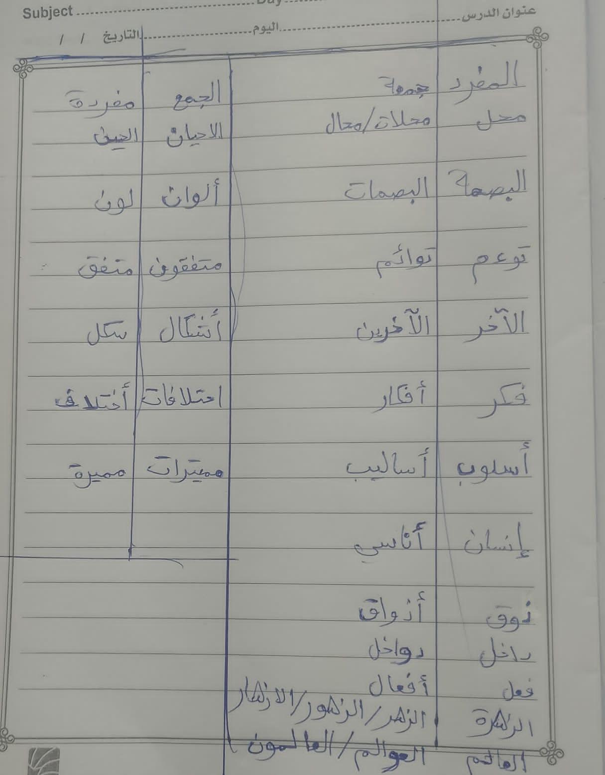 واجب العربيه 🫐