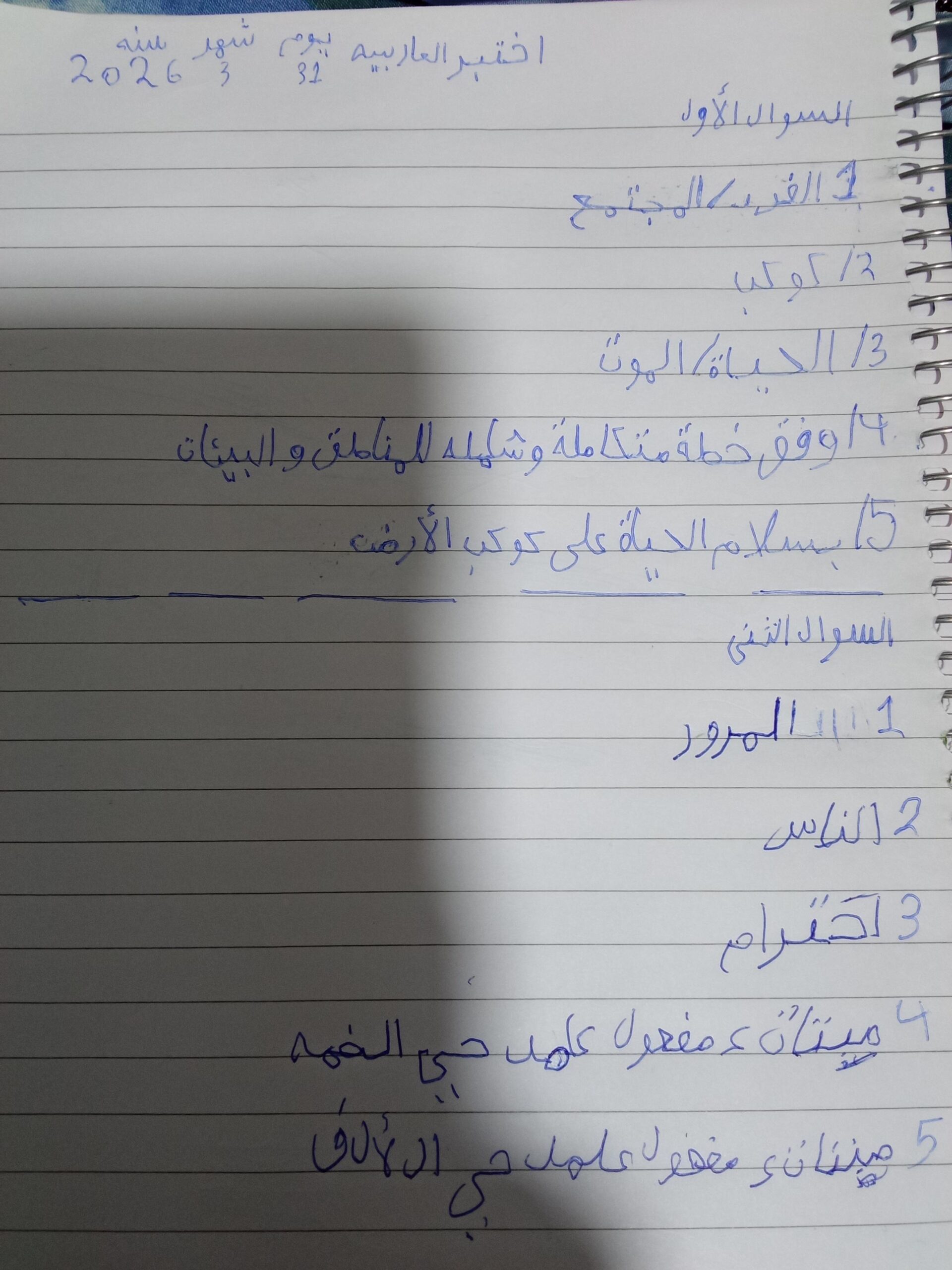 واجب العربيةشمس 🍉 💕 🪼 👊 💕