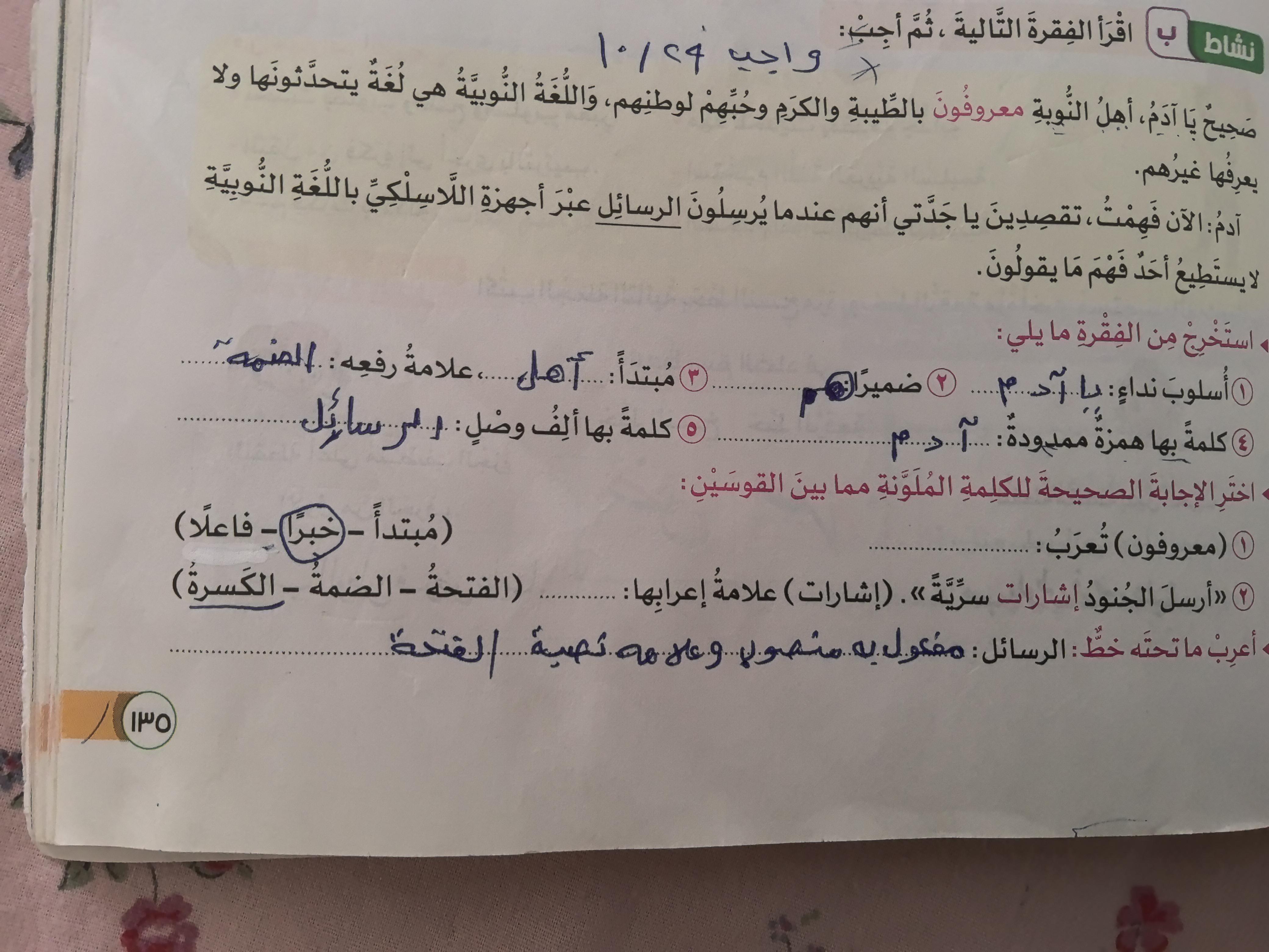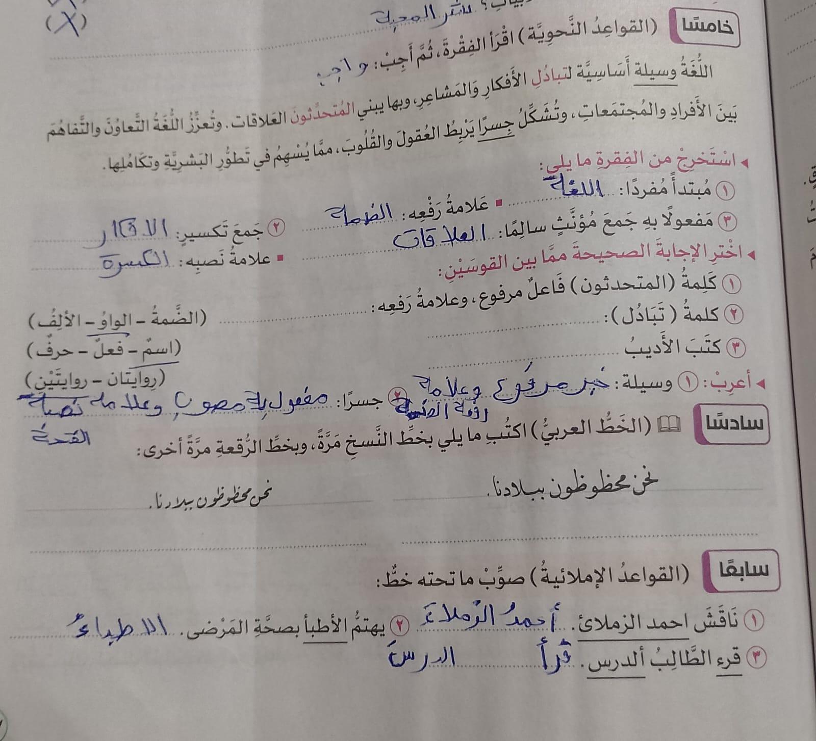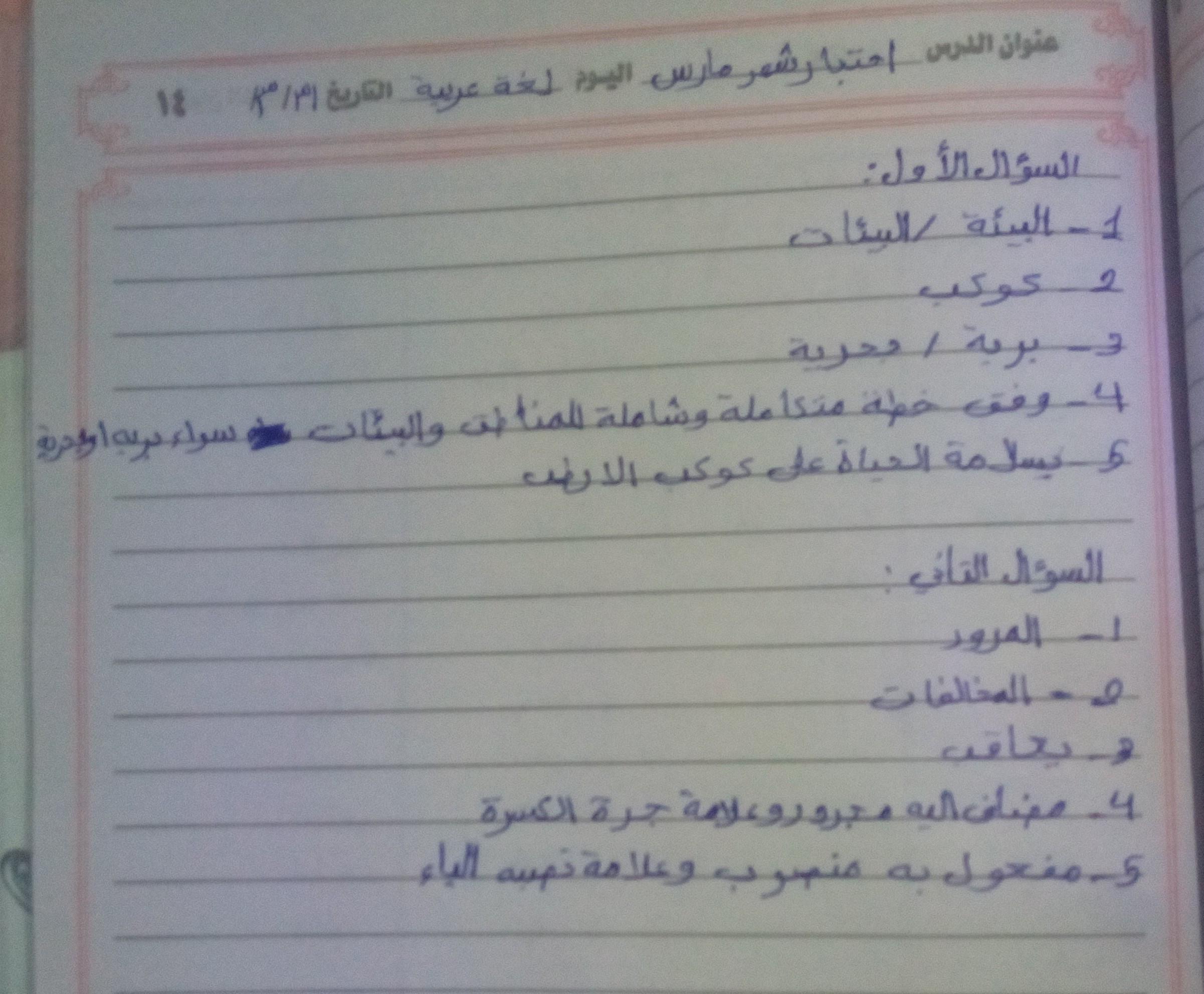 واجب اللغة العربية ❤️ ❤️