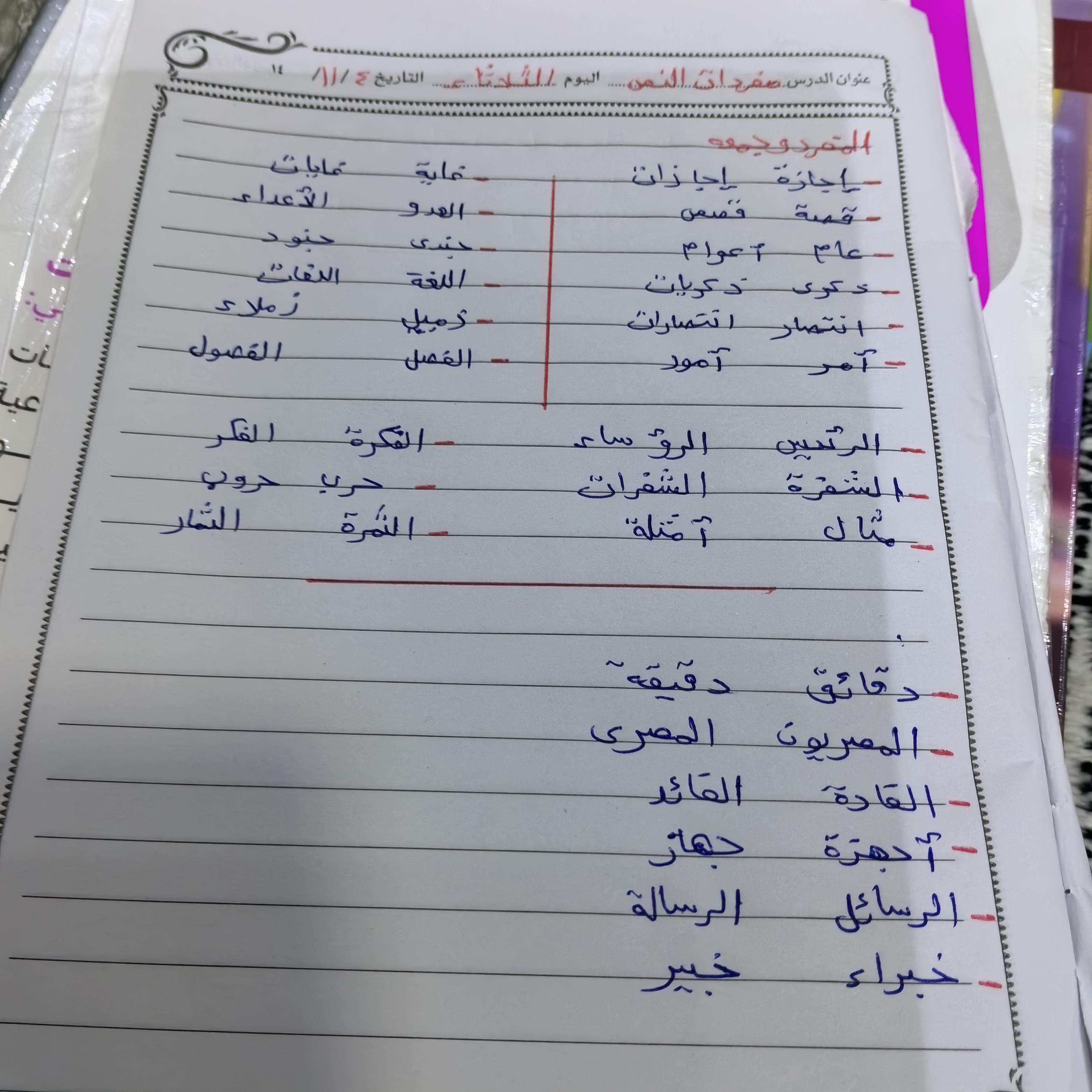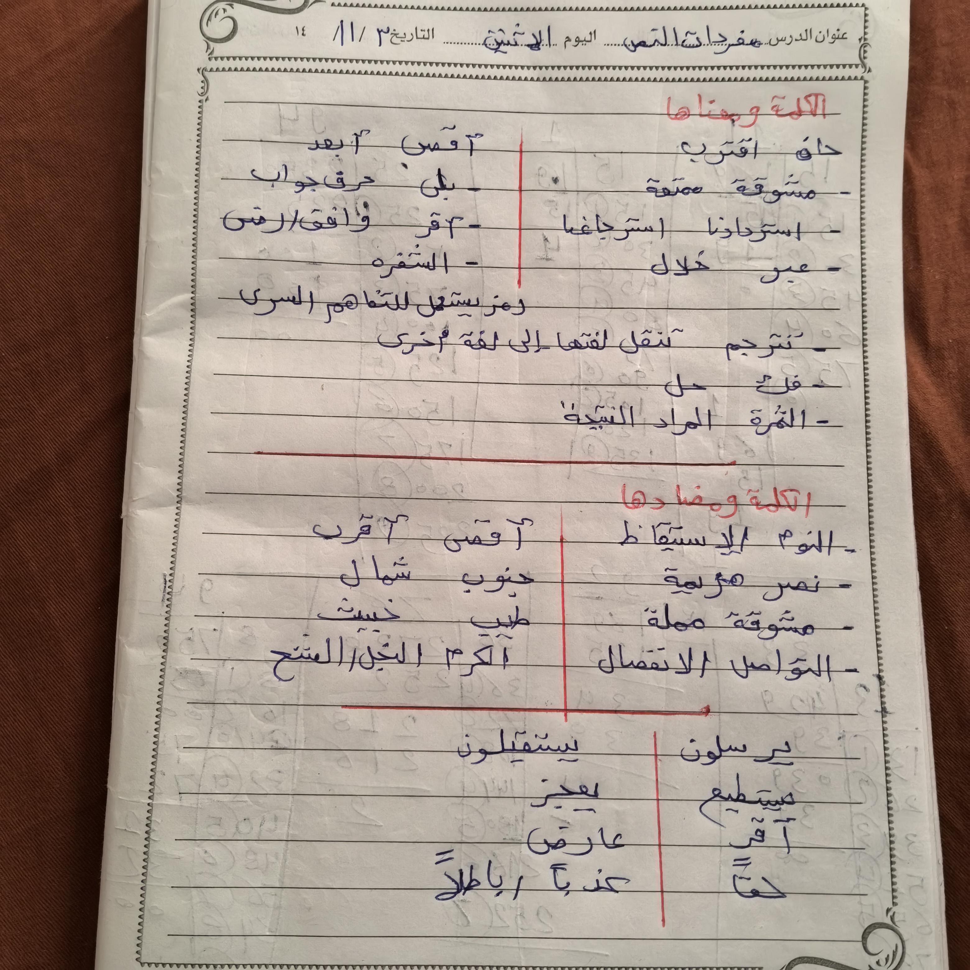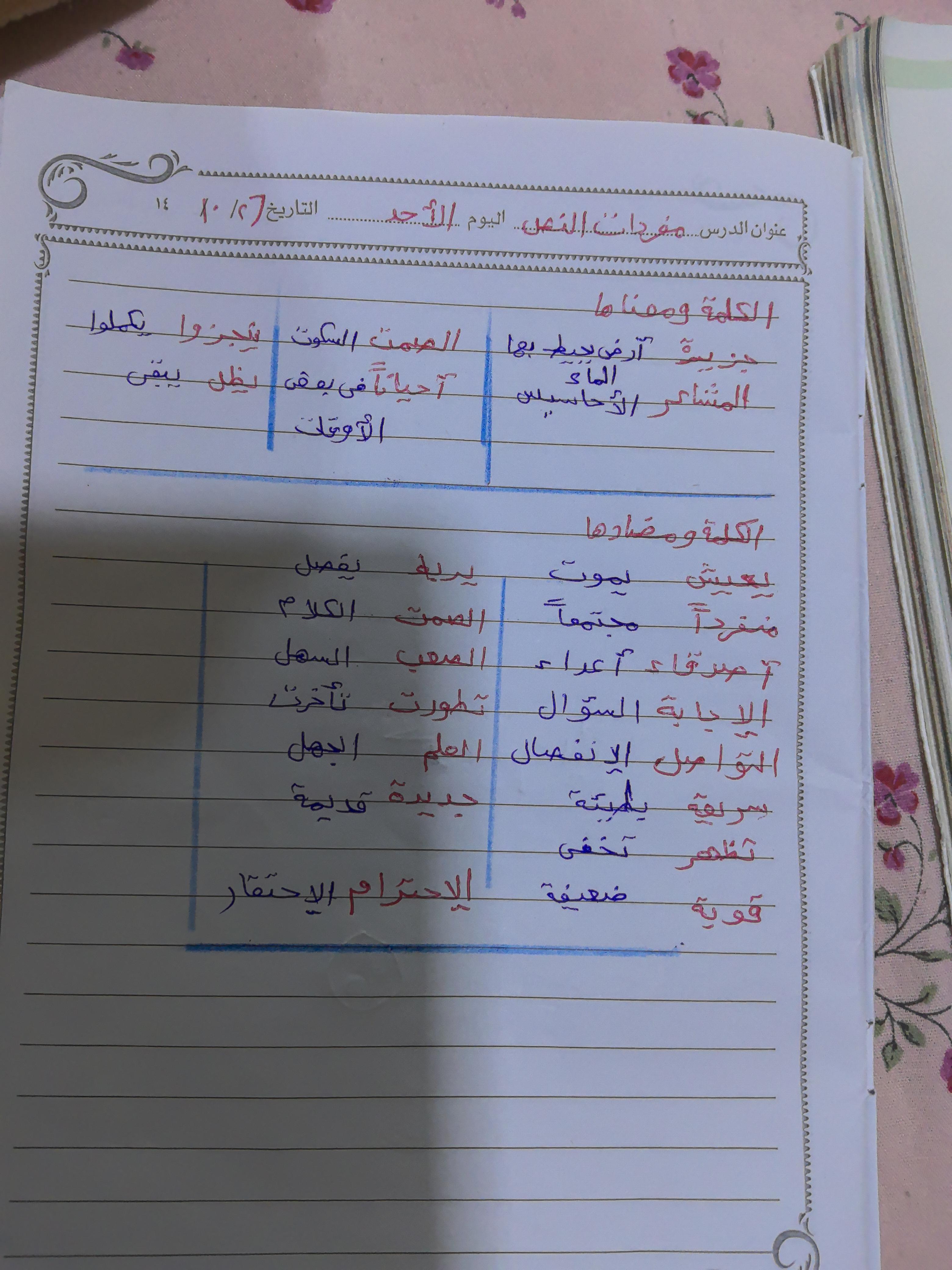 واجب اللغة العربية ❤️💖