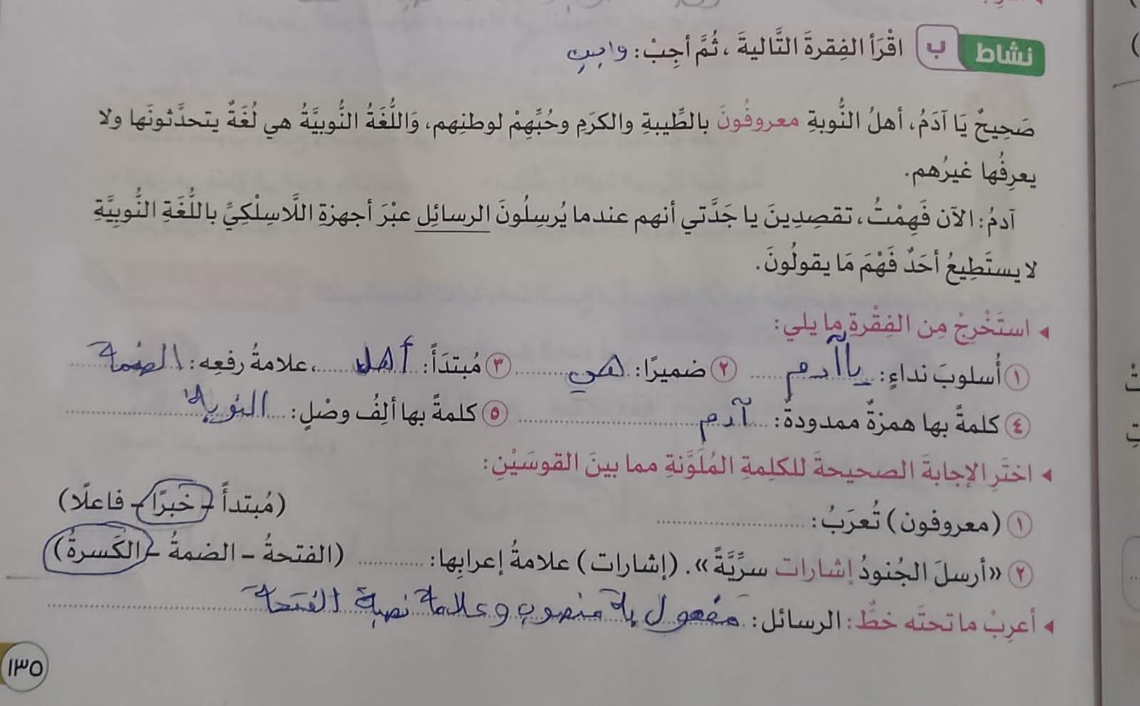 تم الاسم المجرور المثني وجمع المذكر واجب ص 127 نشاط س