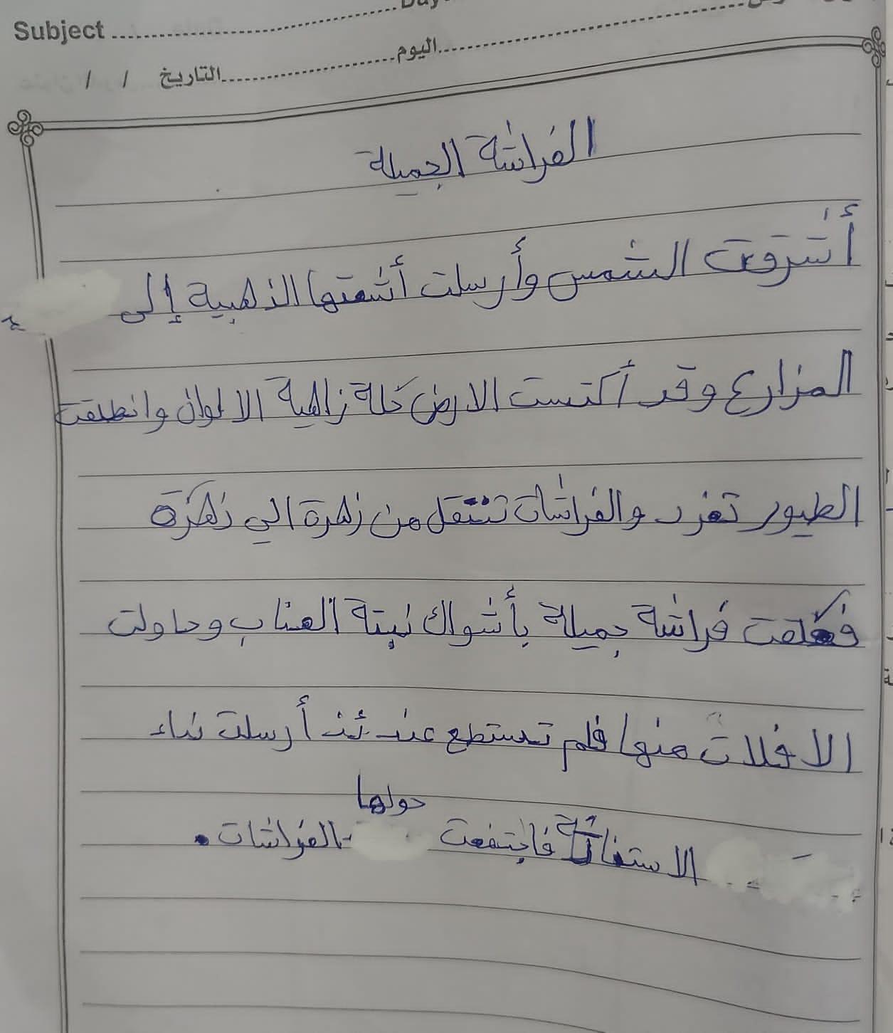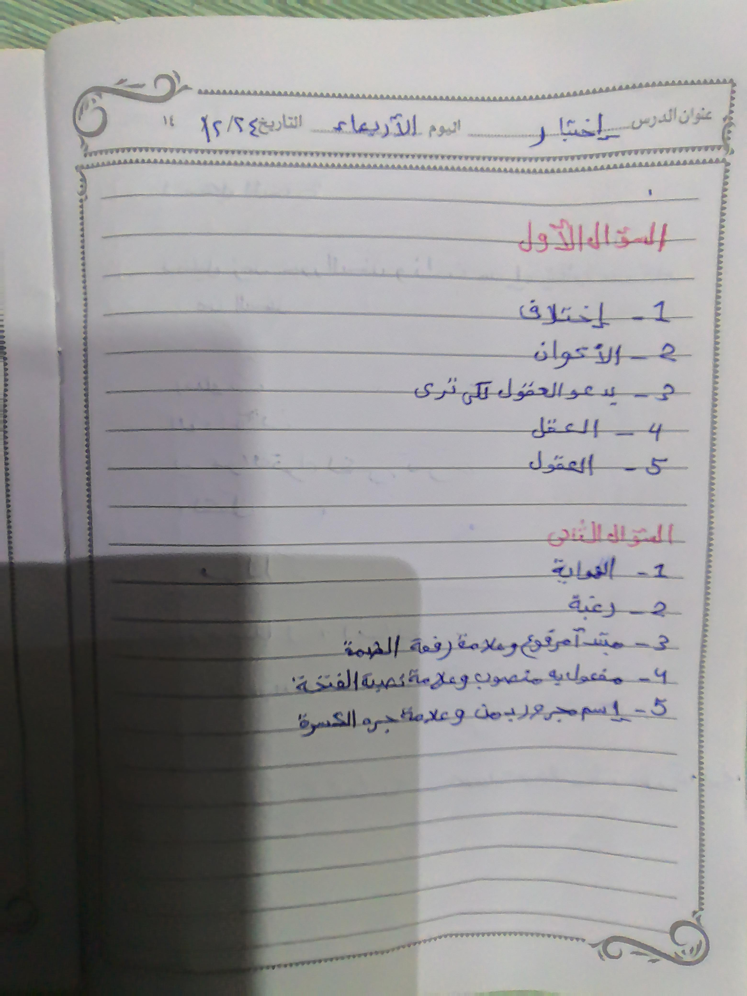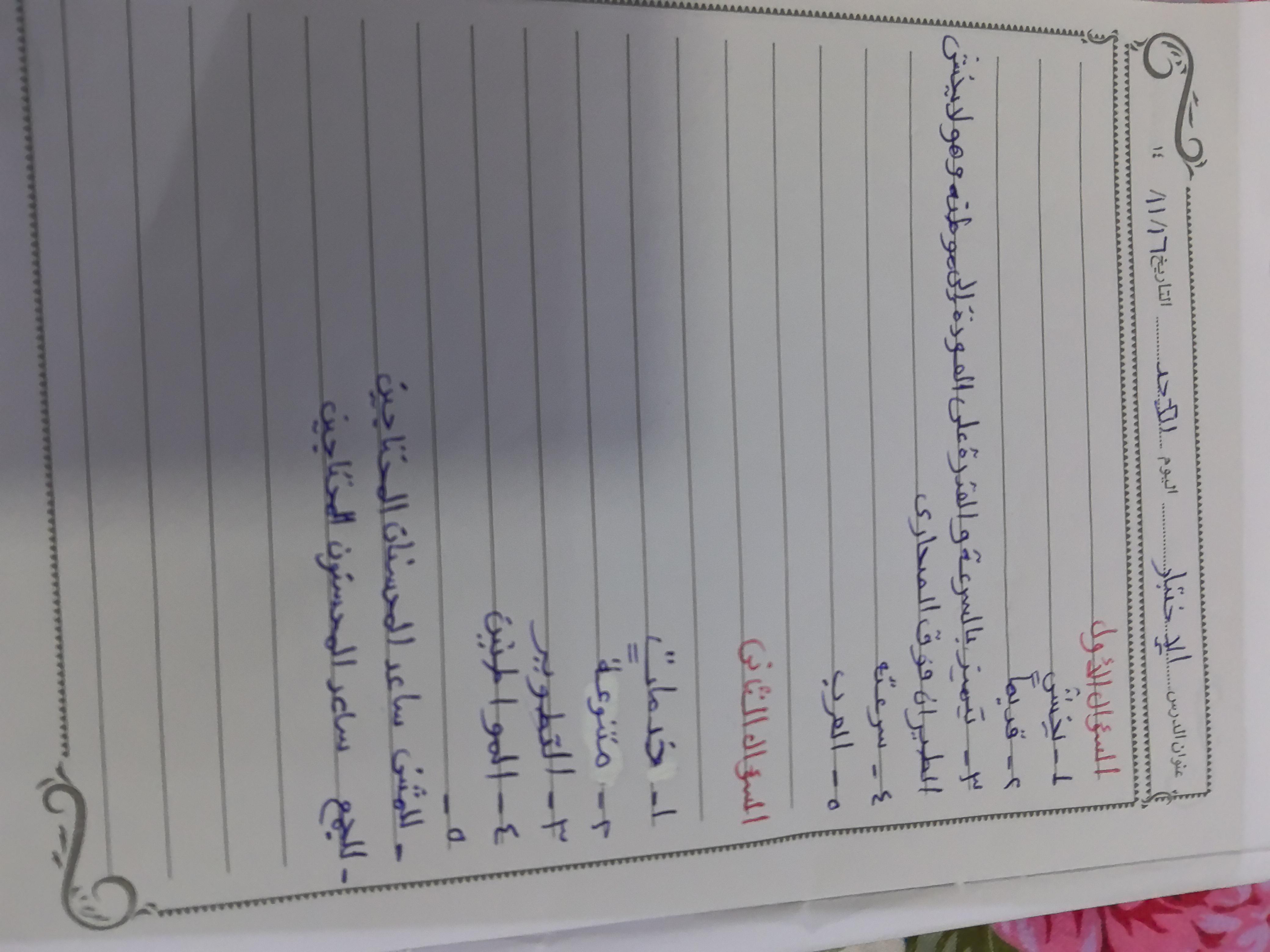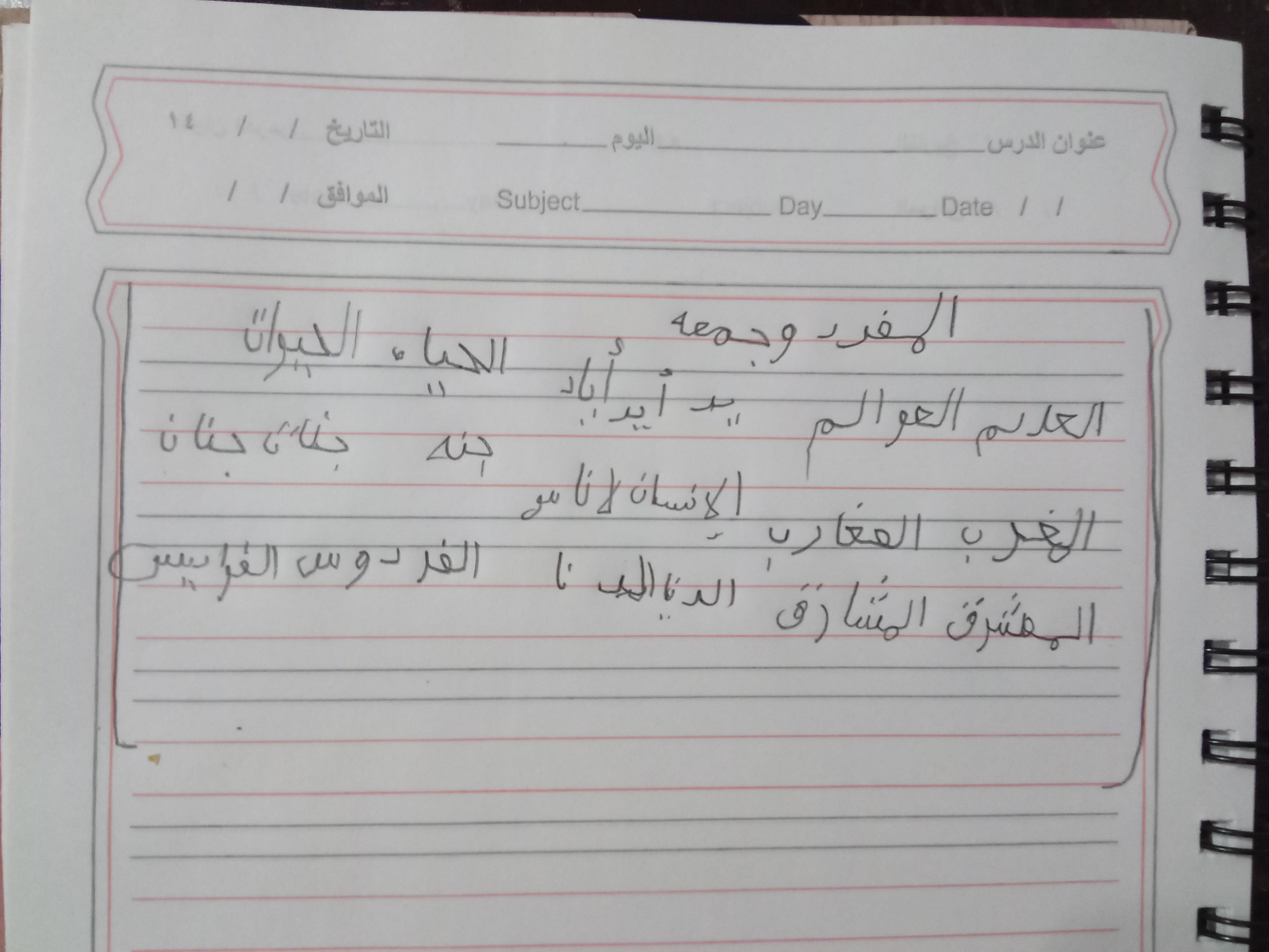 واجب العربيه شمس 💕 🍉