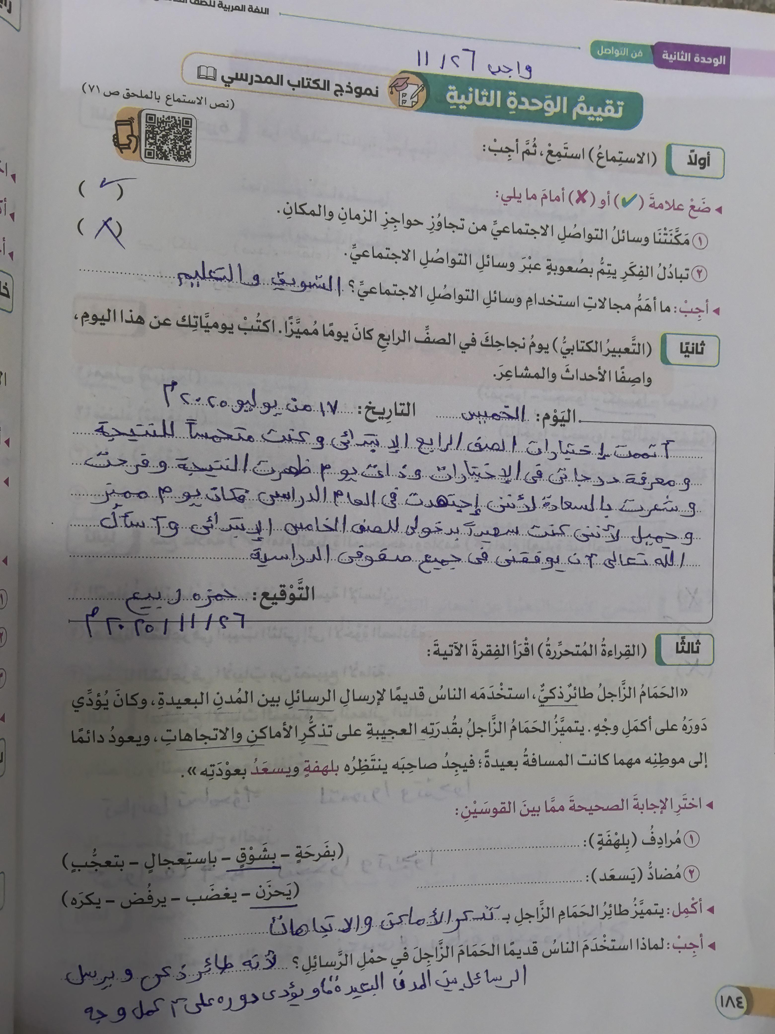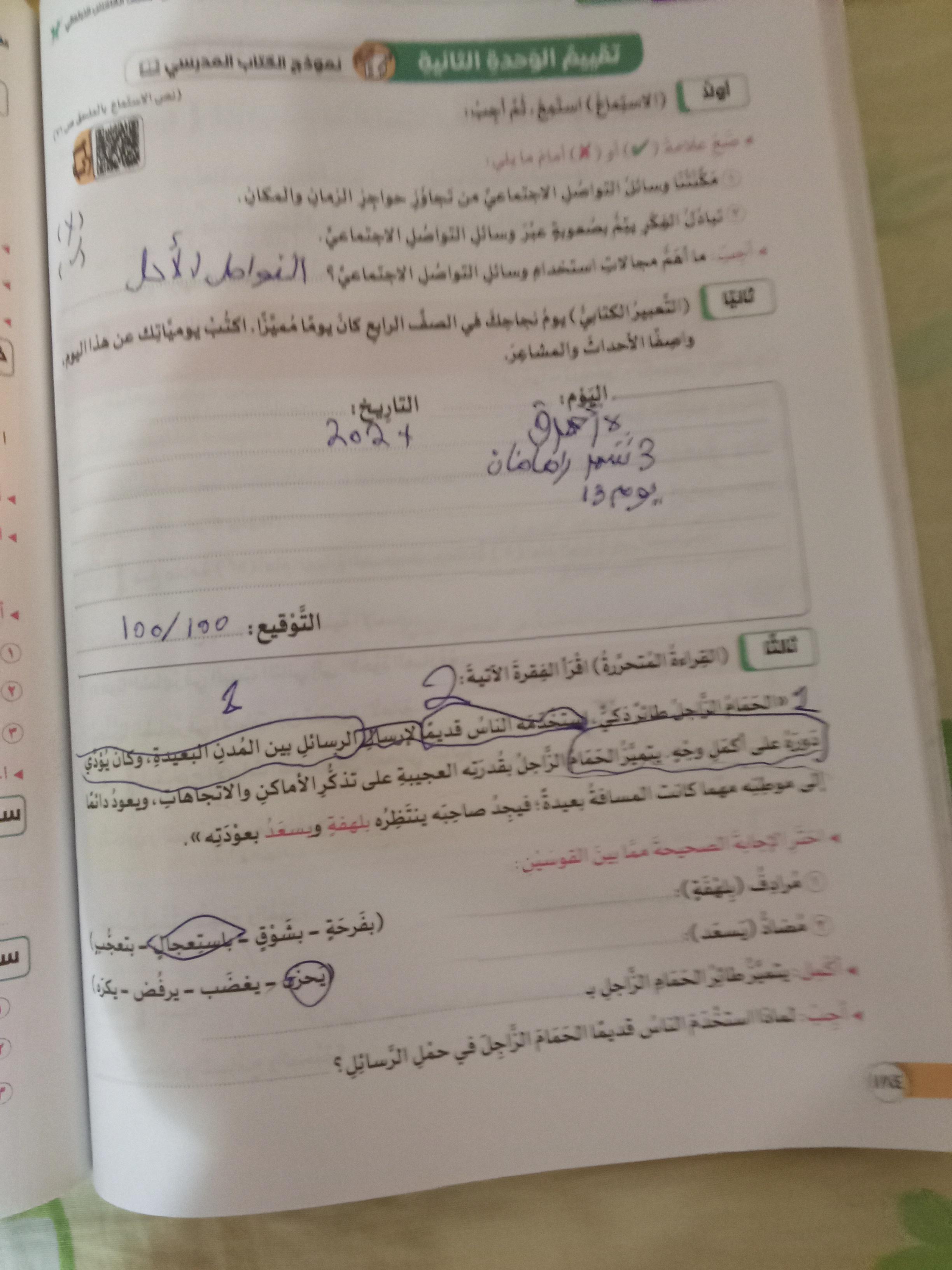 تم اليوم هل أنت مستمع جيدا واجب ص 114