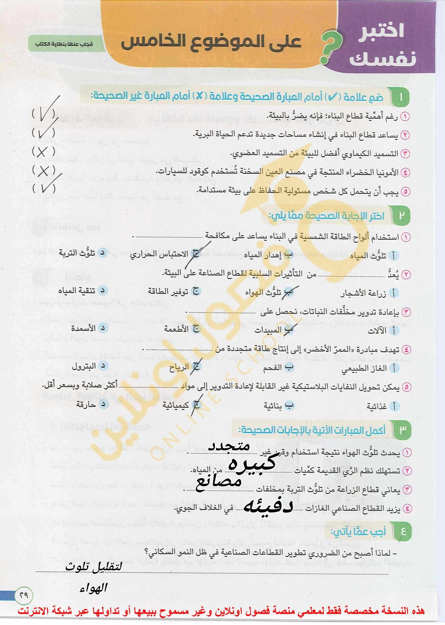 حلينا اليوم تدريبات المحور الاول والاختبار الاول والواجب الاختبار التاني والثالث 49 و50