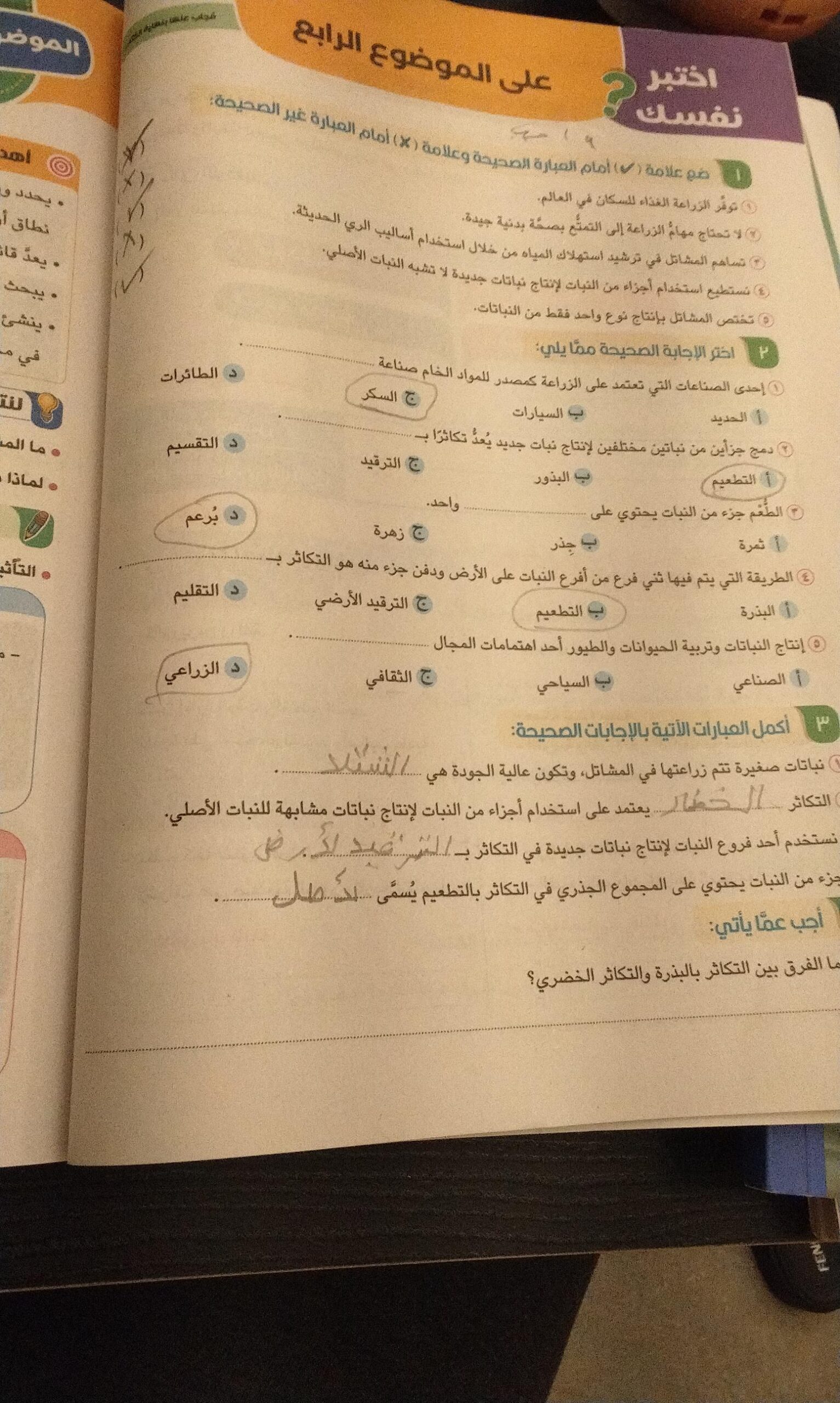 اخدنا اليوم الموضوع الرابع زراعه النباتات المزهره وحلينا الواجب اثناء الحصه