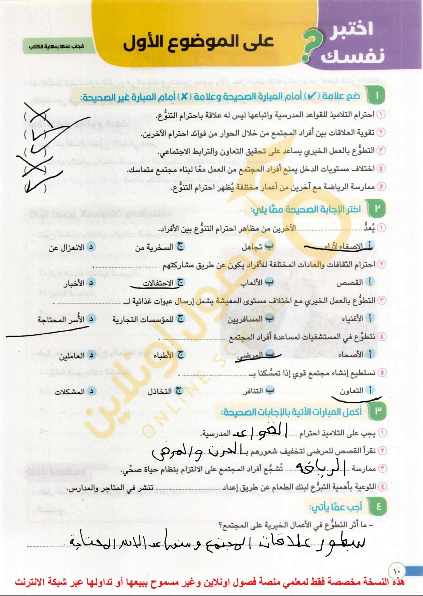 اخدنا اليوم ا الموضوع الاول لتنوع في المجتمع والواجب تدريبات الموضوع الاول ص 16