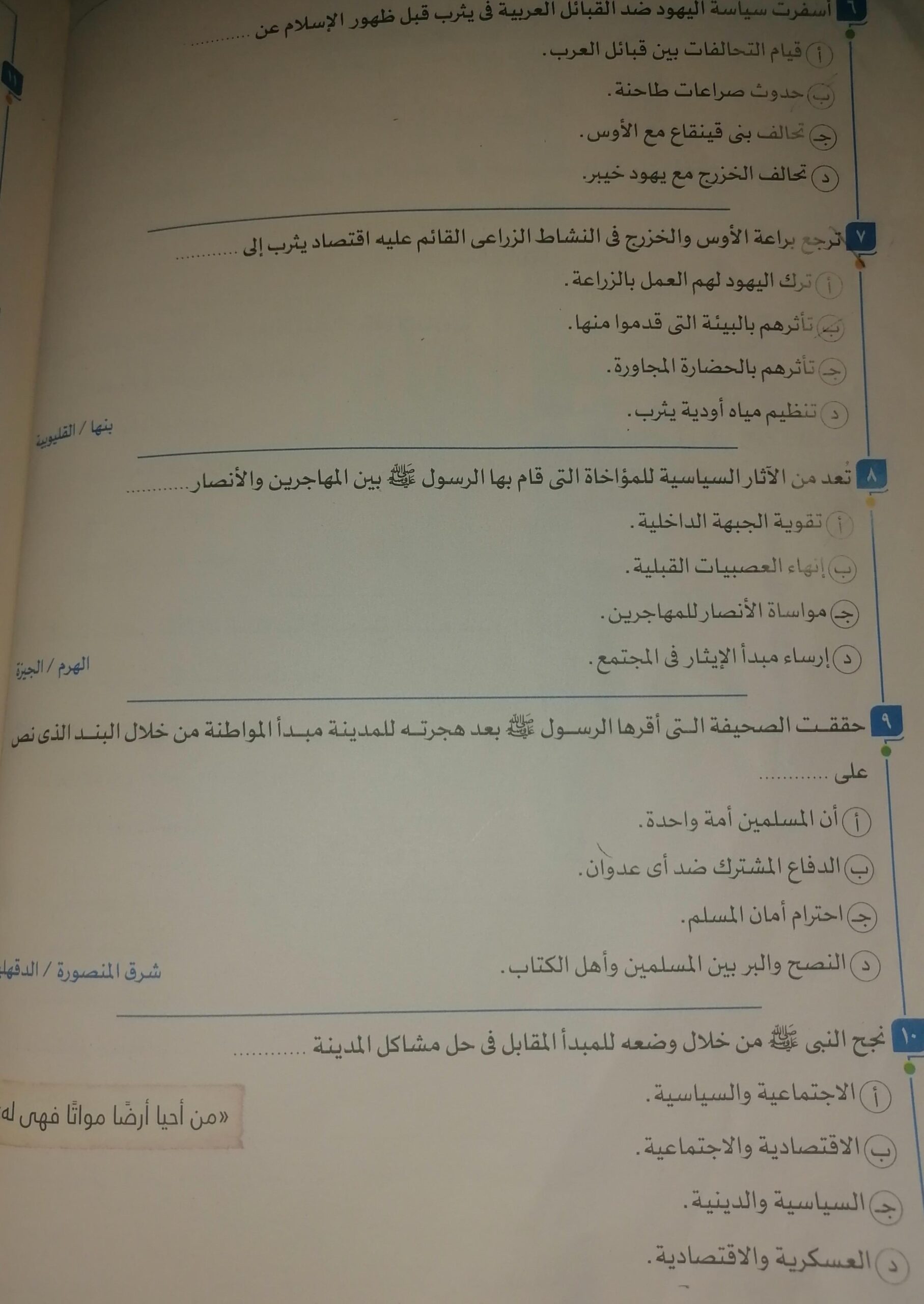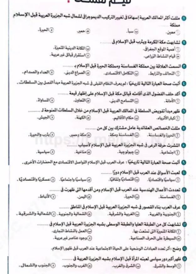 اخدنا اليوممظاهر الحضاره في شبه الجزيره العربيه قبل الاسلام وباقي الحياه الفكريه والاجتماعيه والواجب ص 18