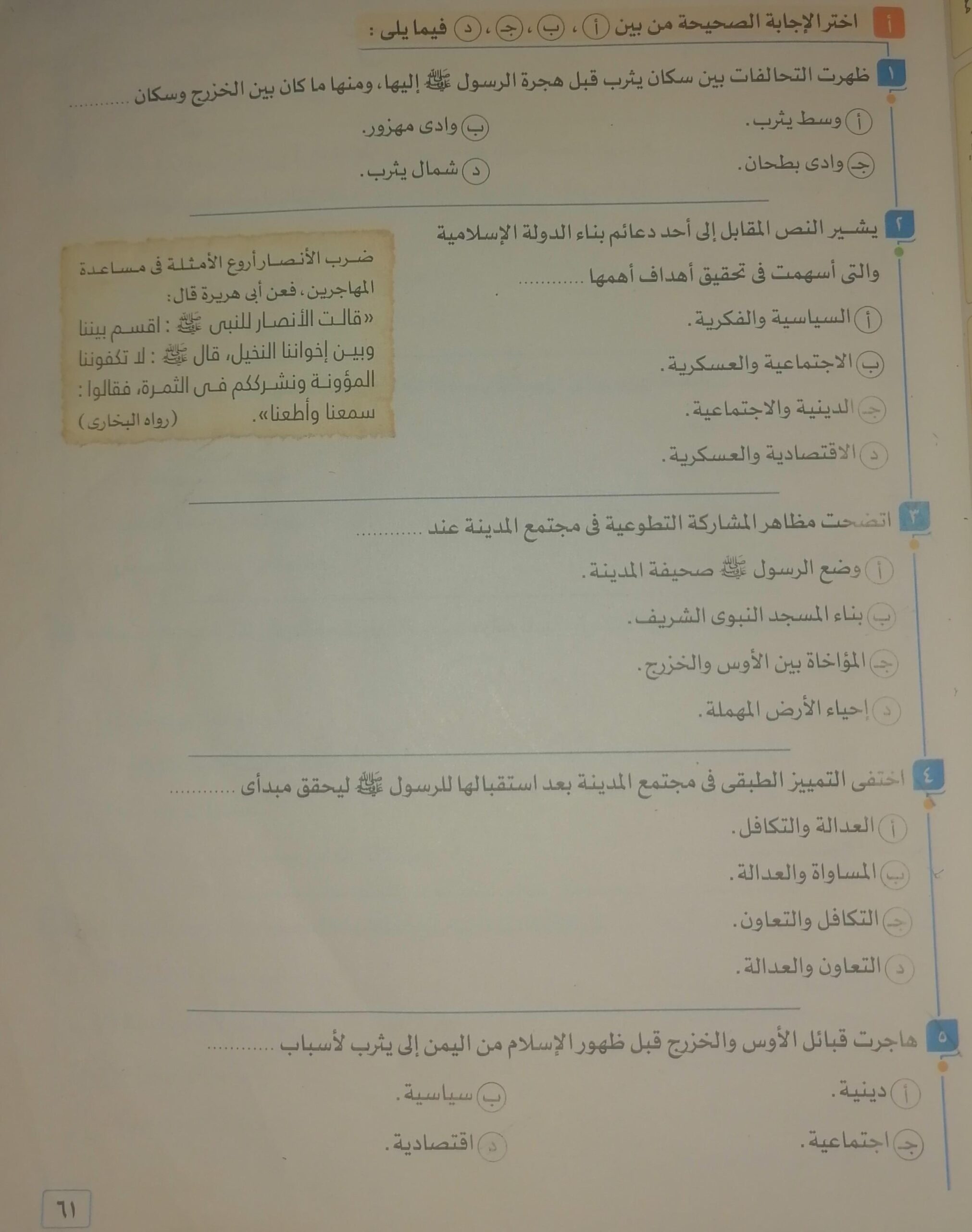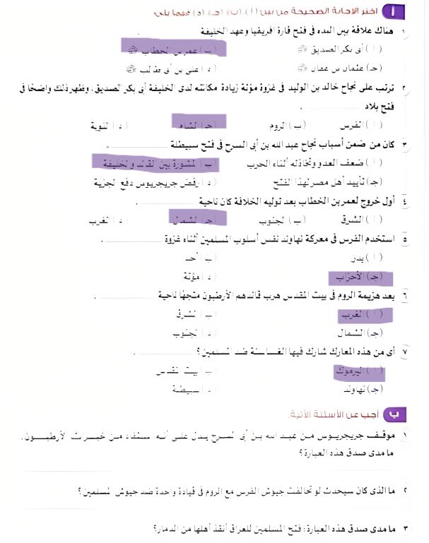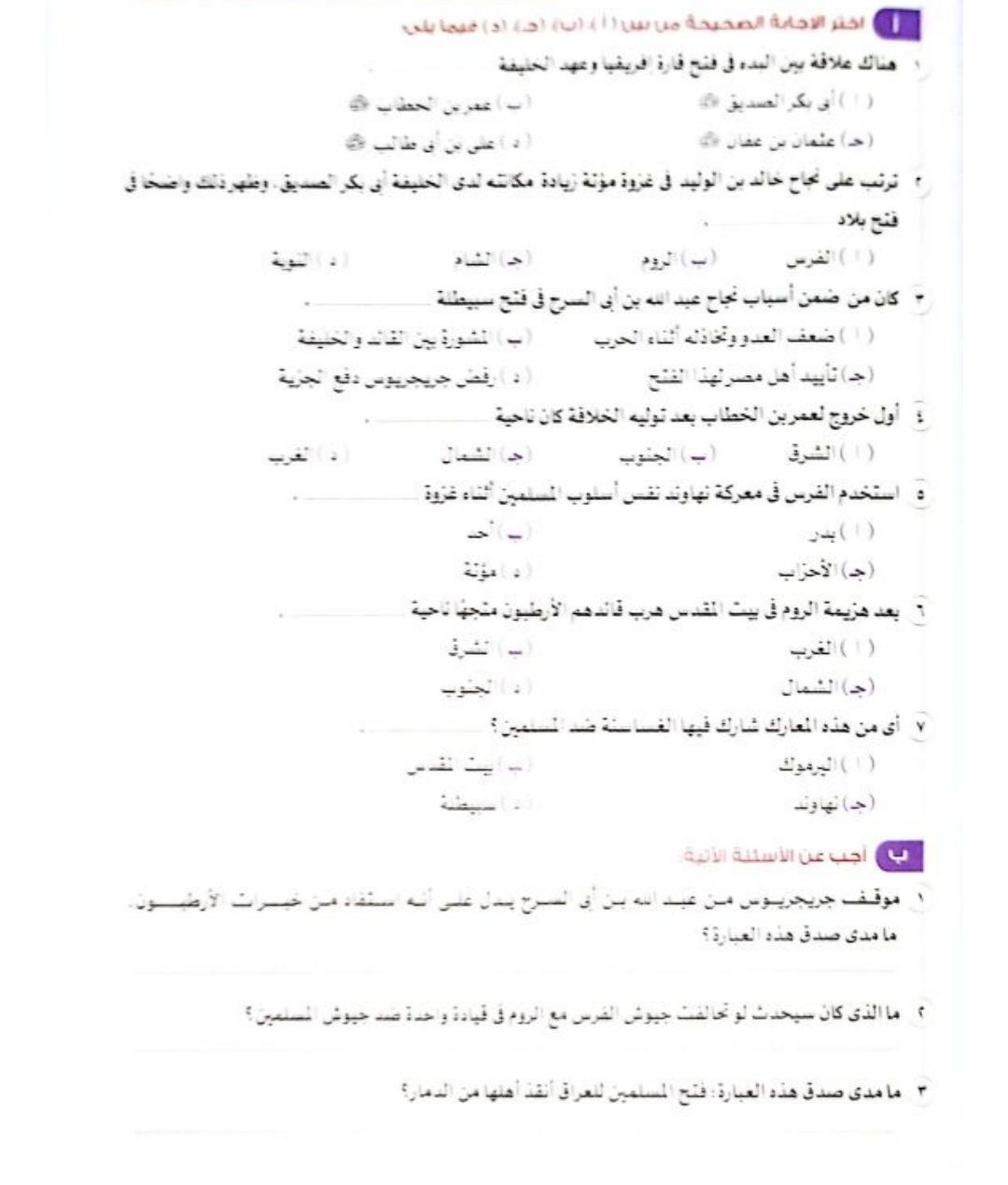 اخدنا اليوم باقي الدرس الدوله الاسلاميع عقب وفاه الرسول وهنحل التدريبات الحصه الجايه
