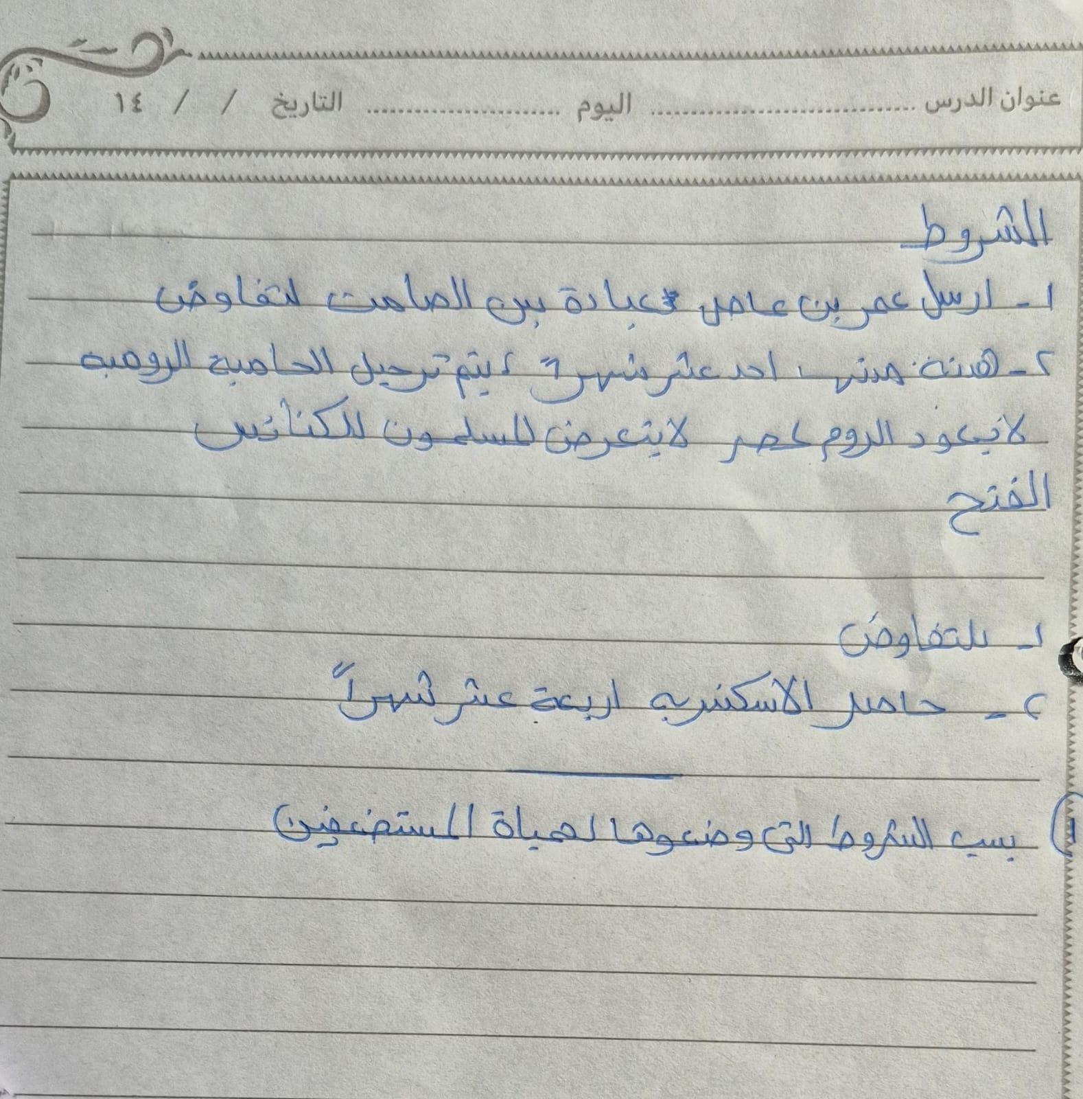 اخدنا اليوم فتوحات بلاد الشام نذاكر الجزء دا ونحفظه كويس يا شباب