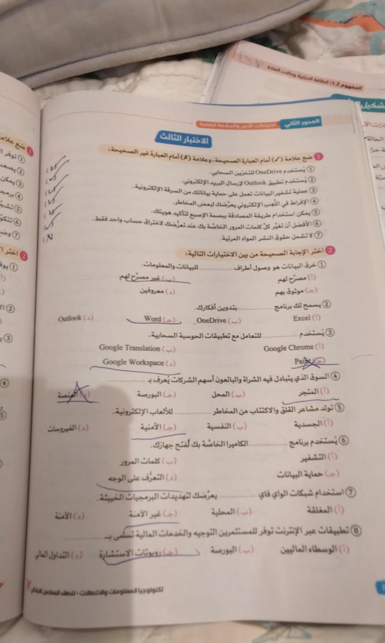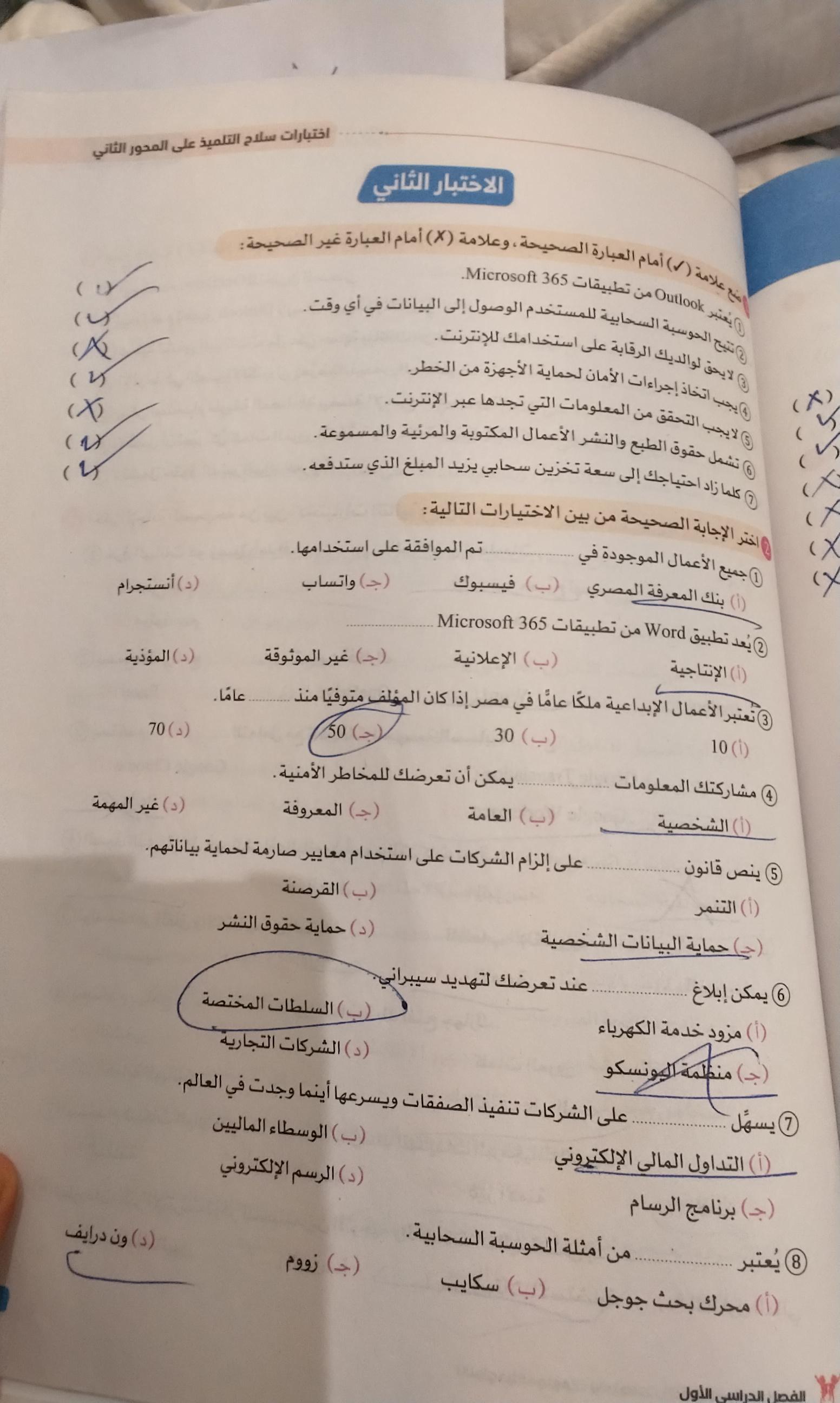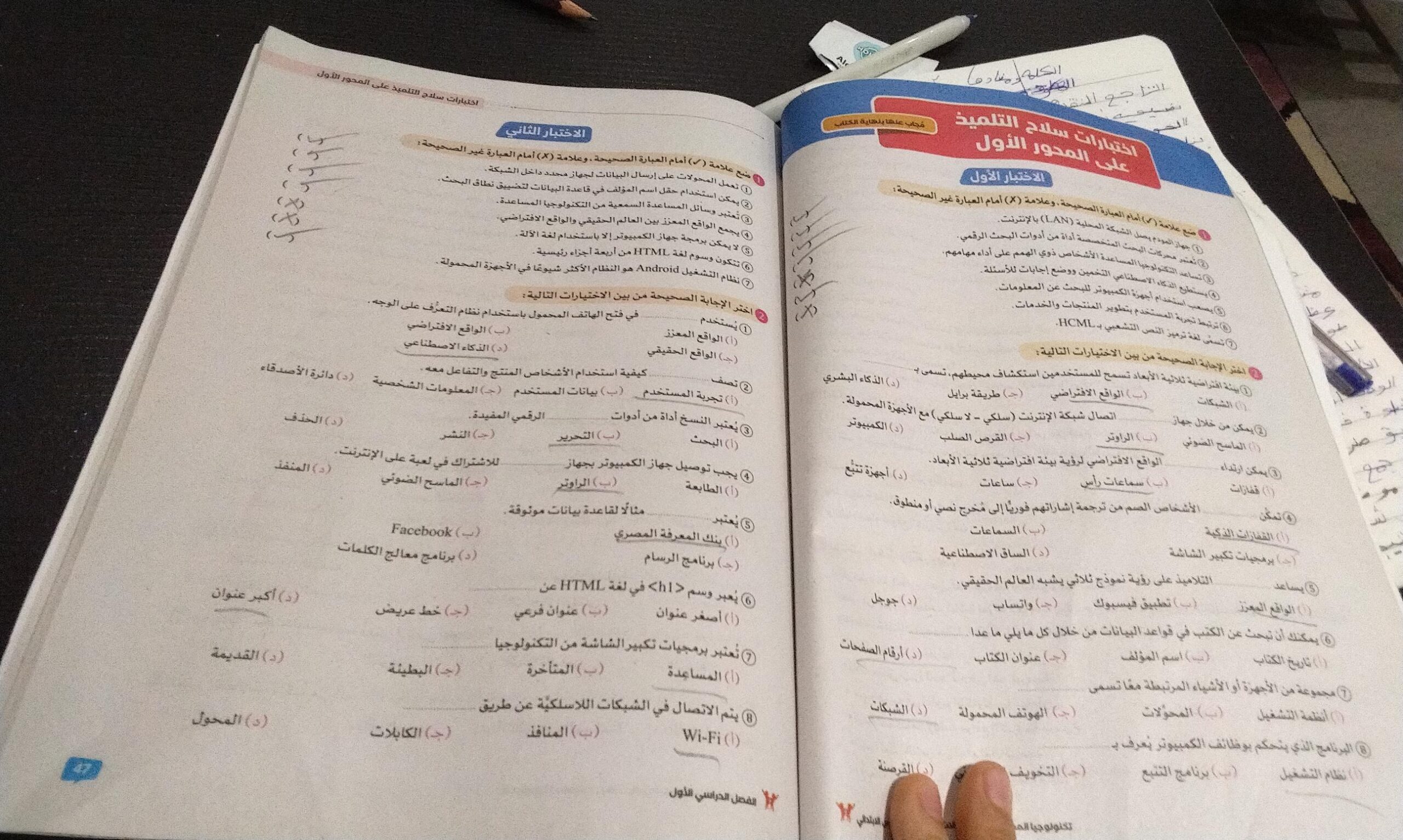 درسنا اليوم مراجعة علي المحور الاول الواجب الاختبار الاول و الثاني صفحة46 و 47