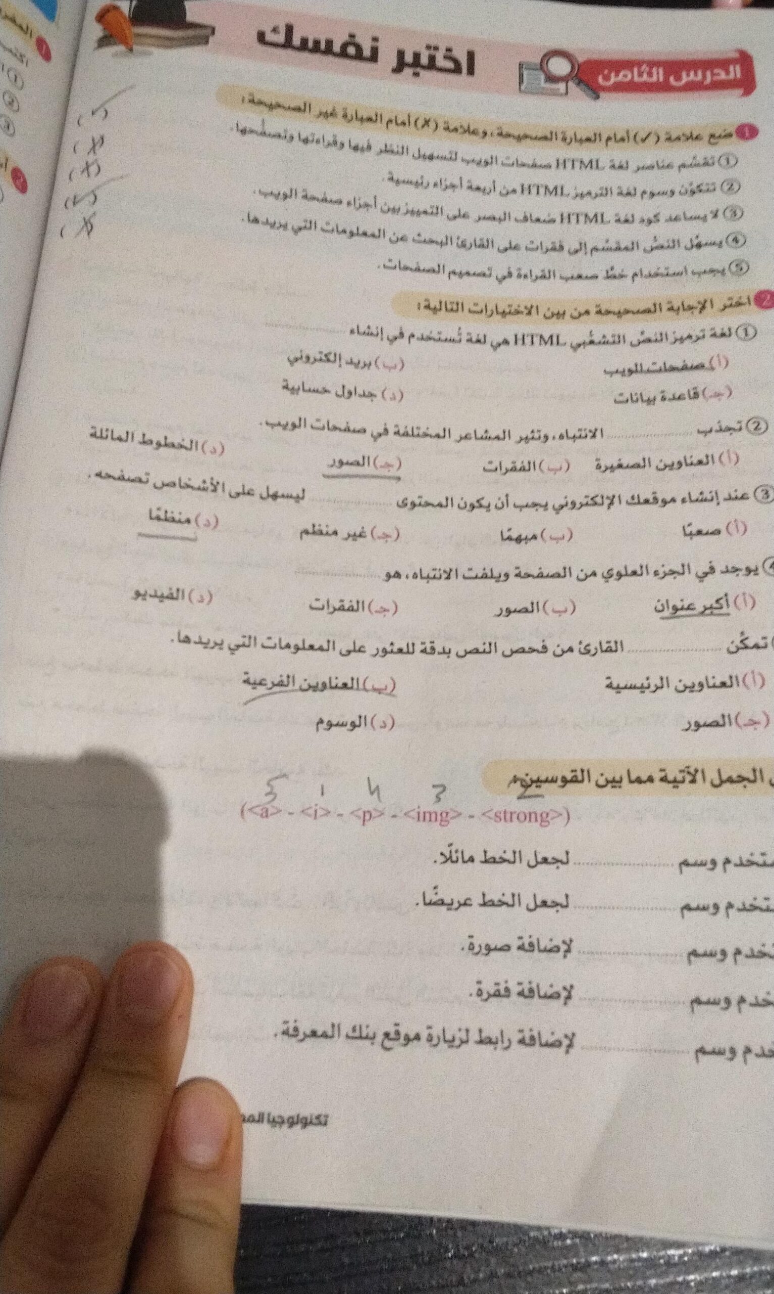 مراجعة ما قبل الامتحانات الواجب حل باقي اختبارات الكتاب