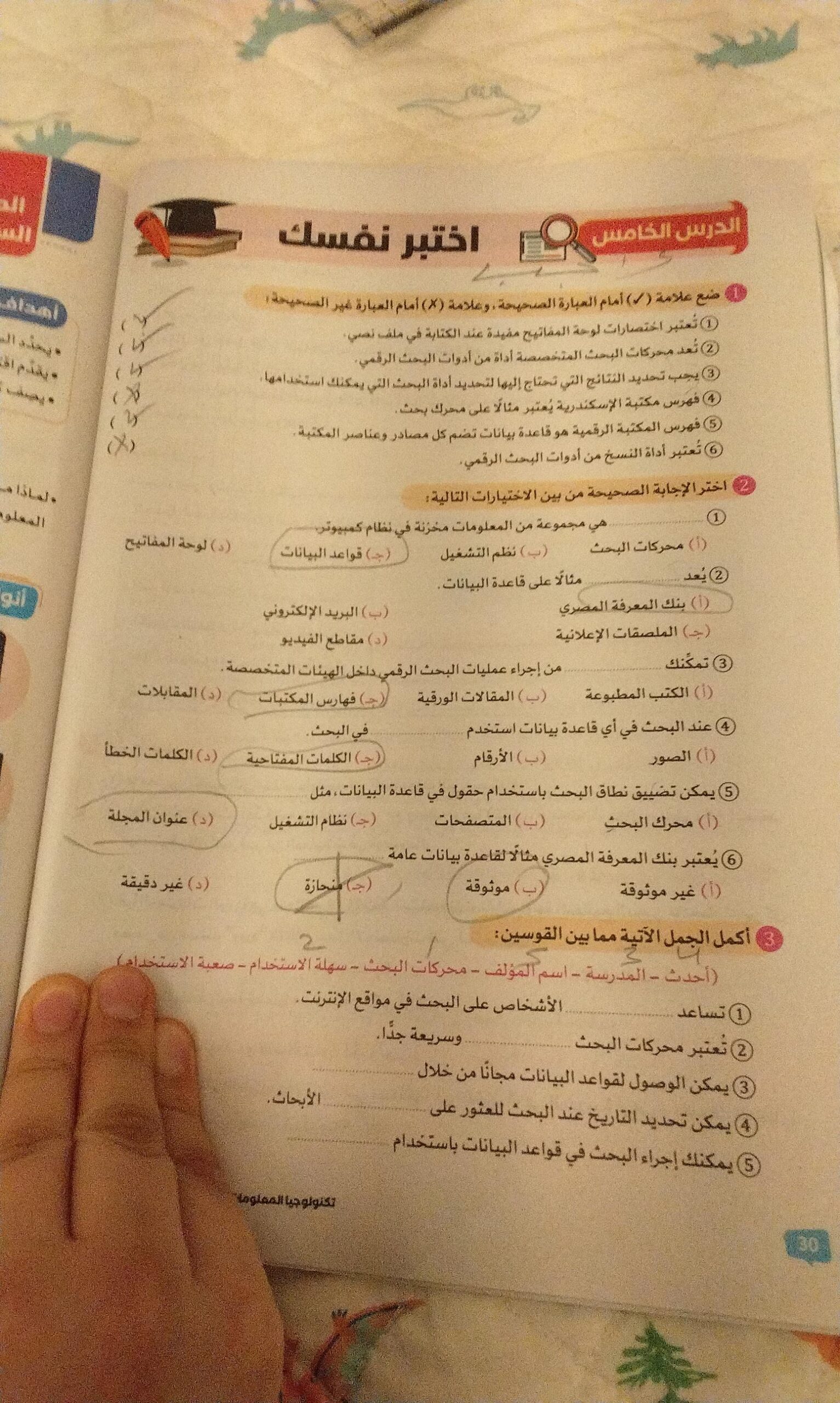 تم دراسة اليوم الدرس الخامس بعنوان مهارات البحث الرقمي الواجب صفحة 30